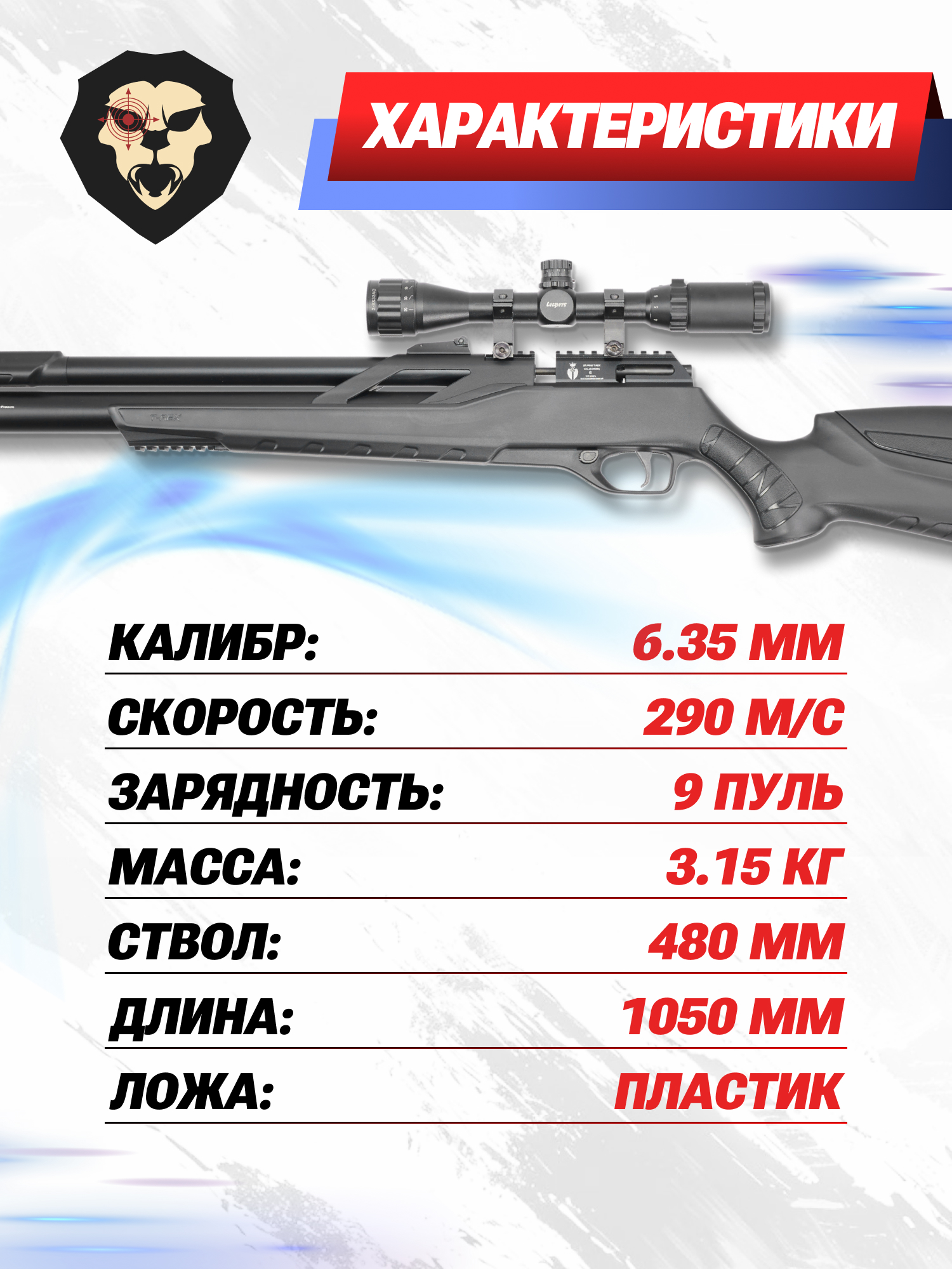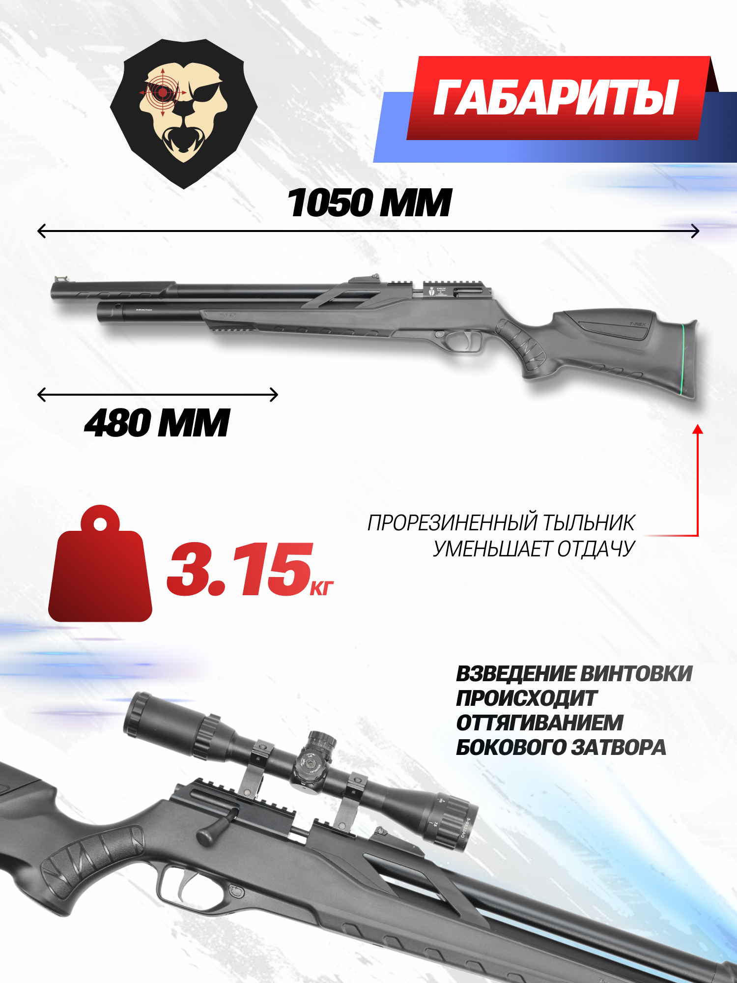 | Комплектация | Винтовка, магазин, ЗИП, упаковка, заправочный штуцер, краткая документация, копия сертификата (по запросу покупателя) |