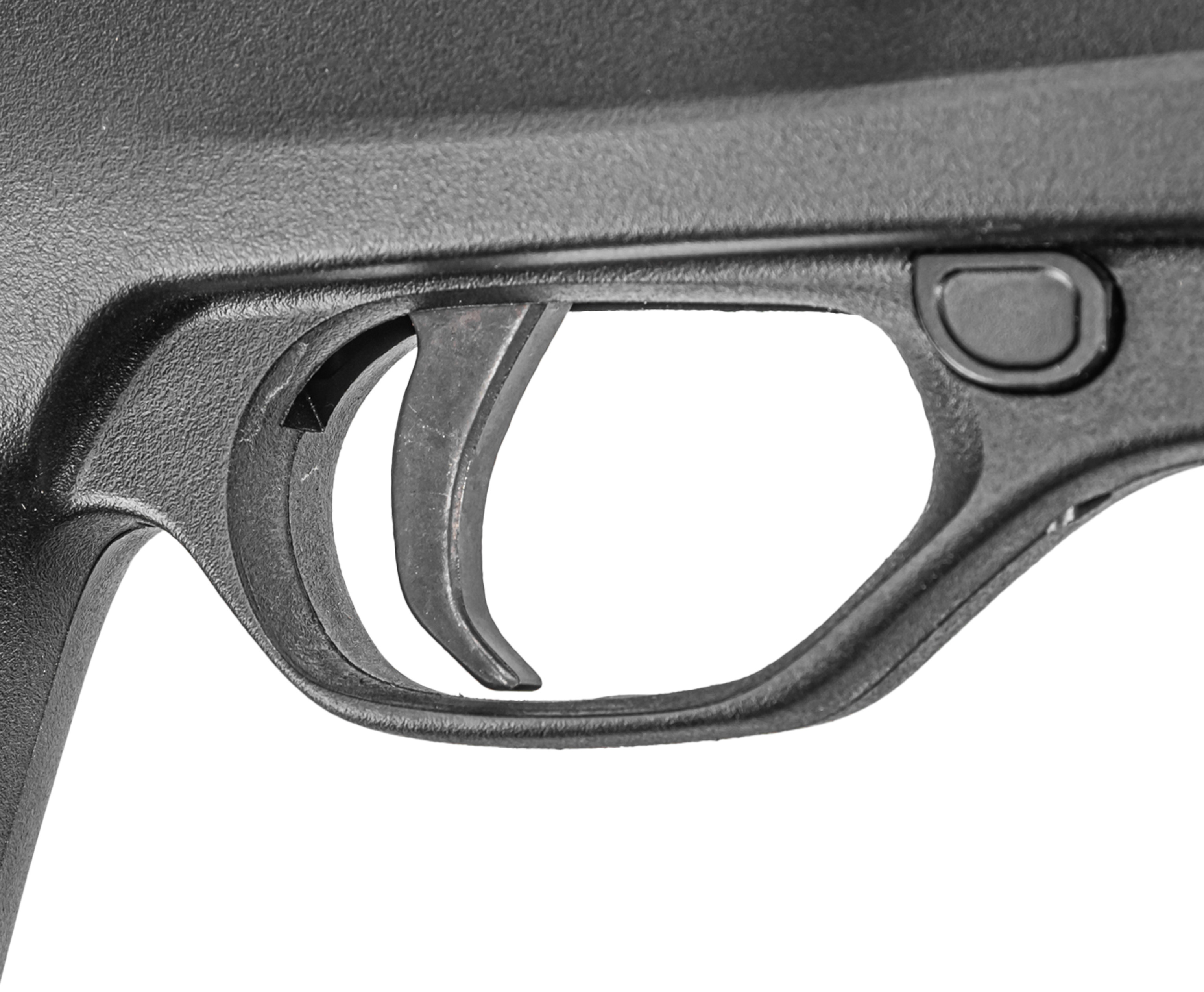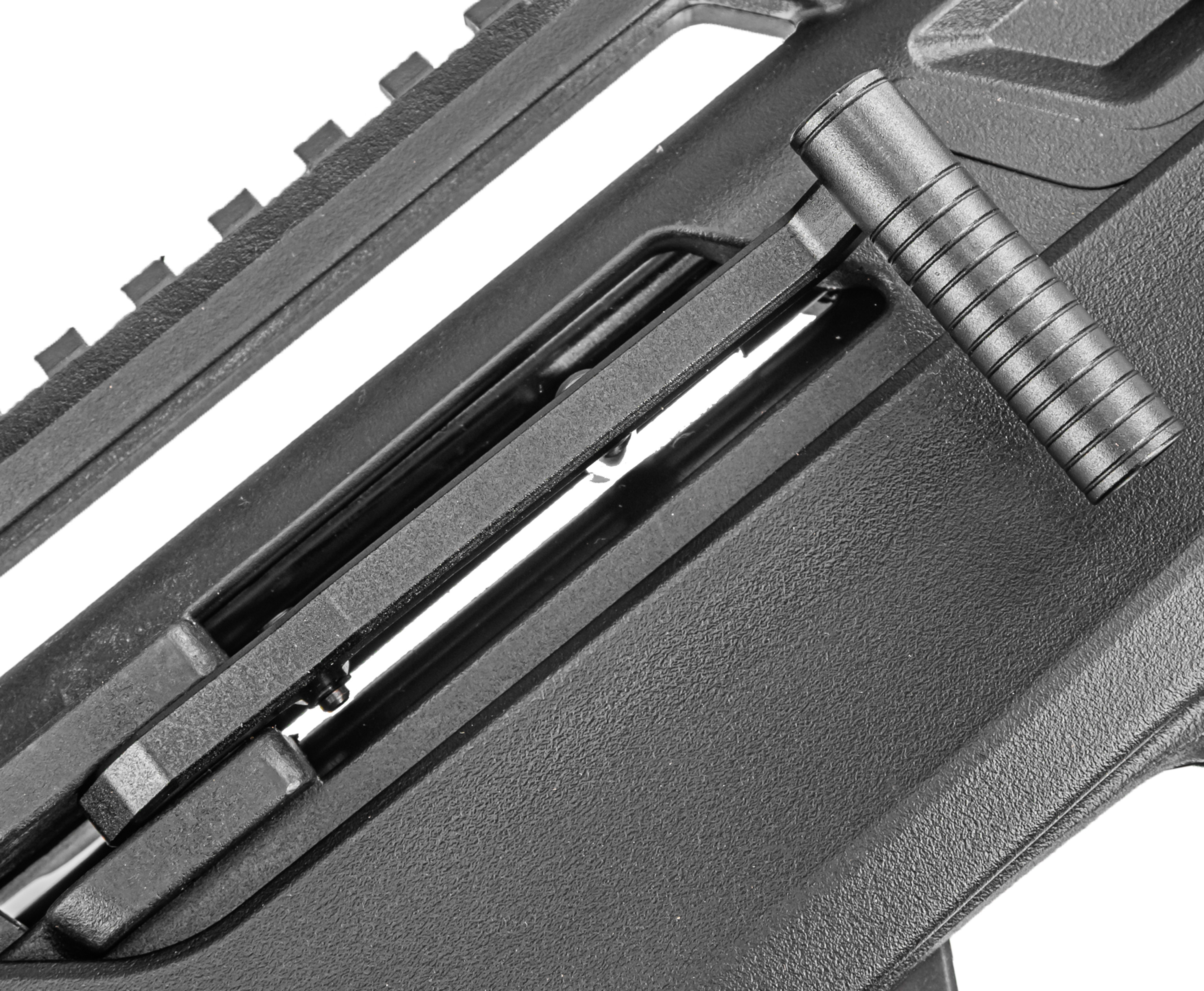 Перед совершением выстрела требуется вручную отвести рычаг затвора, тогда как от случайного нажатия на триггер защищает кнопочный предохранитель. Отдельного внимания заслуживает эргономика оружия, которая достигается формой ложи - фурнитура изготавливается из полимера, что обуславливает легкий вес винтовки в пределах 2.53 кг.