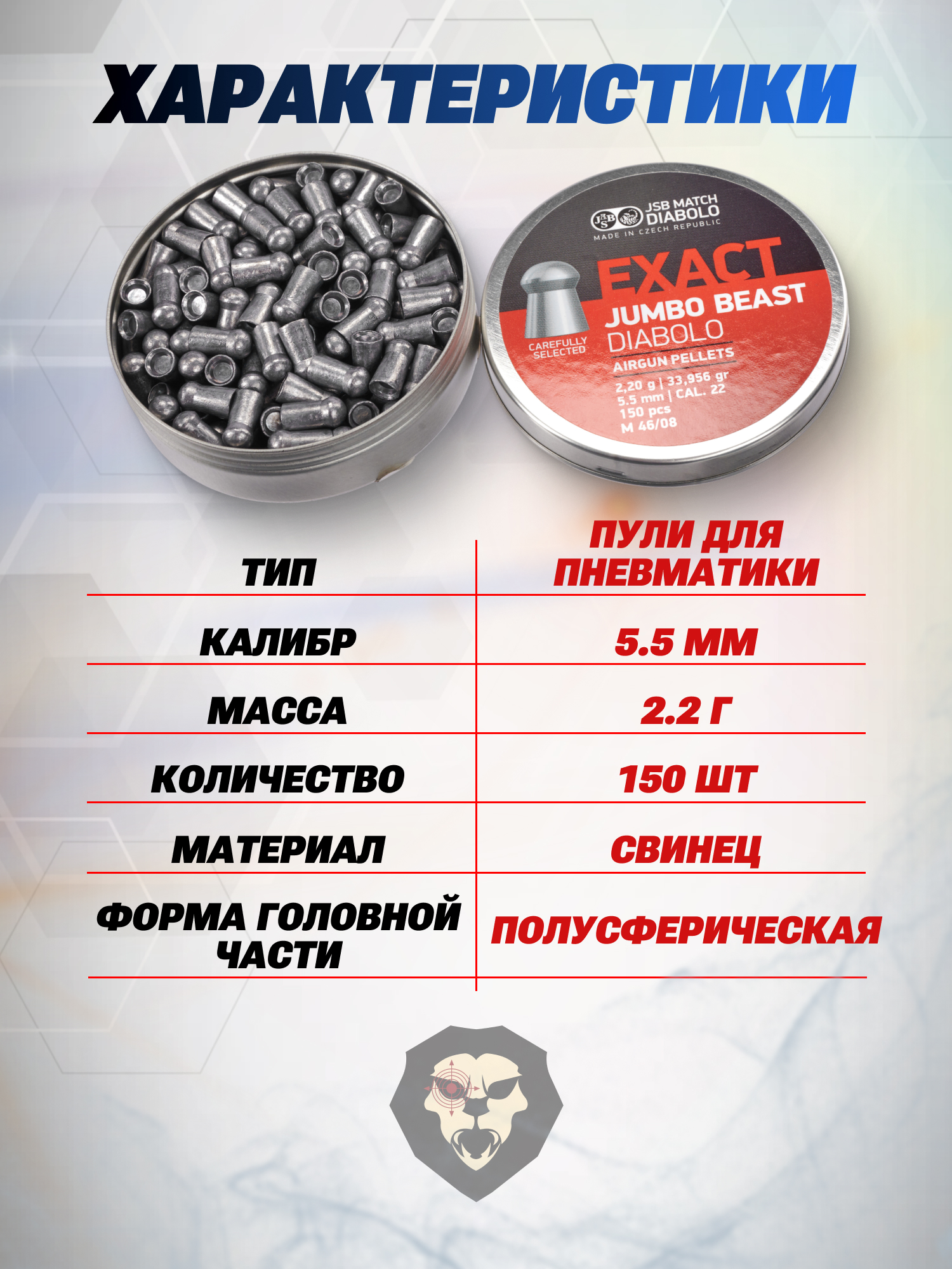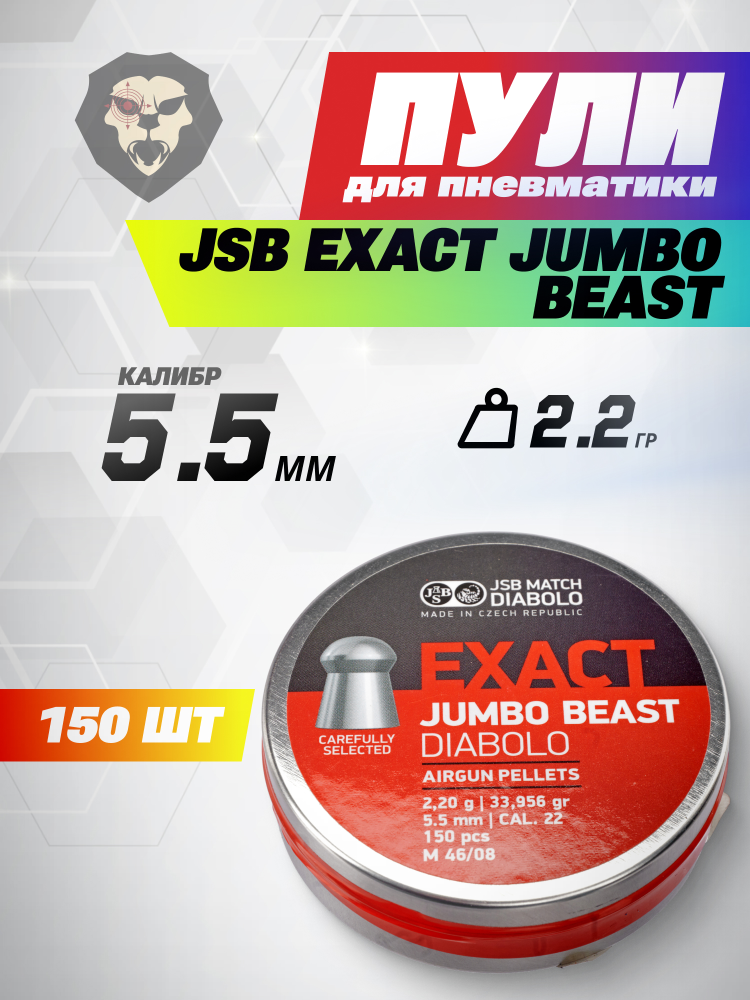 Пули пневматические JSB Exact Jumbo Beast 5.5 мм (150 шт, 2.2 г) купить в интернет-магазине Popadiv10.