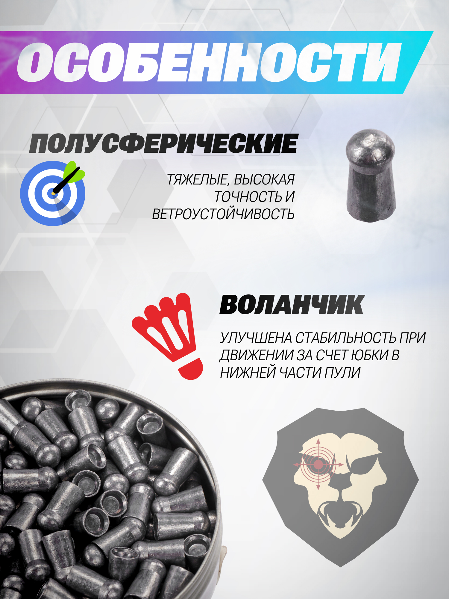 Представленные пули .22 калибра изготавливаются с применением отборного свинца и имеют вид воланчика. Продуманное распределение центра тяжести, а также полусферический тип головки непосредственно сказывается на баллистических параметрах. Заряды обладают отличной обтекаемостью и минимально отклоняются от траектории полета, что гарантирует получение желаемого результата при работе по отдаленным мишеням.