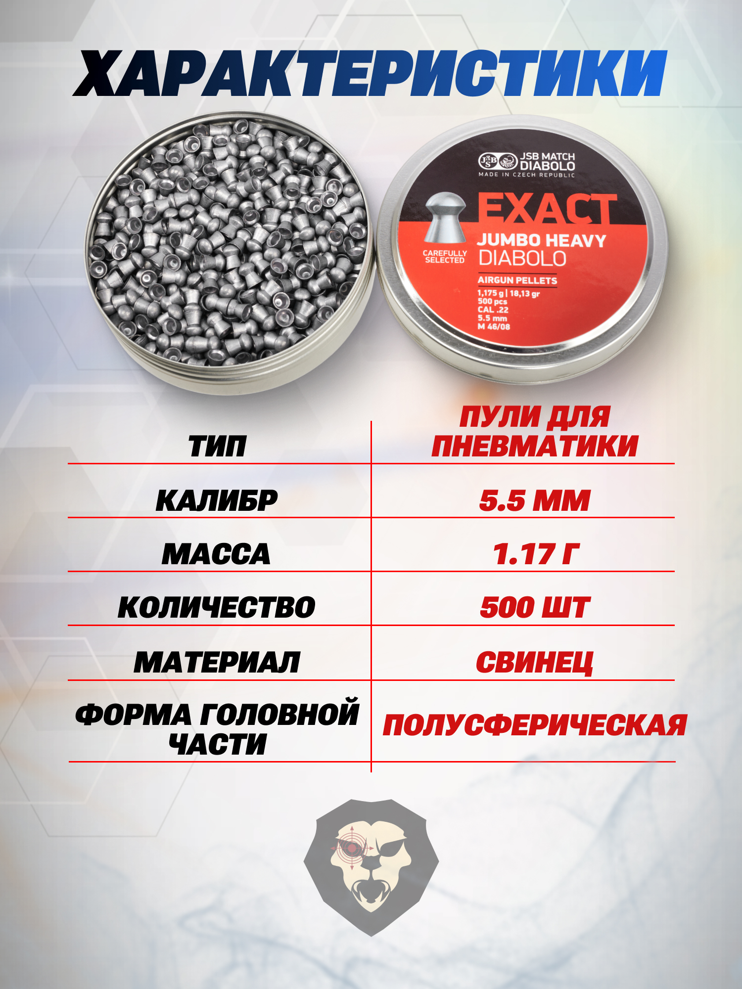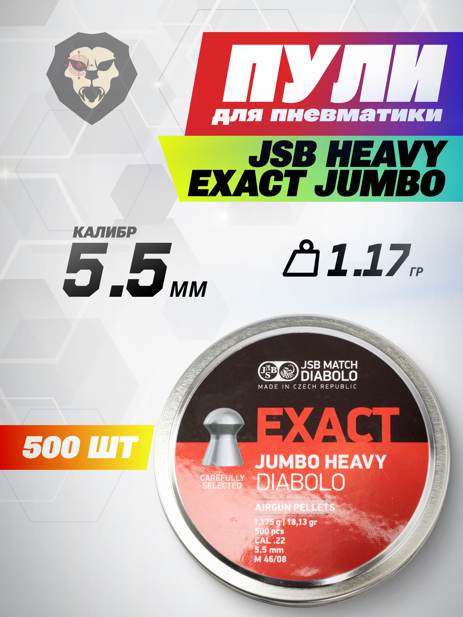 Пули пневматические JSB Heavy Exact Jumbo 5.5 мм (500 шт, 1.175 г) купить в интернет-магазине Popadiv10.