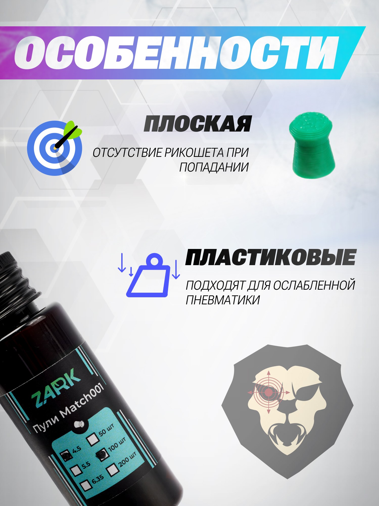 Пневматические пули Zark Arms Match001 4.5 мм (пластик, 100 шт, 0.07 г, легкие, до 3 Дж) купить в интернет-магазине Popadiv10.