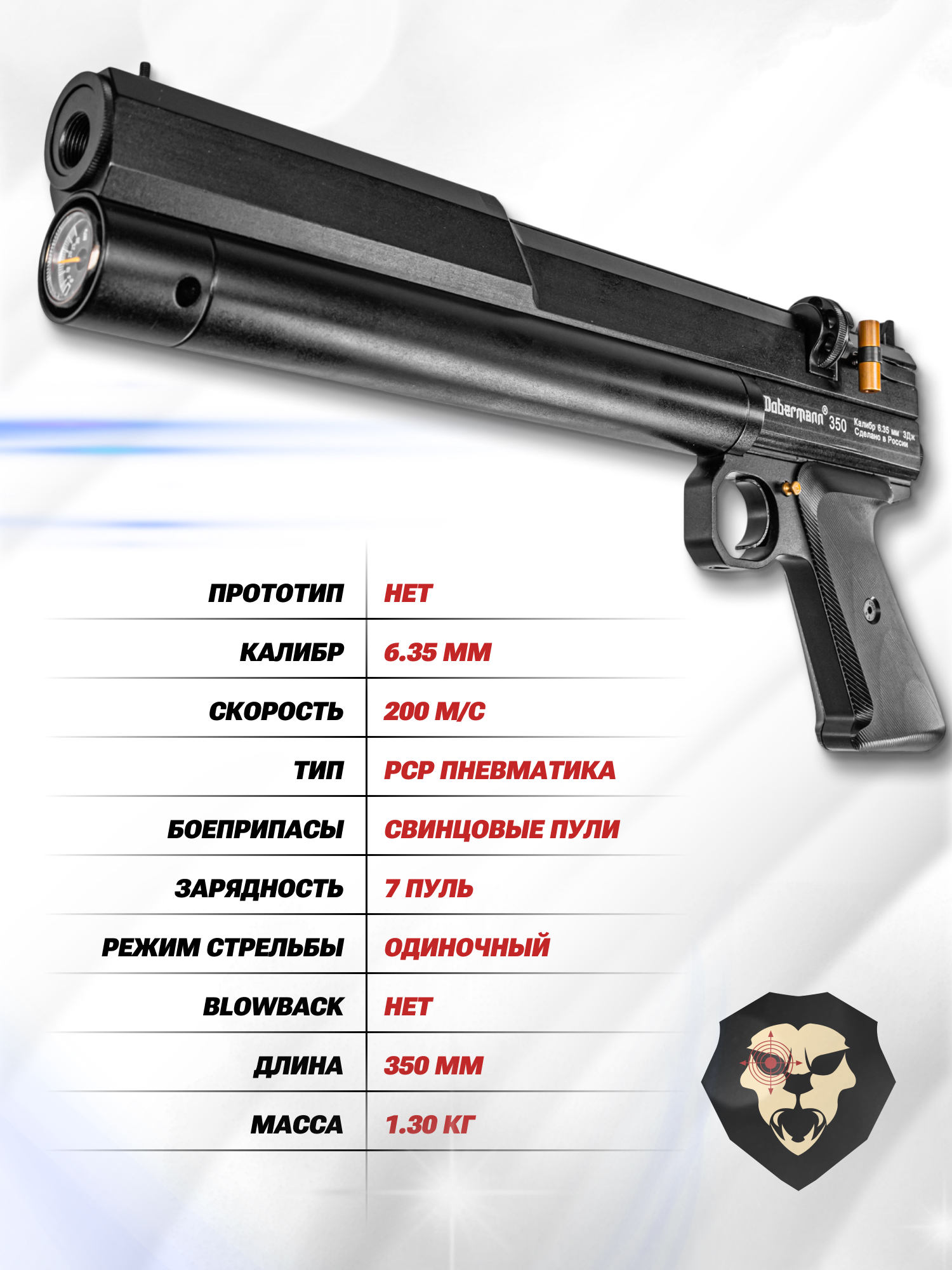 Пневматический PCP пистолет Dobermann 350 Эксцентрик 6.35 мм (200 мм) купить в интернет-магазине Popadiv10.