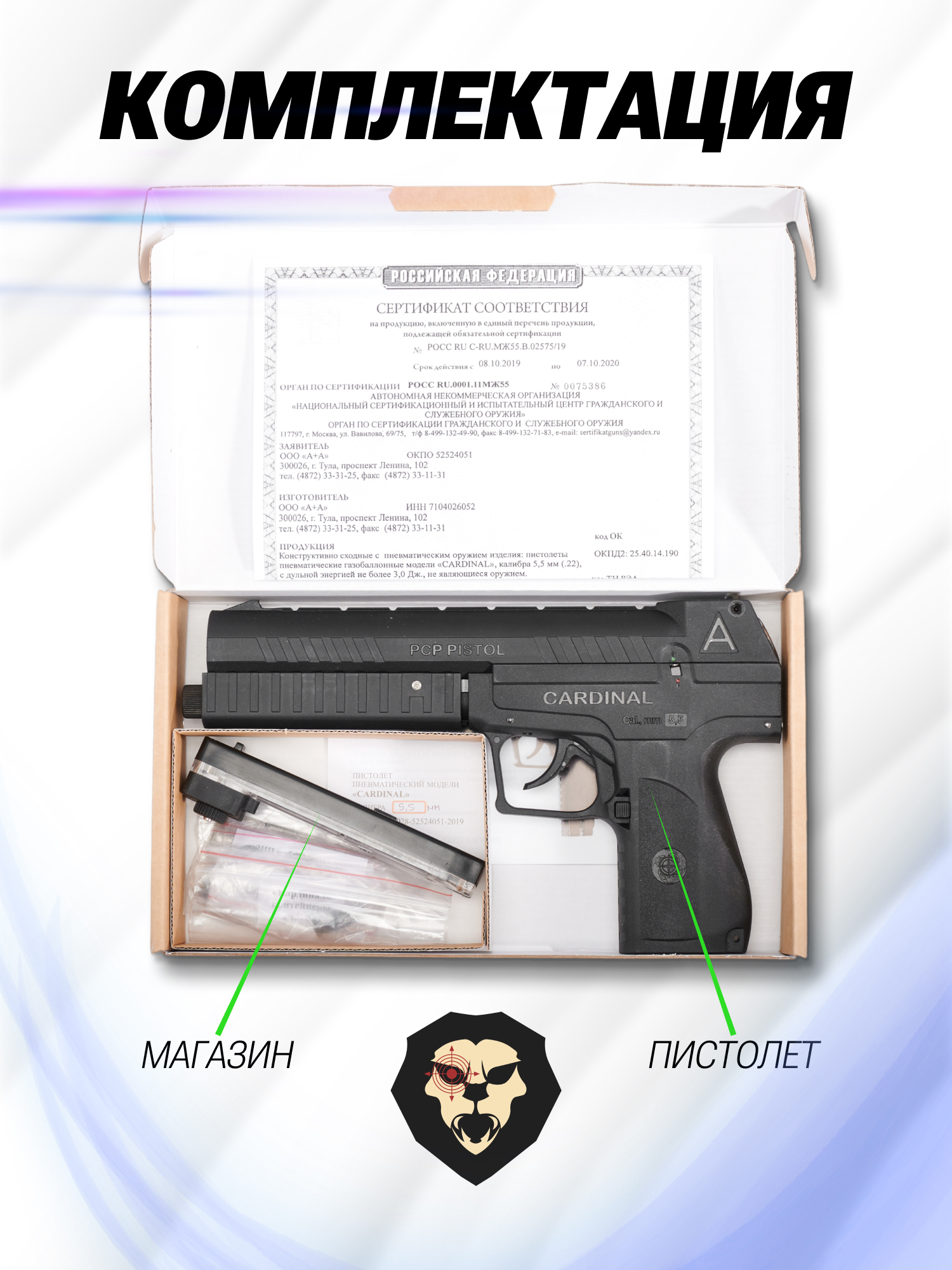Пневматический пистолет Кардинал русского производства компании “А+А” в городе Тула.