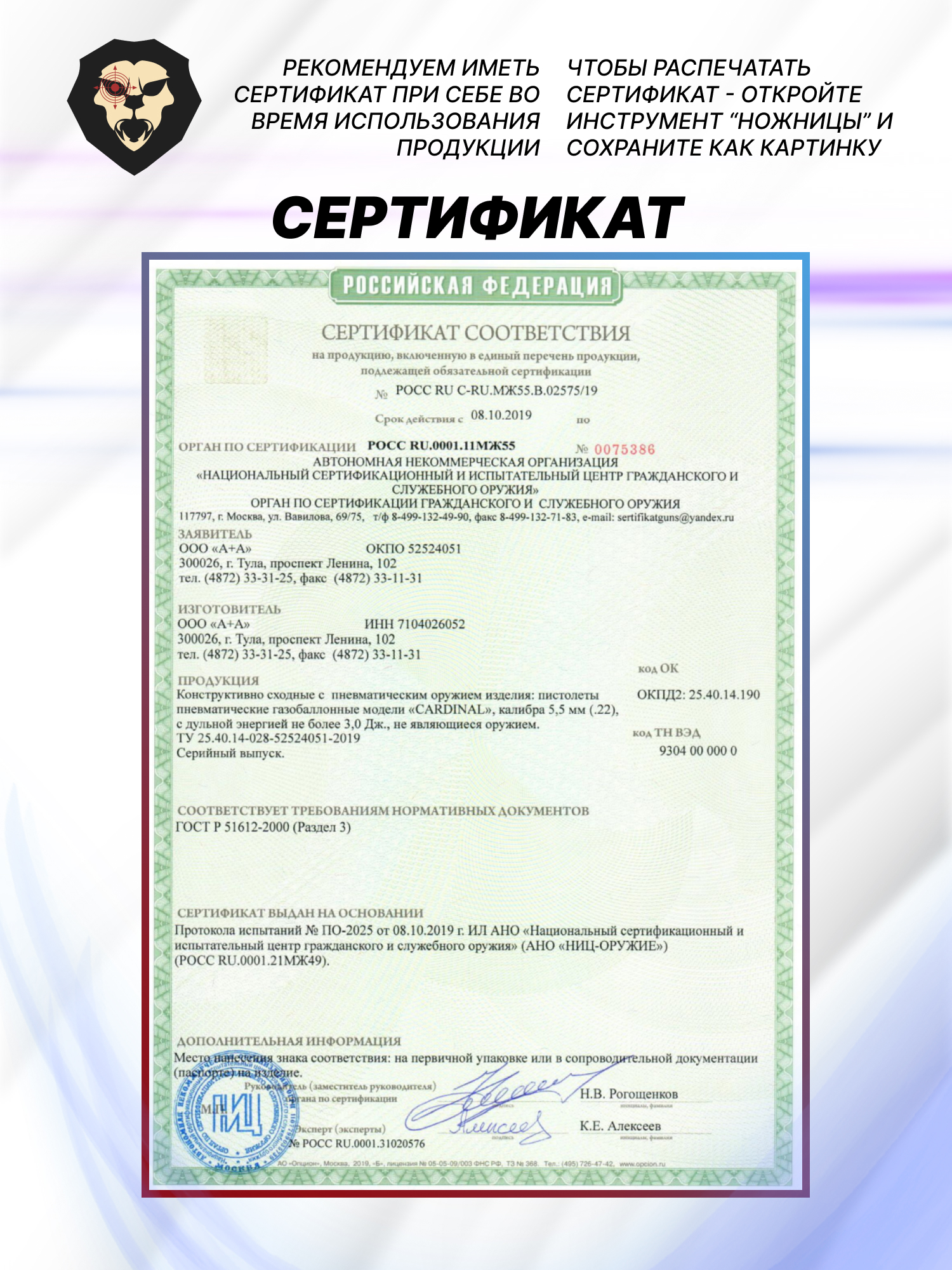 | сертификат, паспорт |