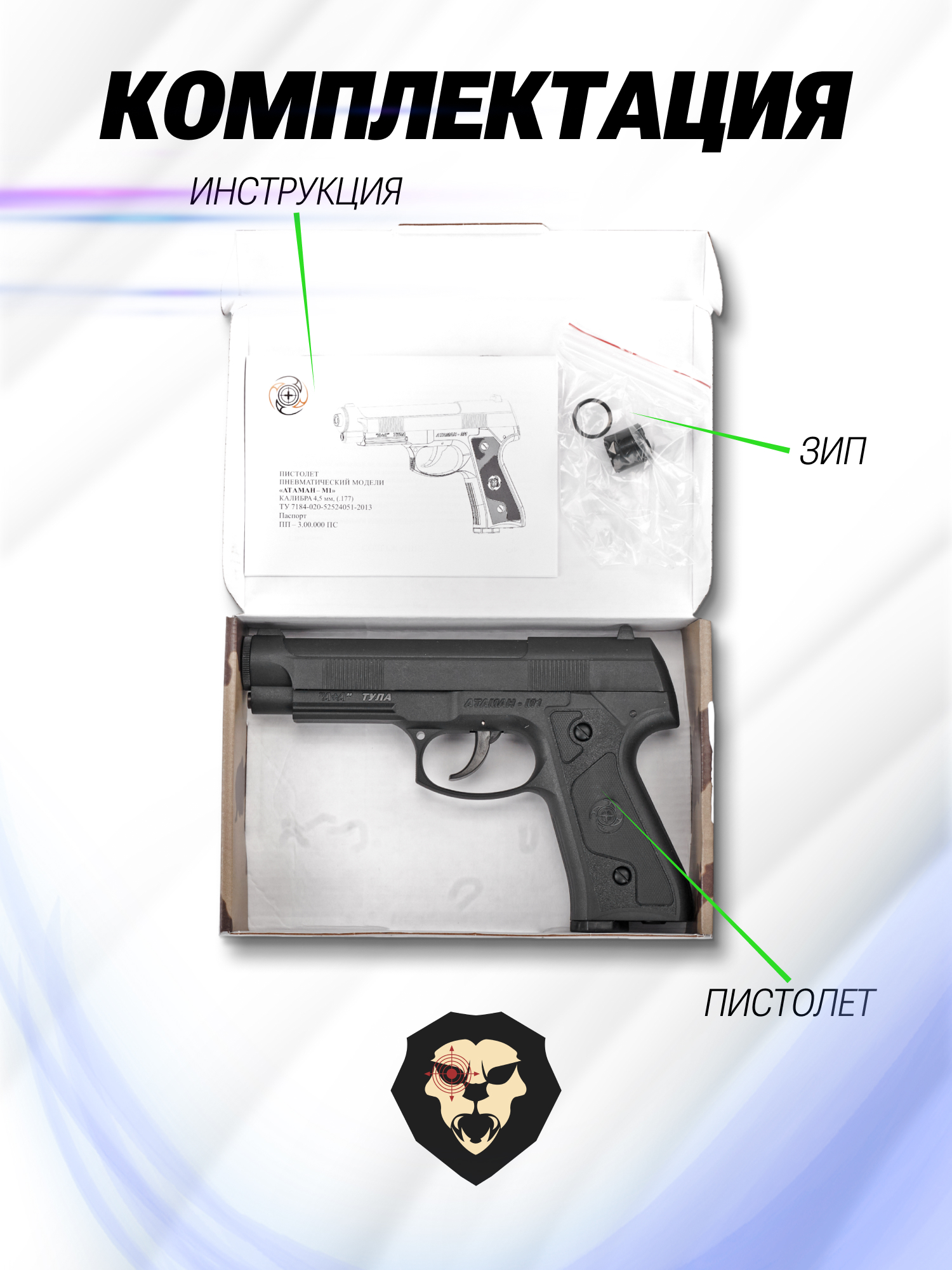 | Комплектация | Пистолет, магазин, игла, уплотнительное кольцо, упаковка, краткая документация, копия сертификата (по запросу покупателя) |