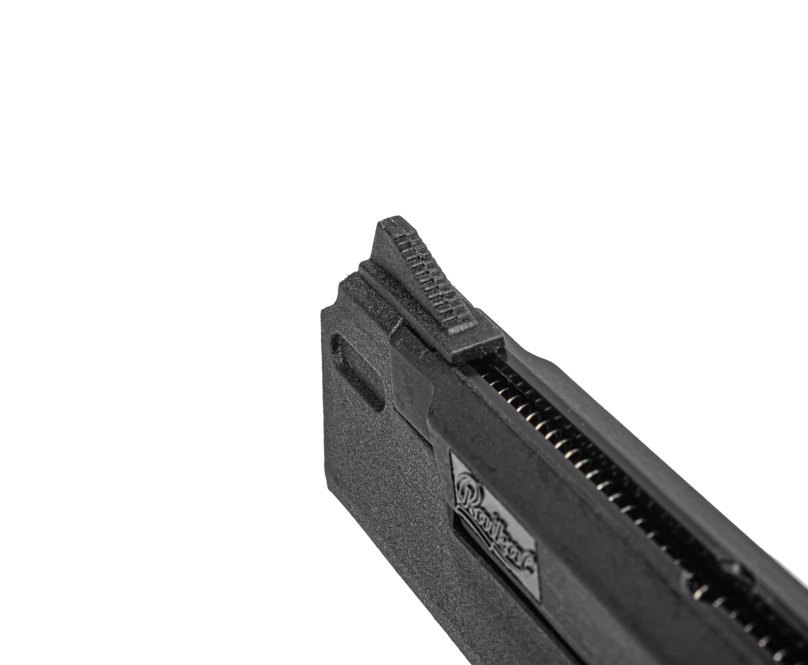 Здесь задействовали комбинированный механизм питания. Конструктивно платформа относится к категории револьвером - для питания используют барабаны на 8 пулек под оба указанных выше вида зарядов. Вместе с тем в переднем кожухе пистолета присутствует отдельный магазин на 23 места, который в процесс опустошения барабанчика подает в него шарики - таким образом при использовании BB боеприпасов общая вместимость возрастает до 31 шт, что делает процесс стрельбы комфортнее за счет отсутствия необходимости в частых перезарядках.