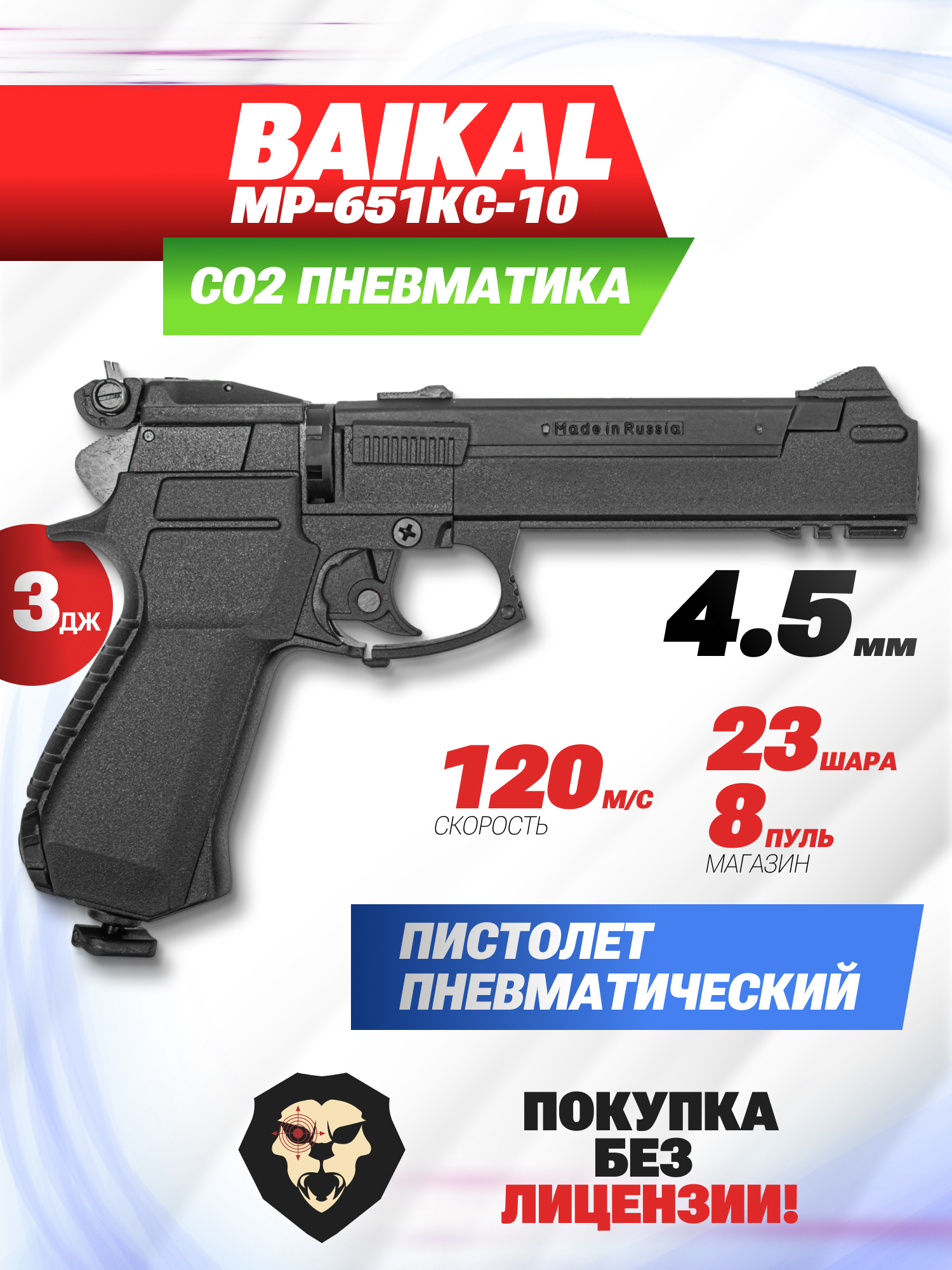 Информация о товаре "Пневматический пистолет Baikal МР-651КС-10 4.5 мм (новый целик)" носит ознакомительный характер, и не является публичной офертой, определяемой положениями Статьи 437 Гражданского кодекса Российской Федерации, характеристики, внешний вид, цвет и комплектация могут быть изменены производителем без уведомления.