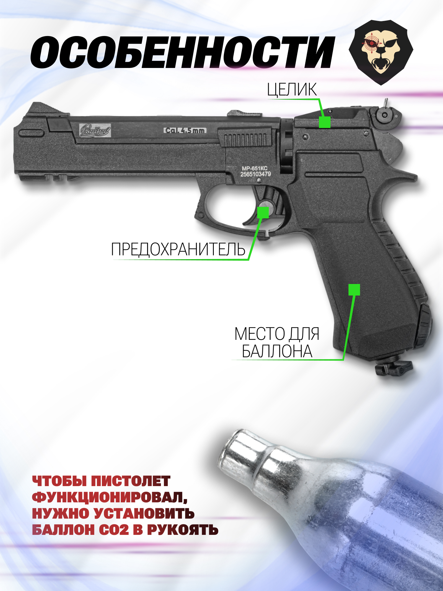 | Источник энергии | Газовый баллончик CO2 12 грамм |