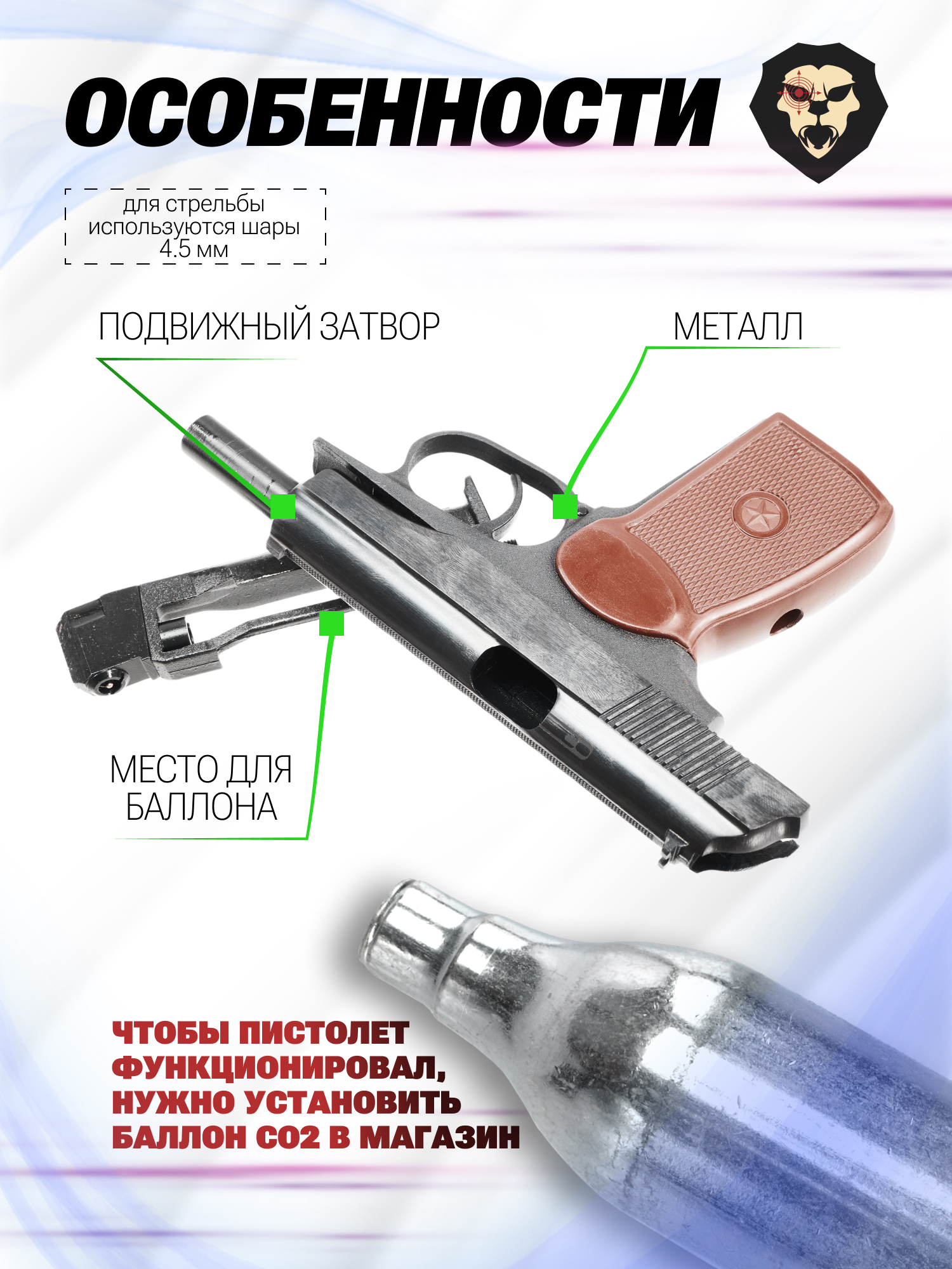 | Источник энергии | Газовый баллончик CO2 12 грамм |