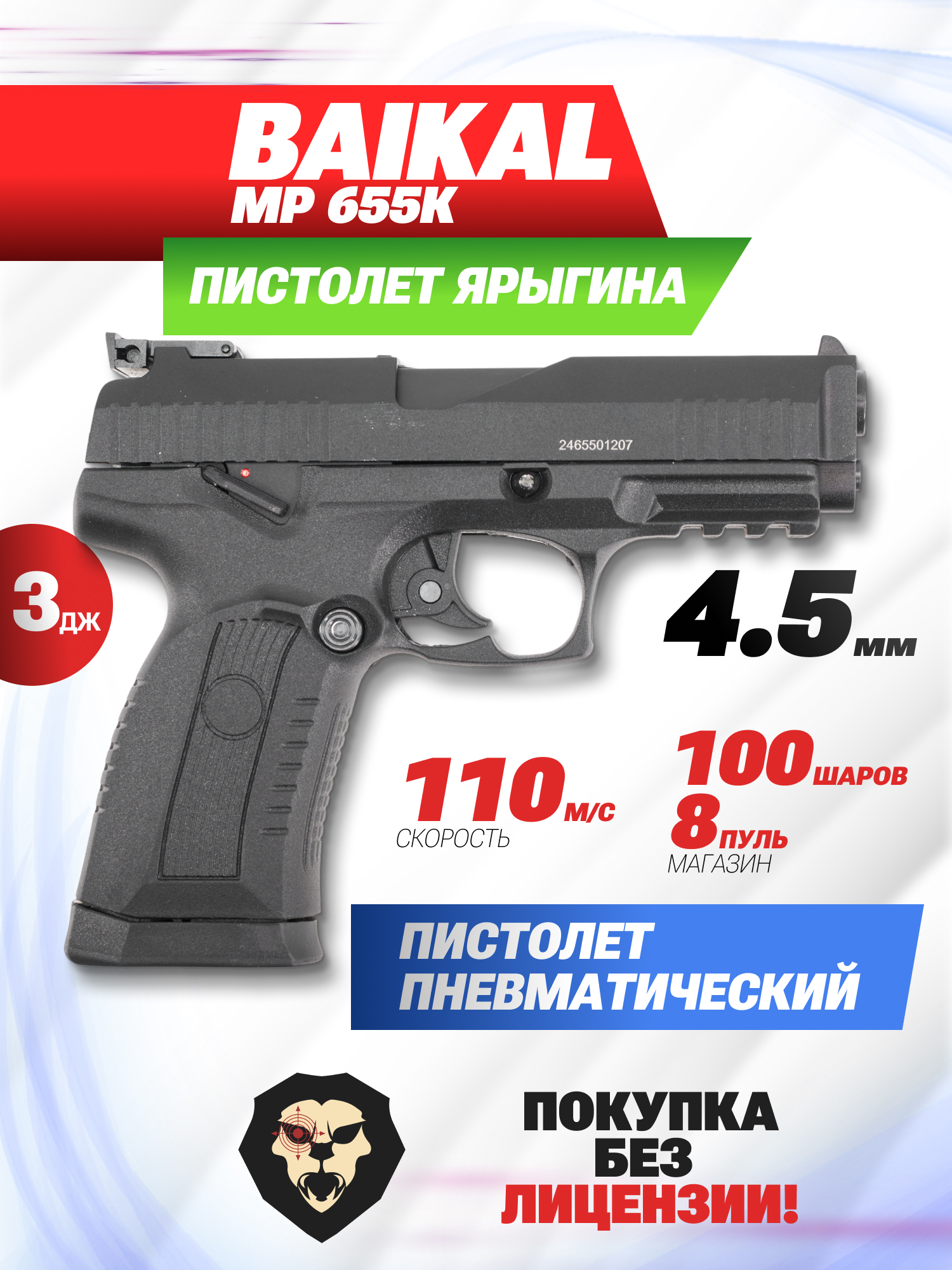 Информация о товаре "Пневматический пистолет Baikal МР-655К 4.5 мм (Ярыгина, Грач)" носит ознакомительный характер, и не является публичной офертой, определяемой положениями Статьи 437 Гражданского кодекса Российской Федерации, характеристики, внешний вид, цвет и комплектация могут быть изменены производителем без уведомления.