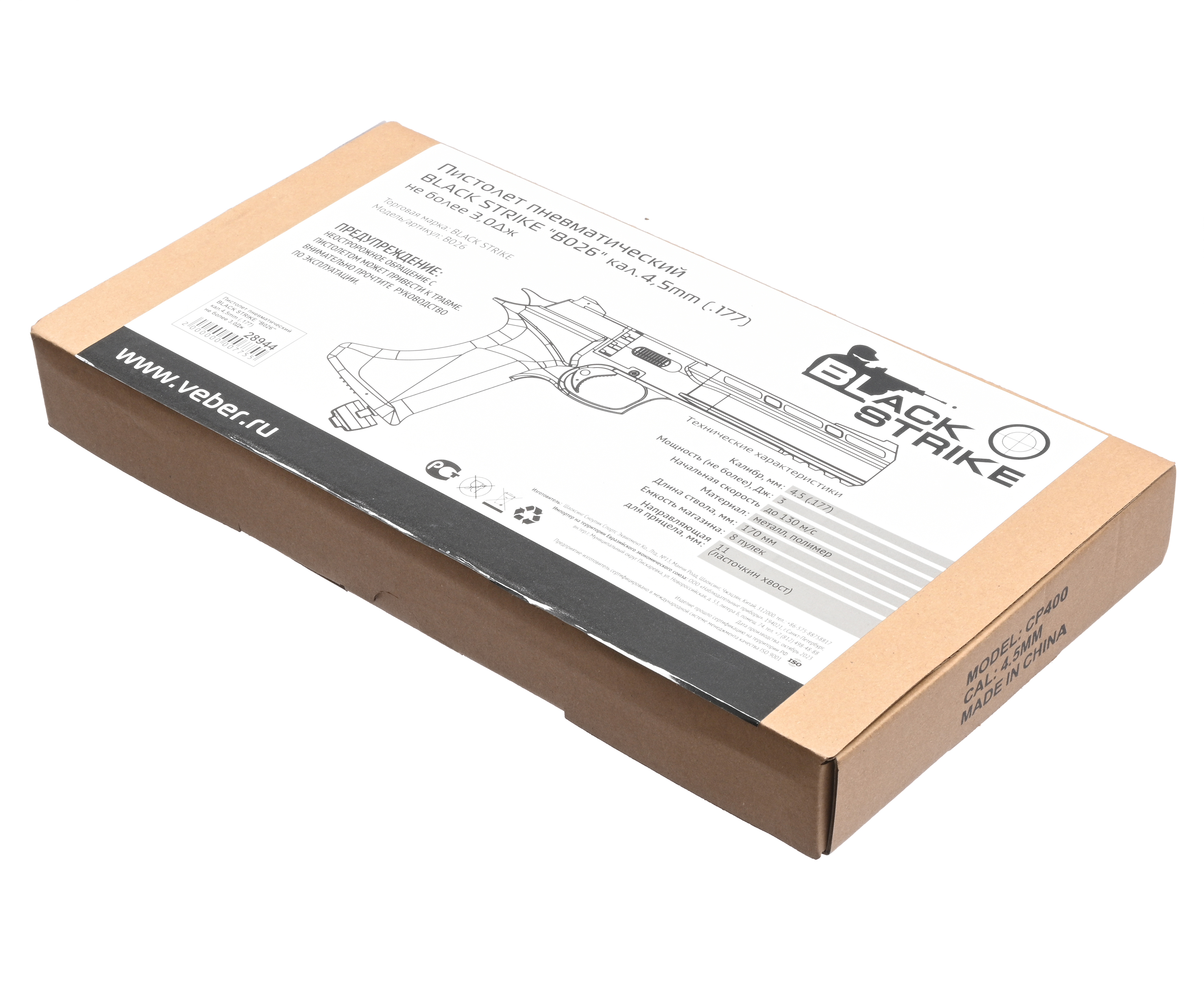 Артикул производителя Пневматический пистолет Black Strike B026 4.5 мм (3 Дж, пулевой) по низкой цене 5990 руб. Модель со штрихкодом производителя Вы можете оплатить наложенным платежем с доставкой или в отделении транспортной компании (ПЭК, СДЭК, Boxberry). Ваш заказ со штрихкодом 2000000127200 забрать на почте с оплатой при получении в любой части Российской Федерации.