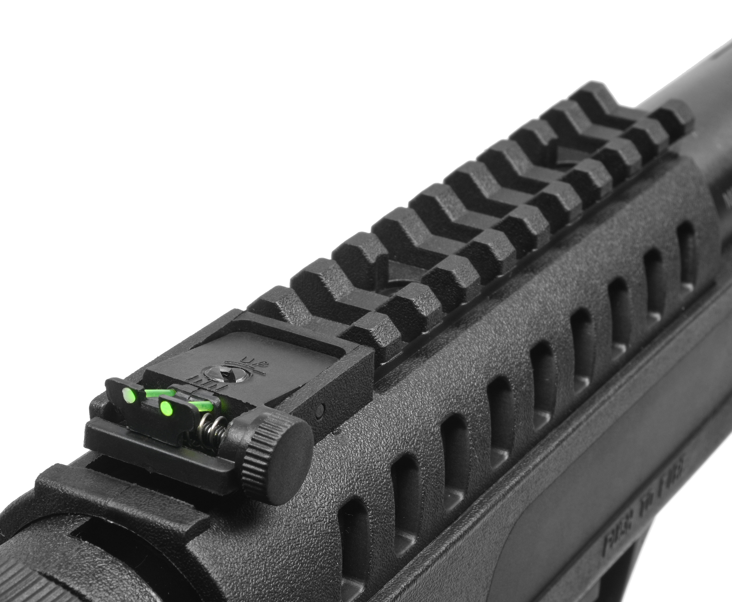 Помимо механических приспособлений для прицеливания тут также имеется планка с пазами - последние образуют планку, соответствующую стандарту Вивер. Благодаря этому для установки коллиматора не понадобится искать переходники.