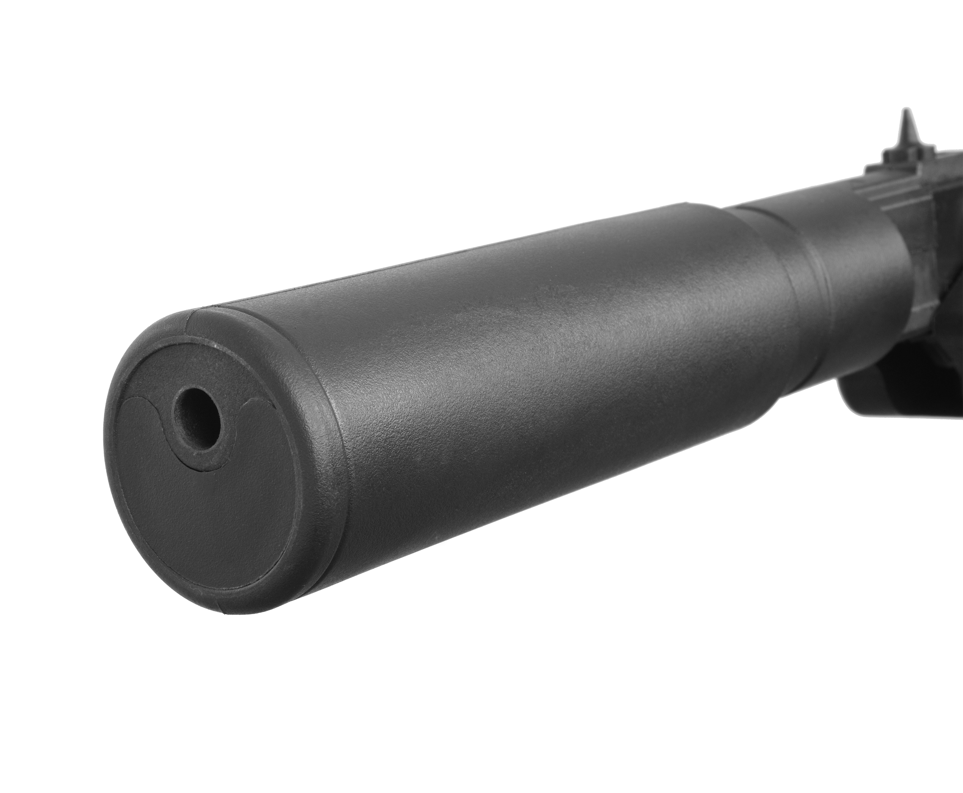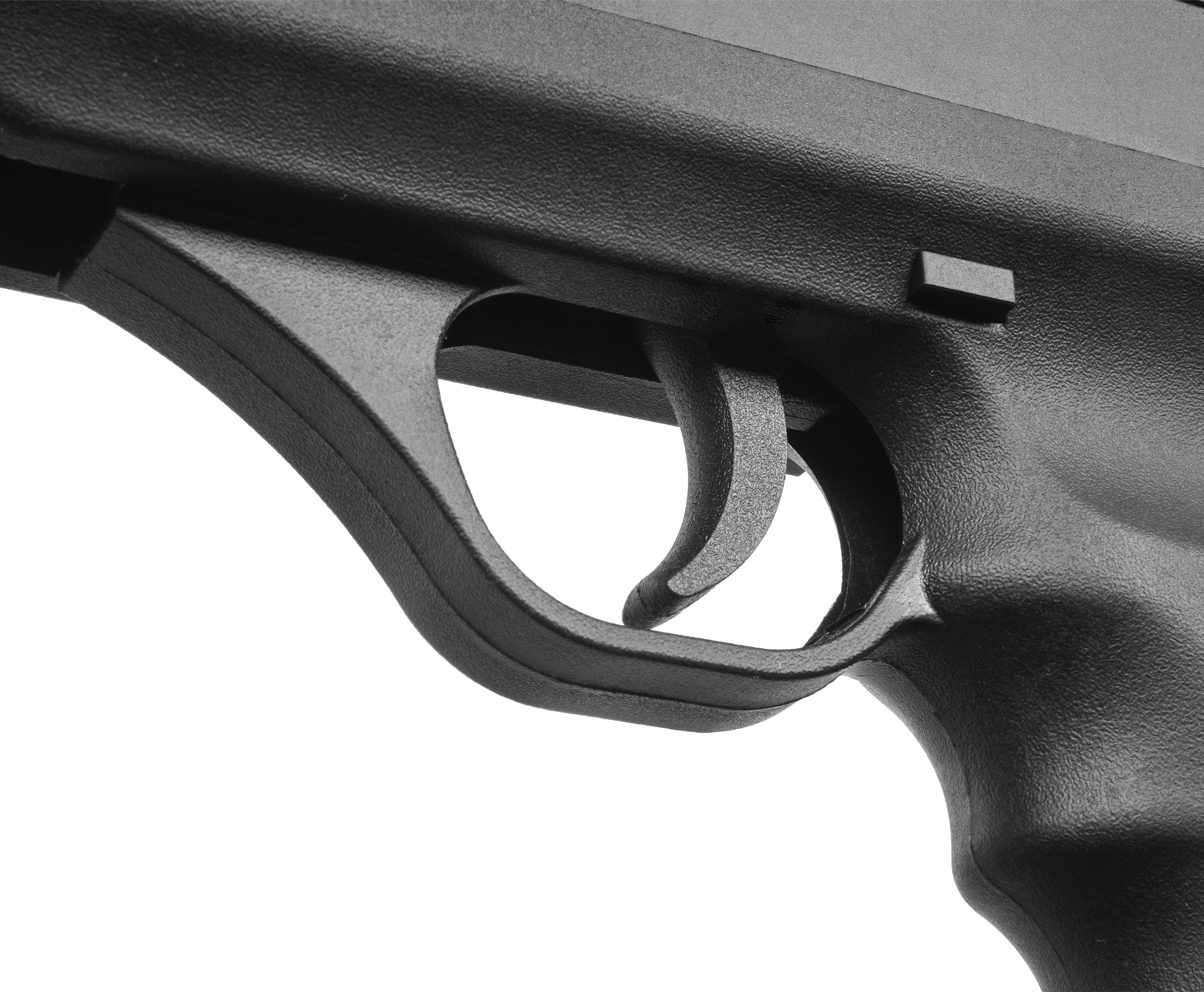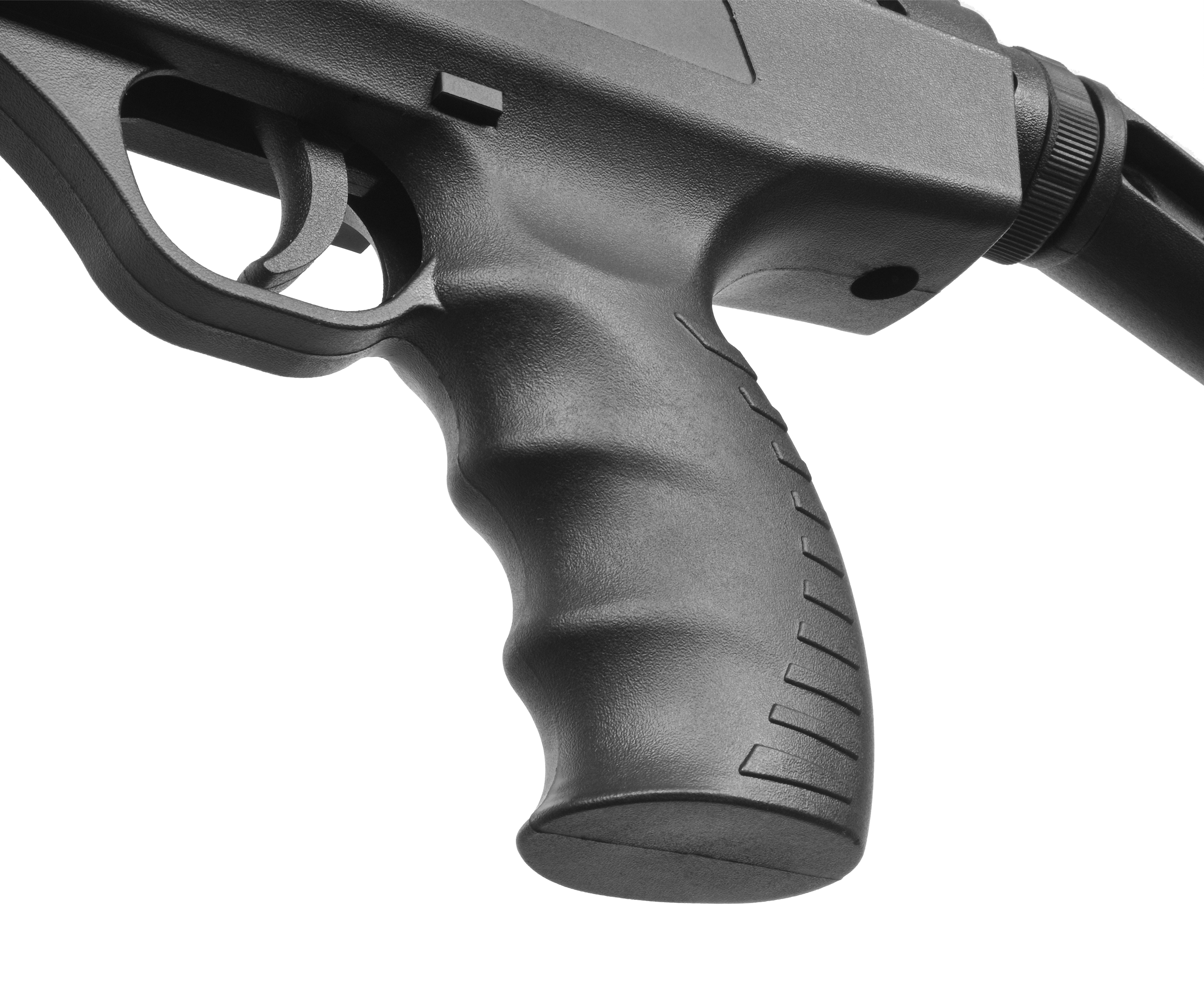 Что касается конструкции, здесь все стандартно - взведение механизма проводится проворотом муфты вместе со стволом вниз до зацепа поршня с рабочей частью шептала, что стало удобно делать благодаря полимерному кожуху ствола. Отмечается способ запирания - вместо классического ригеля здесь используется метод с шаром, что обычно характерно для спортивных дорогостоящих винтовок. Следовательно, муфта закрывается так, что люфты и потеря воздуха при выстреле исключены.