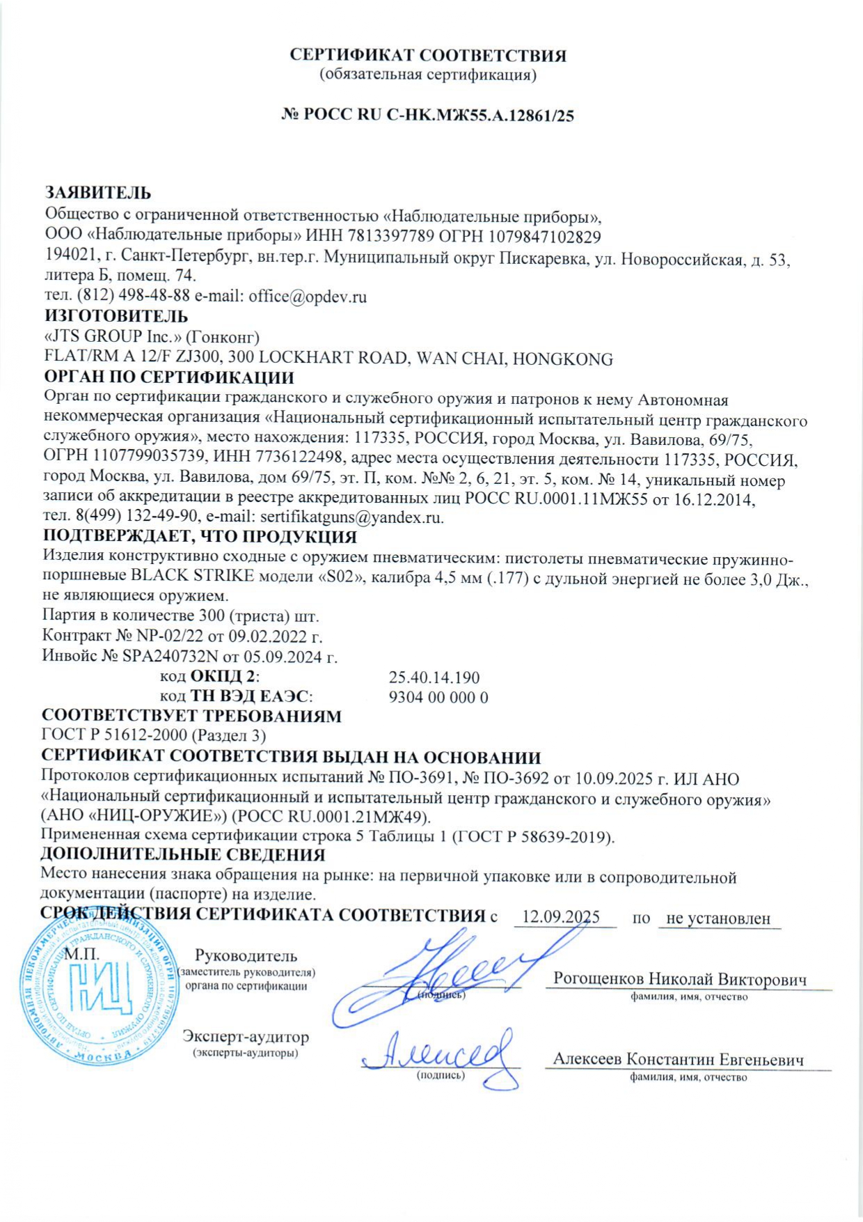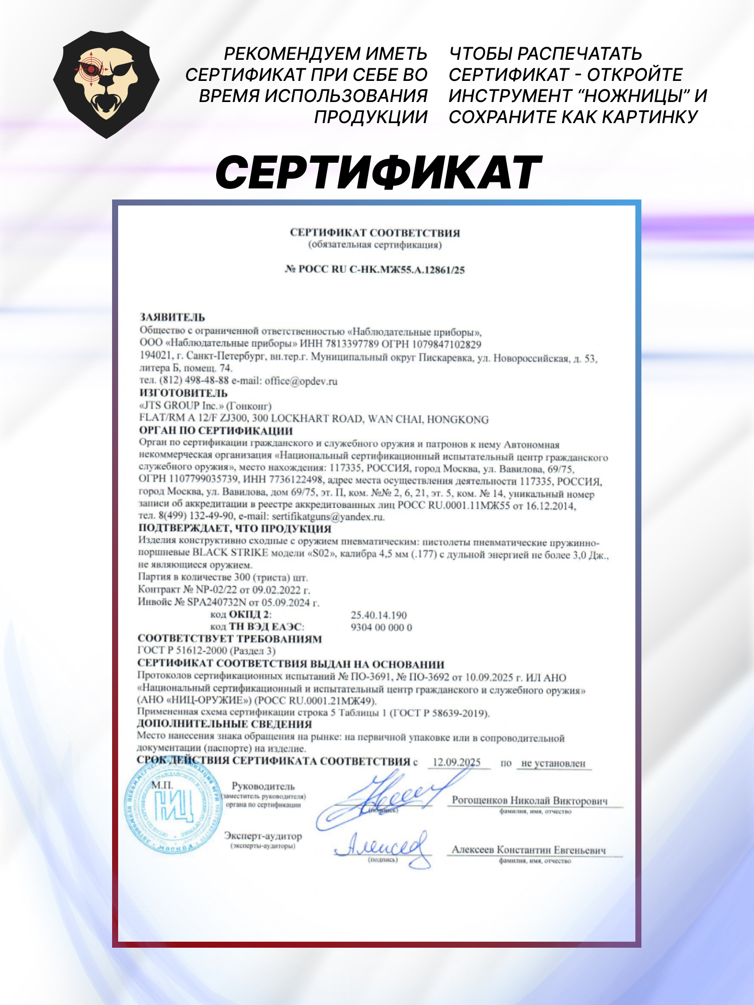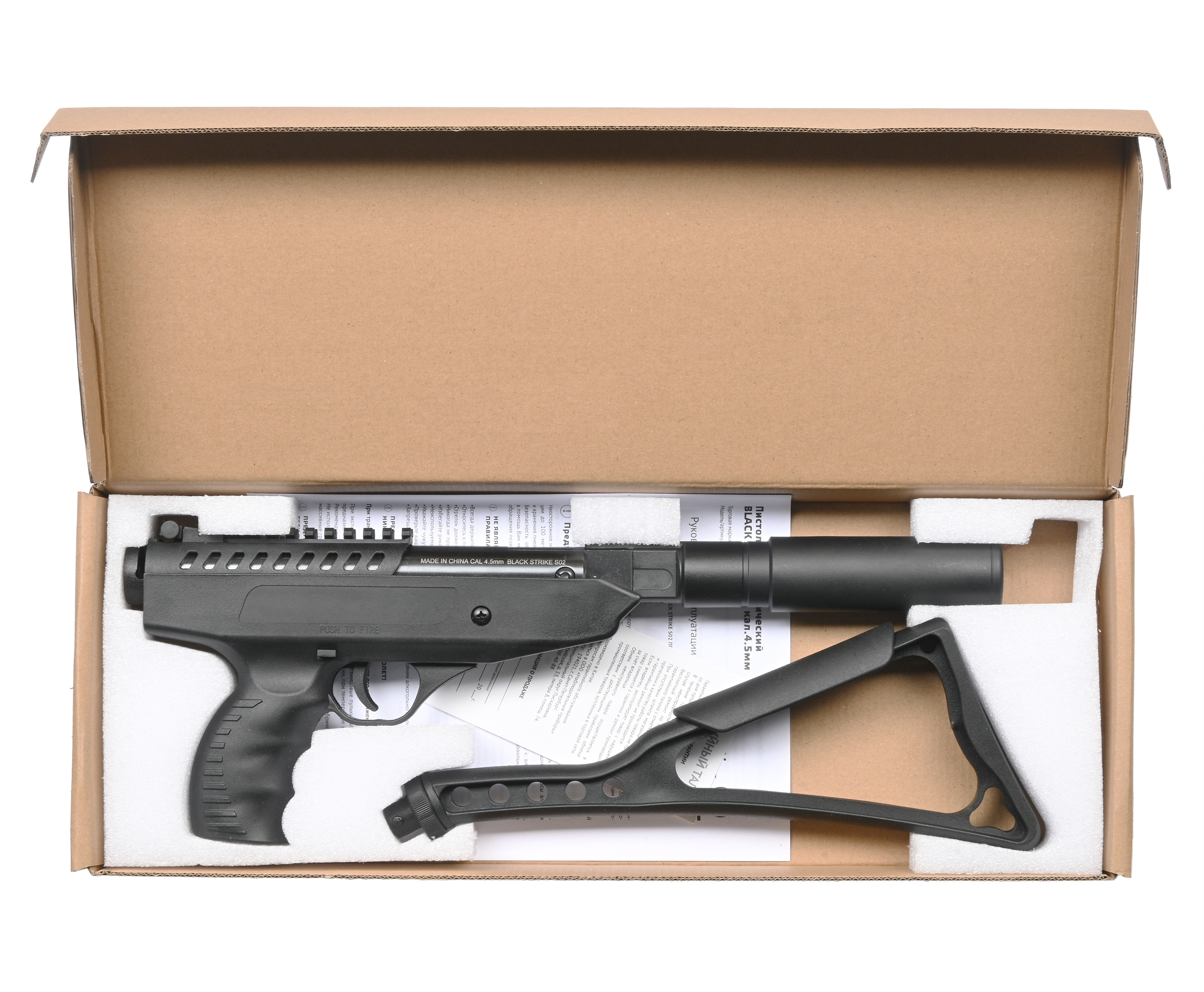 Артикул производителя 32233 Пневматический пистолет Black Strike S02 4.5 мм (переломка, 3 Дж, приклад) по низкой цене 10390 руб. Модель со штрихкодом производителя Вы можете оплатить наложенным платежем с доставкой или в отделении транспортной компании (ПЭК, СДЭК, Boxberry). Ваш заказ со штрихкодом 2000000178394 забрать на почте с оплатой при получении в любой части Российской Федерации.