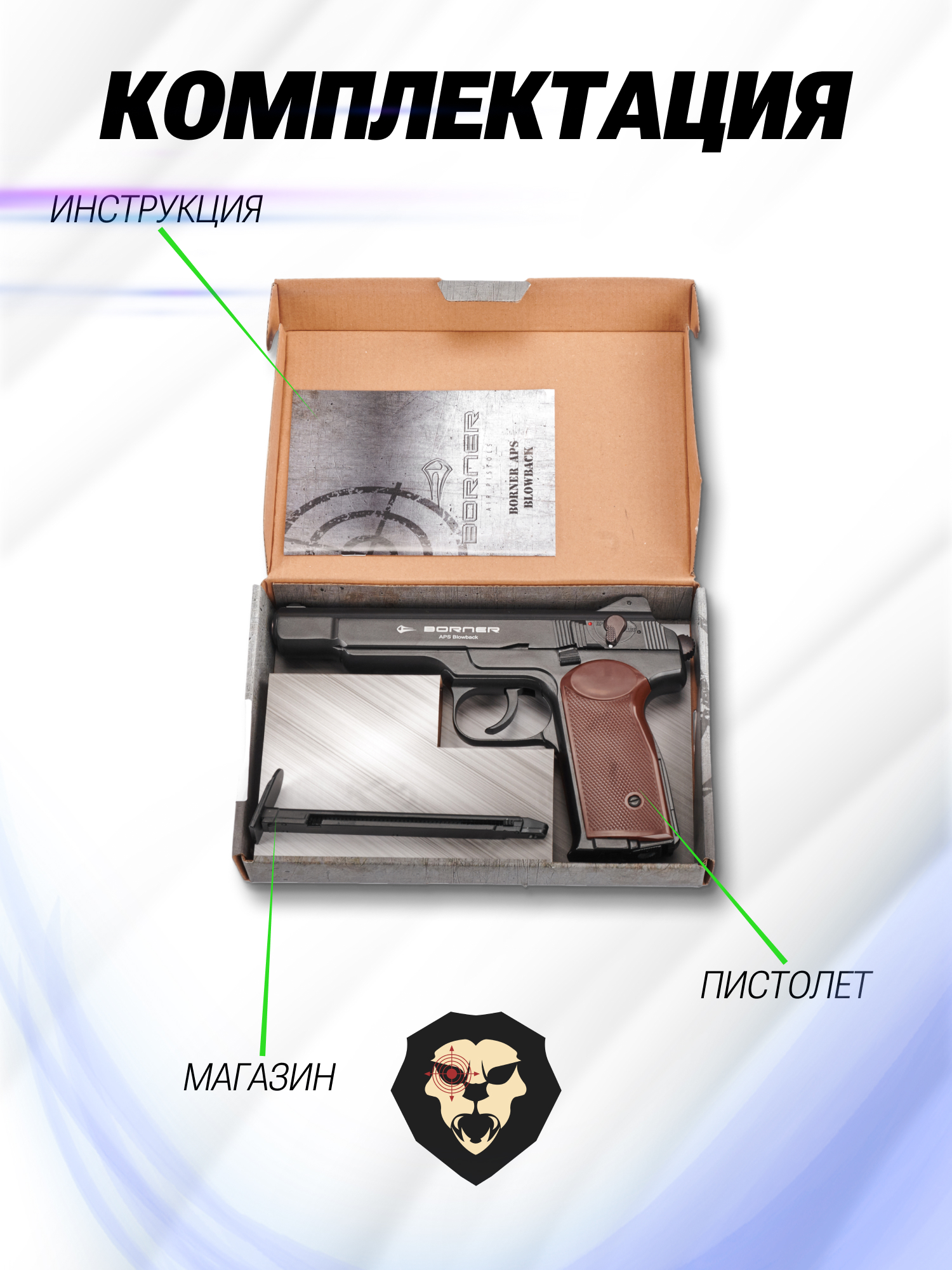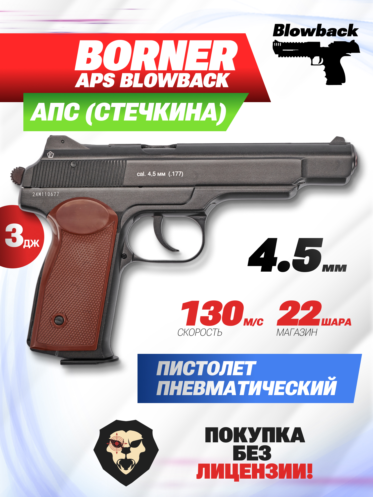 Пневматический пистолет Borner APS Blowback 4.5 мм (черный, Стечкин) купить в интернет-магазине Popadiv10.