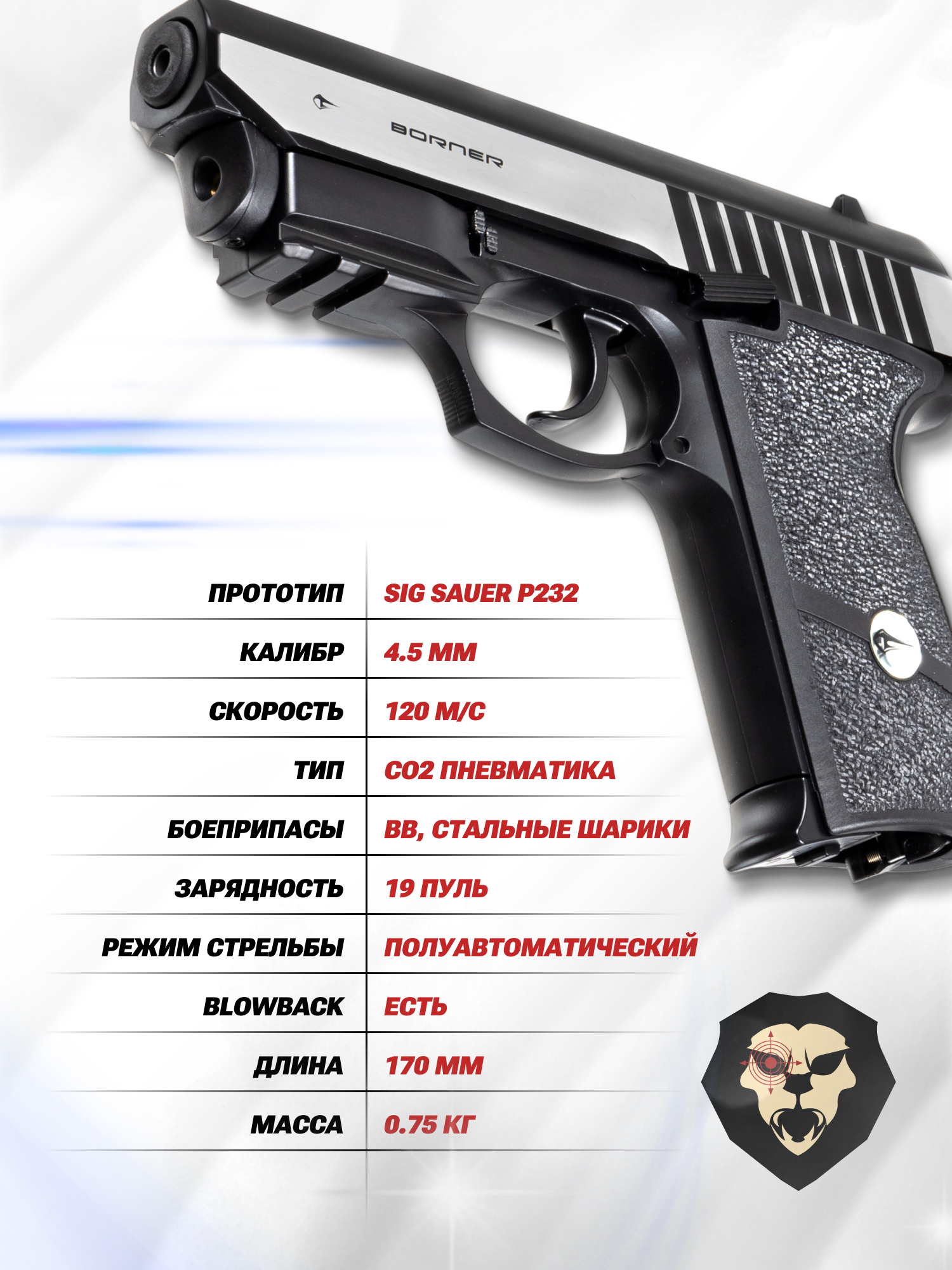 Пневматический пистолет Borner Panther 801 4.5 мм (Sig Sauer P232, ЛЦУ) купить в интернет-магазине Popadiv10.