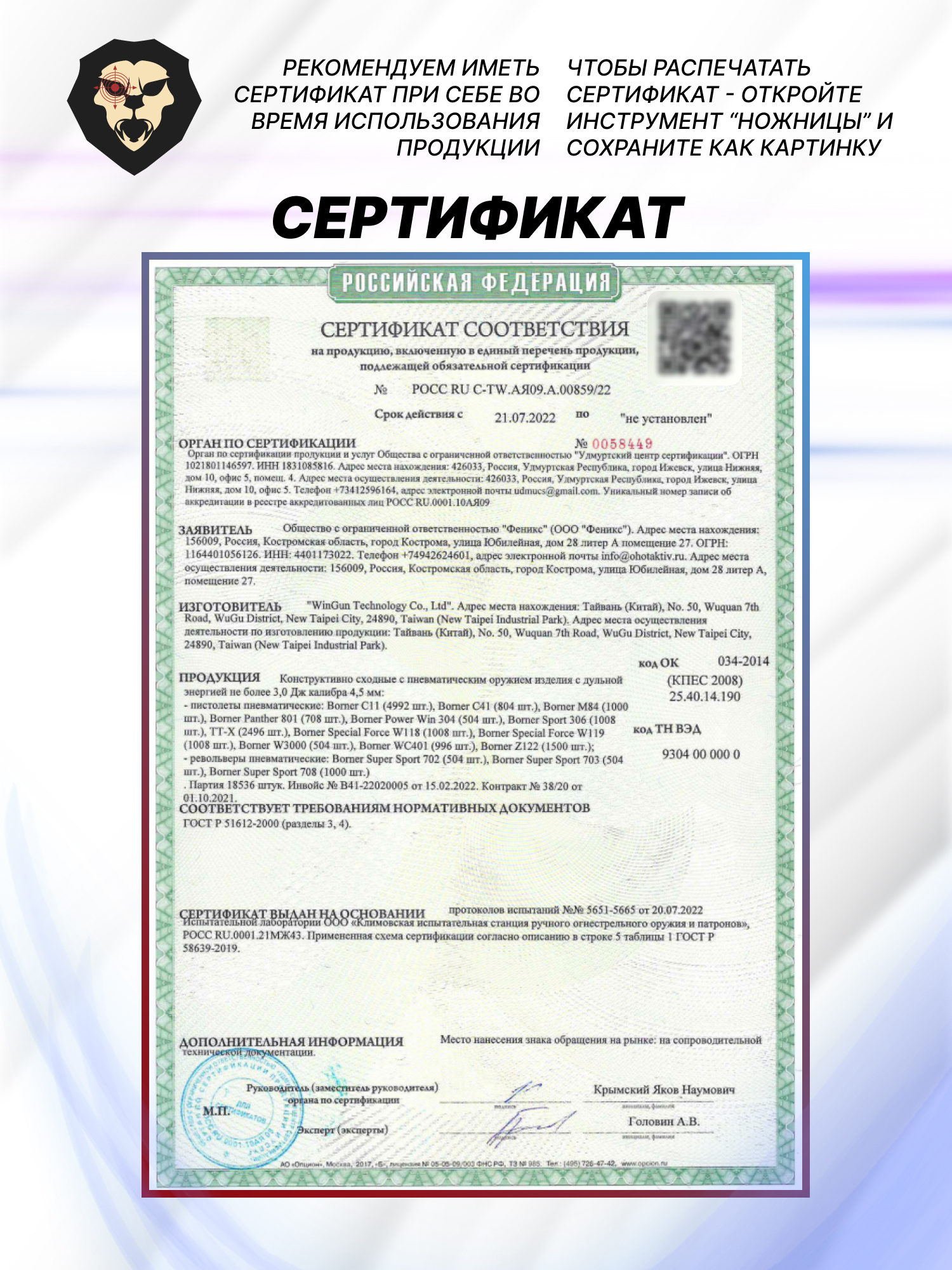 | Комплектация | Пистолет, упаковка, ЛЦУ, шестигранный ключ, краткая документация, копия сертификата (по запросу покупателя) |