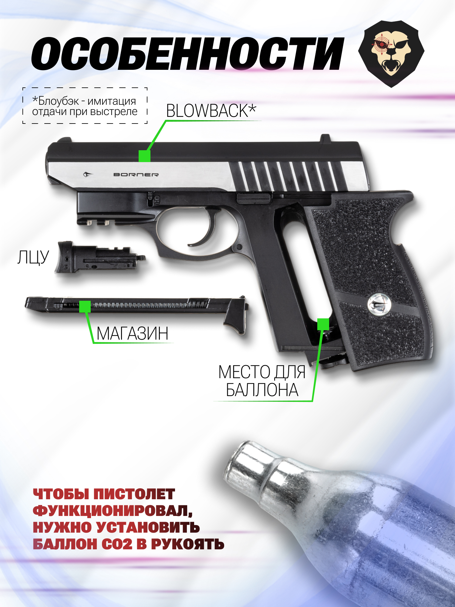 Информация о товаре "Пневматический пистолет Borner Panther 801 4.5 мм (Sig Sauer P232, ЛЦУ)" носит ознакомительный характер, и не является публичной офертой, определяемой положениями Статьи 437 Гражданского кодекса Российской Федерации, характеристики, внешний вид, цвет и комплектация могут быть изменены производителем без уведомления.
