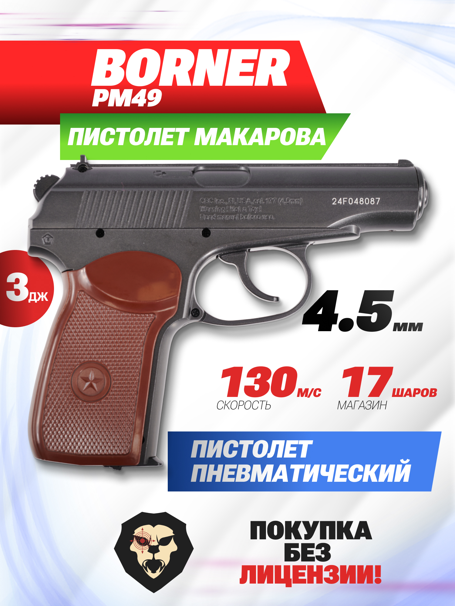 Пневматический пистолет Макарова Borner ПМ49 (4.5 мм) купить в интернет-магазине Popadiv10.