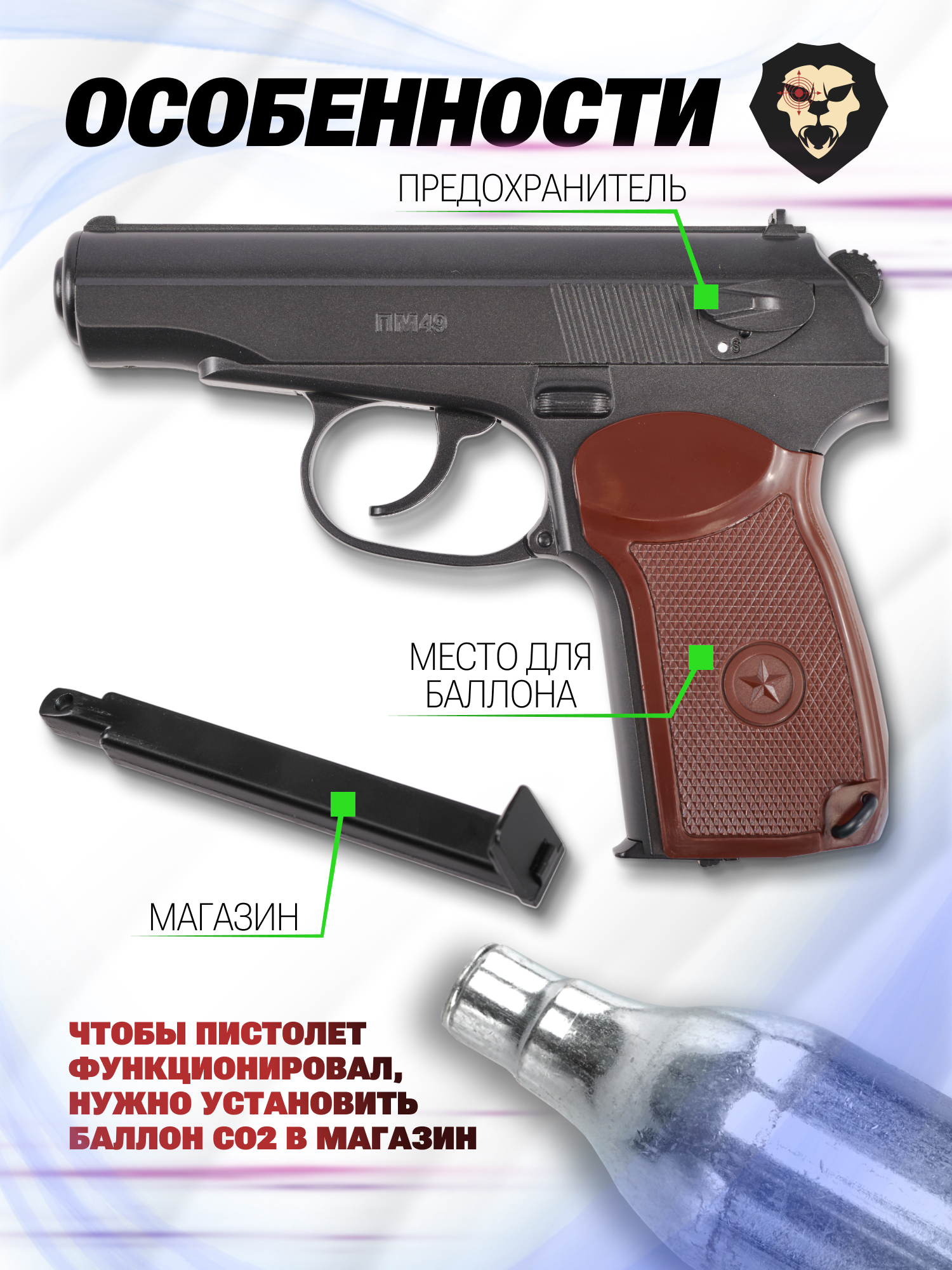 Пневматика ПМ49 — многофункциональна. Пистолет способен послужить не только при одиночном посещении тира, но и в качестве реквизита для съемок или участия в тематических мероприятиях.