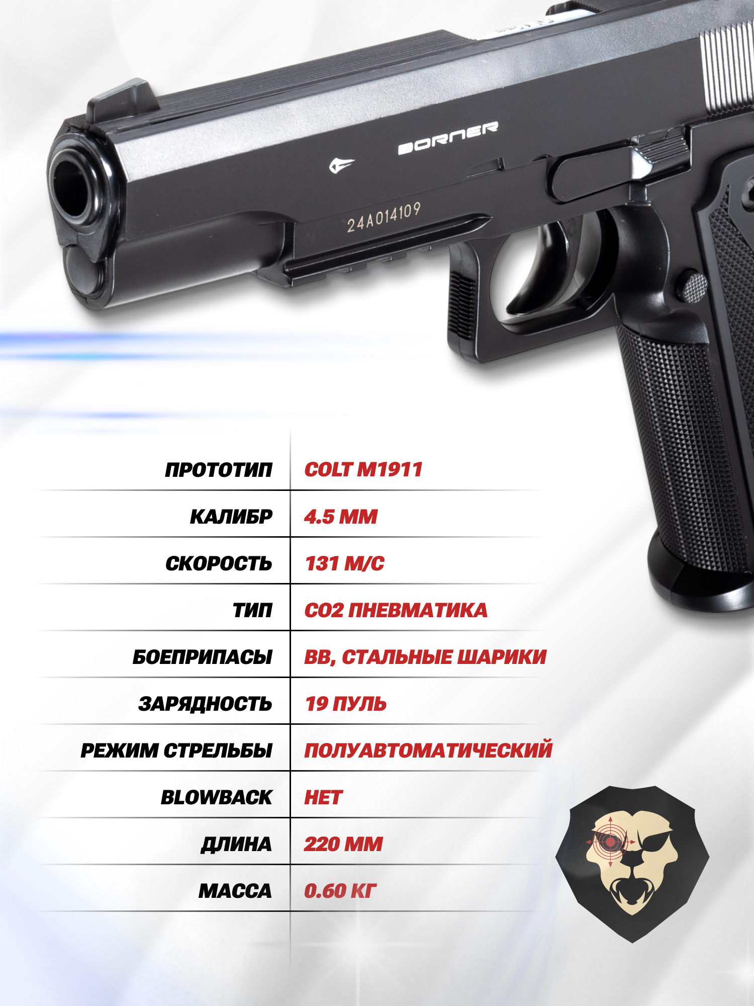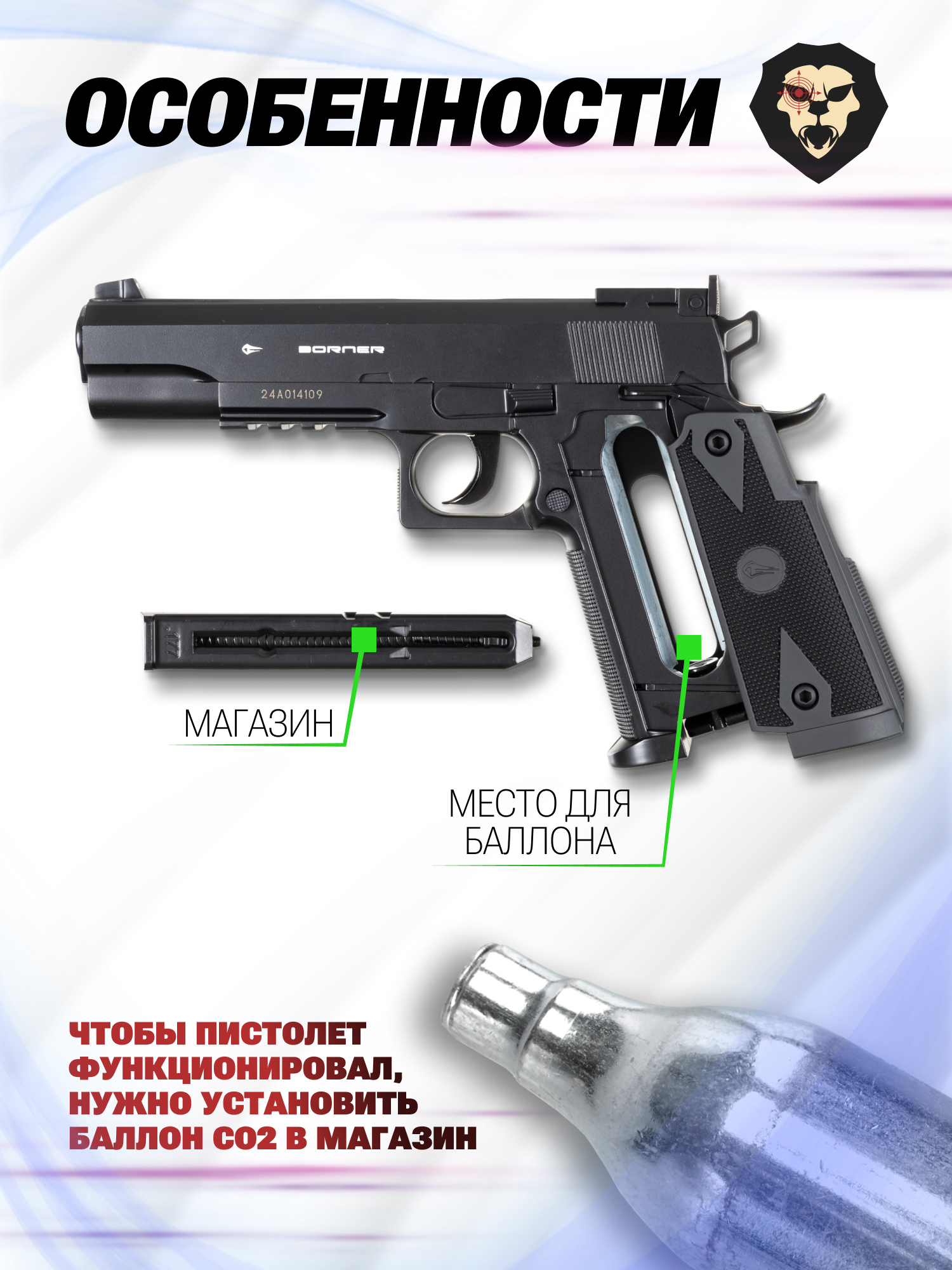 Компания Borner – известный на российском рынке производитель пневматического оружия, который заслужил популярность благодаря производству доступных пневматических пистолетов в малом ценовом сегменте.