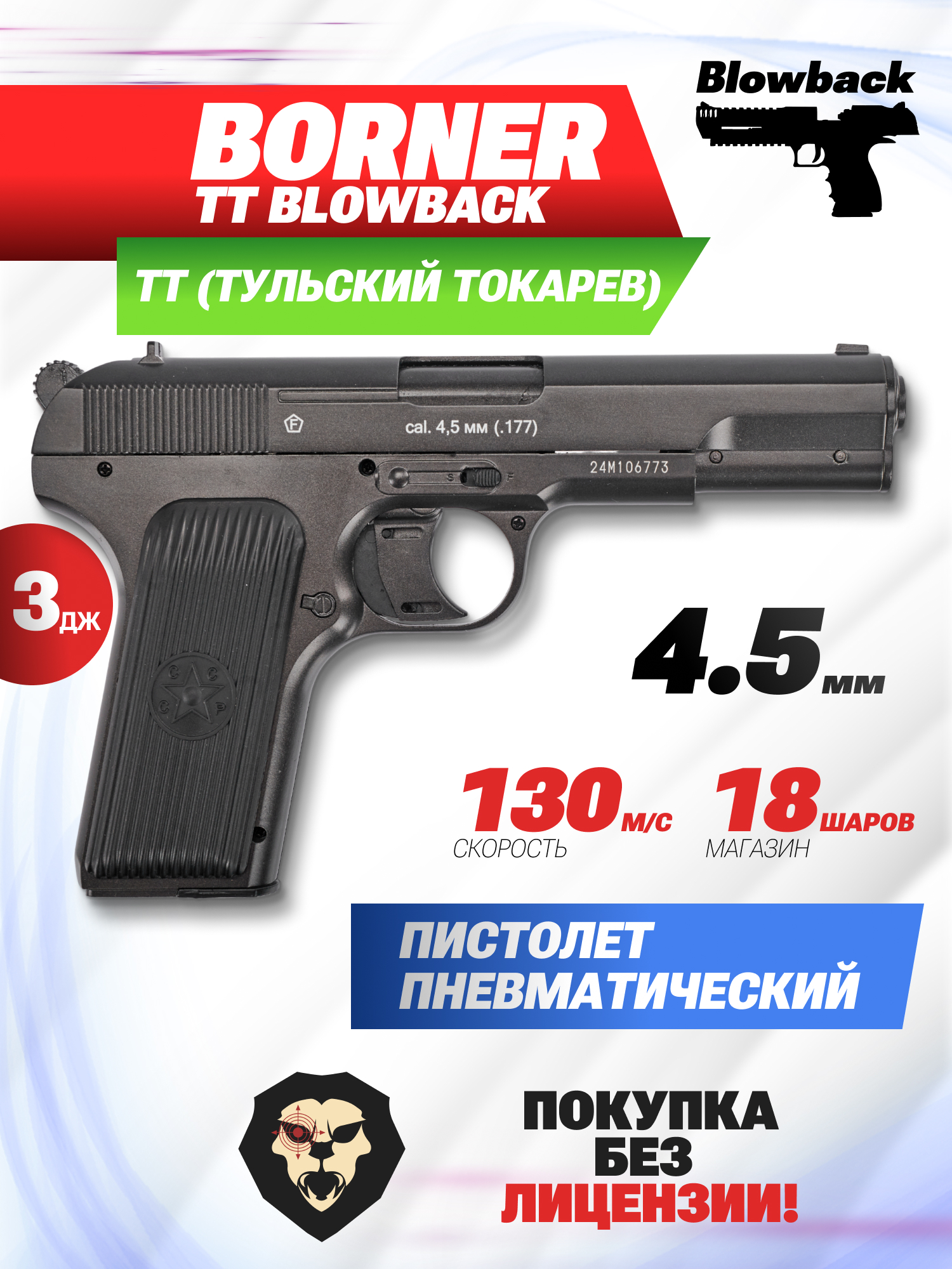 Пневматический пистолет Borner TT Blowback 4.5 мм (Тульский Токарев) купить в интернет-магазине Popadiv10.