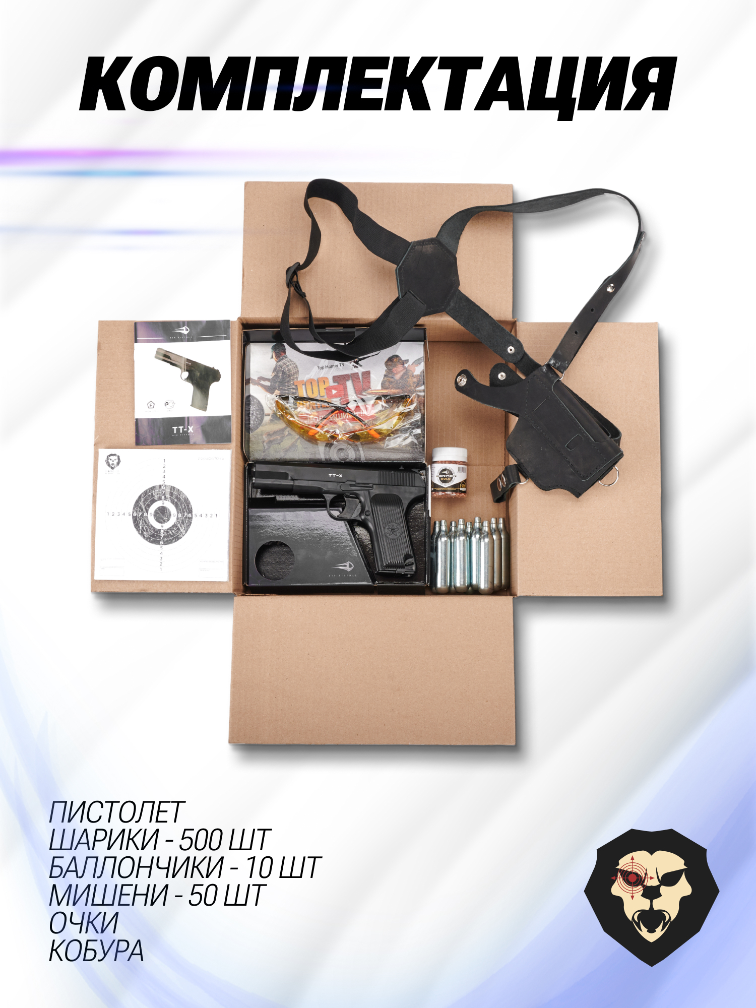 Информация о товаре "Пневматический пистолет Borner TT-X 4.5 мм комплект Hunter №1 подарочный (Токарев, кобура, 500 шаров, 10 баллонов, очки, 50 мишеней)" носит ознакомительный характер, и не является публичной офертой, определяемой положениями Статьи 437 Гражданского кодекса Российской Федерации, характеристики, внешний вид, цвет и комплектация могут быть изменены производителем без уведомления.