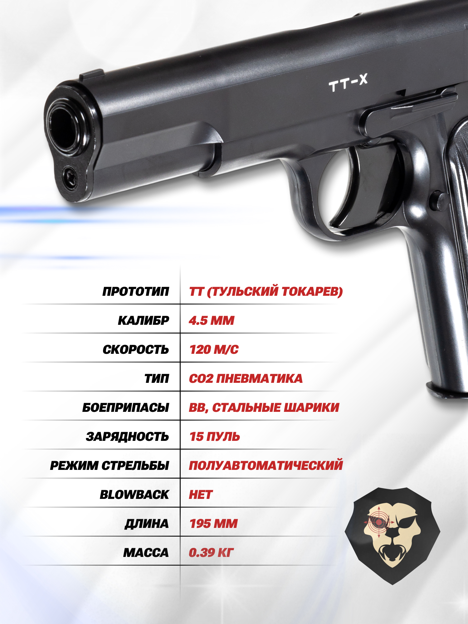 Пневматический пистолет Borner TT-X 4.5 мм комплект Hunter №1 подарочный (Токарев, кобура, 500 шаров, 10 баллонов, очки, 50 мишеней) купить в интернет-магазине Popadiv10.