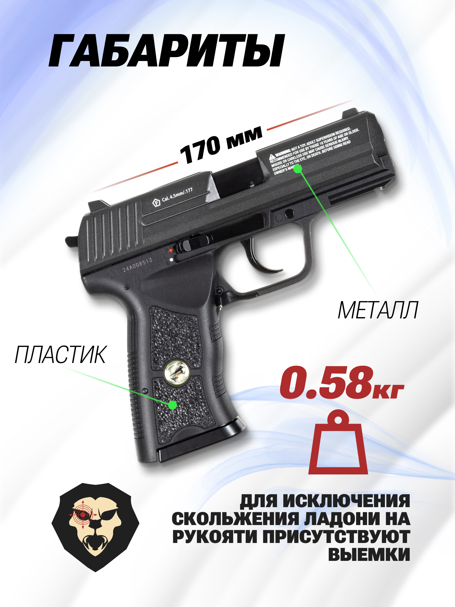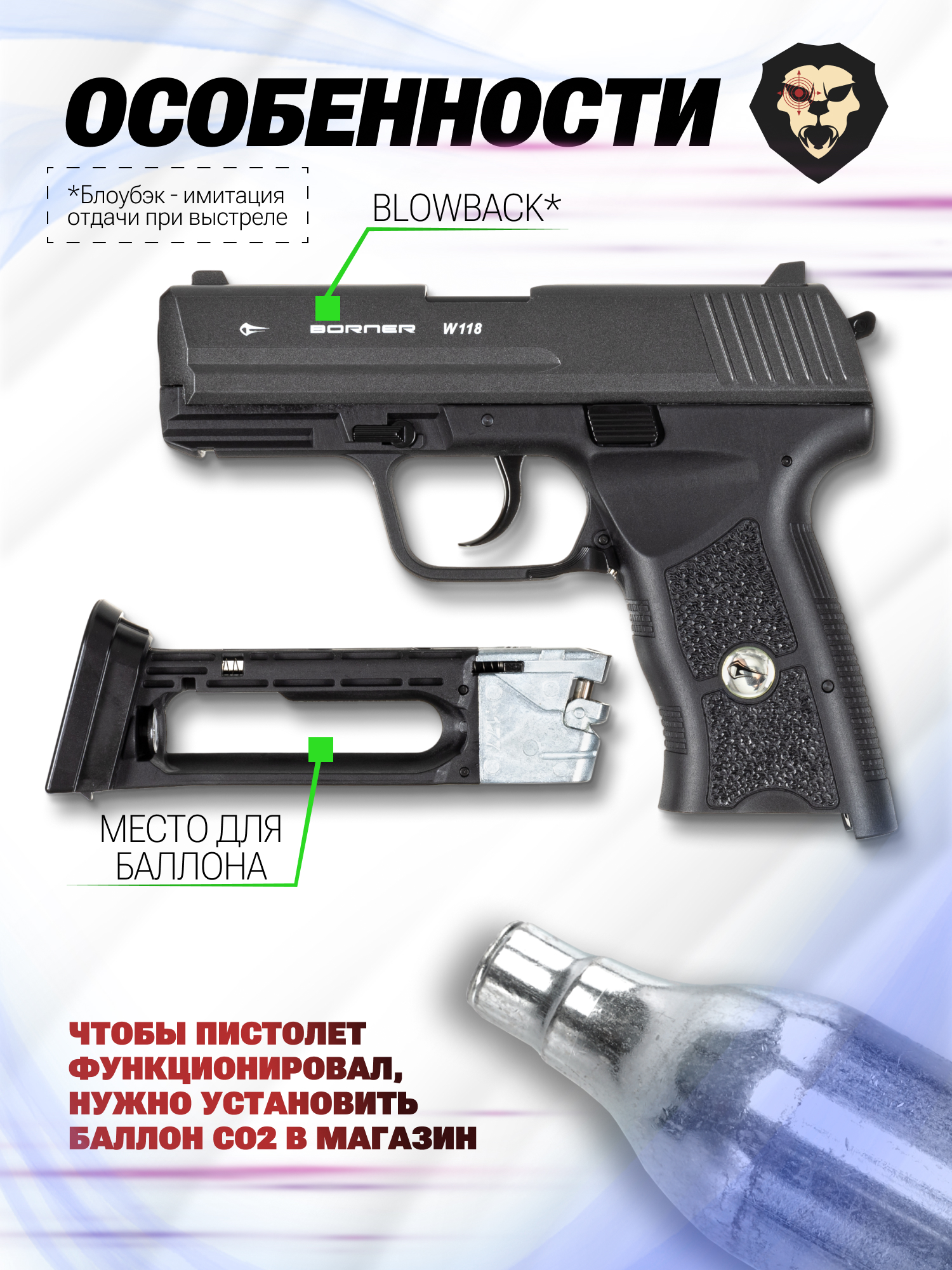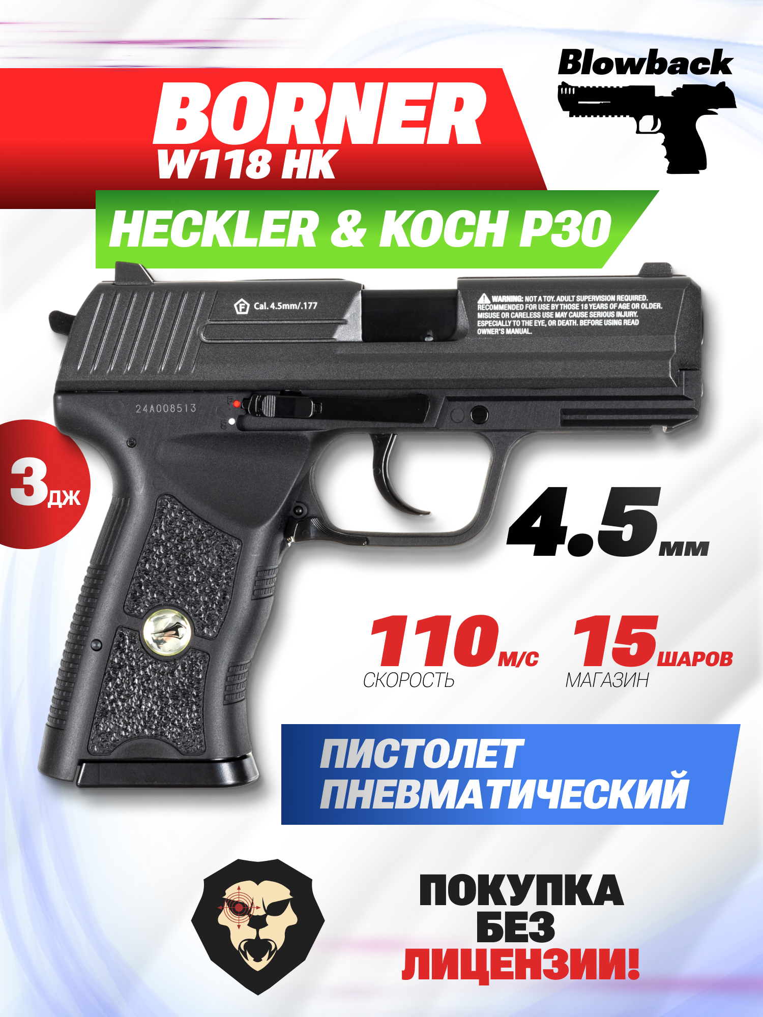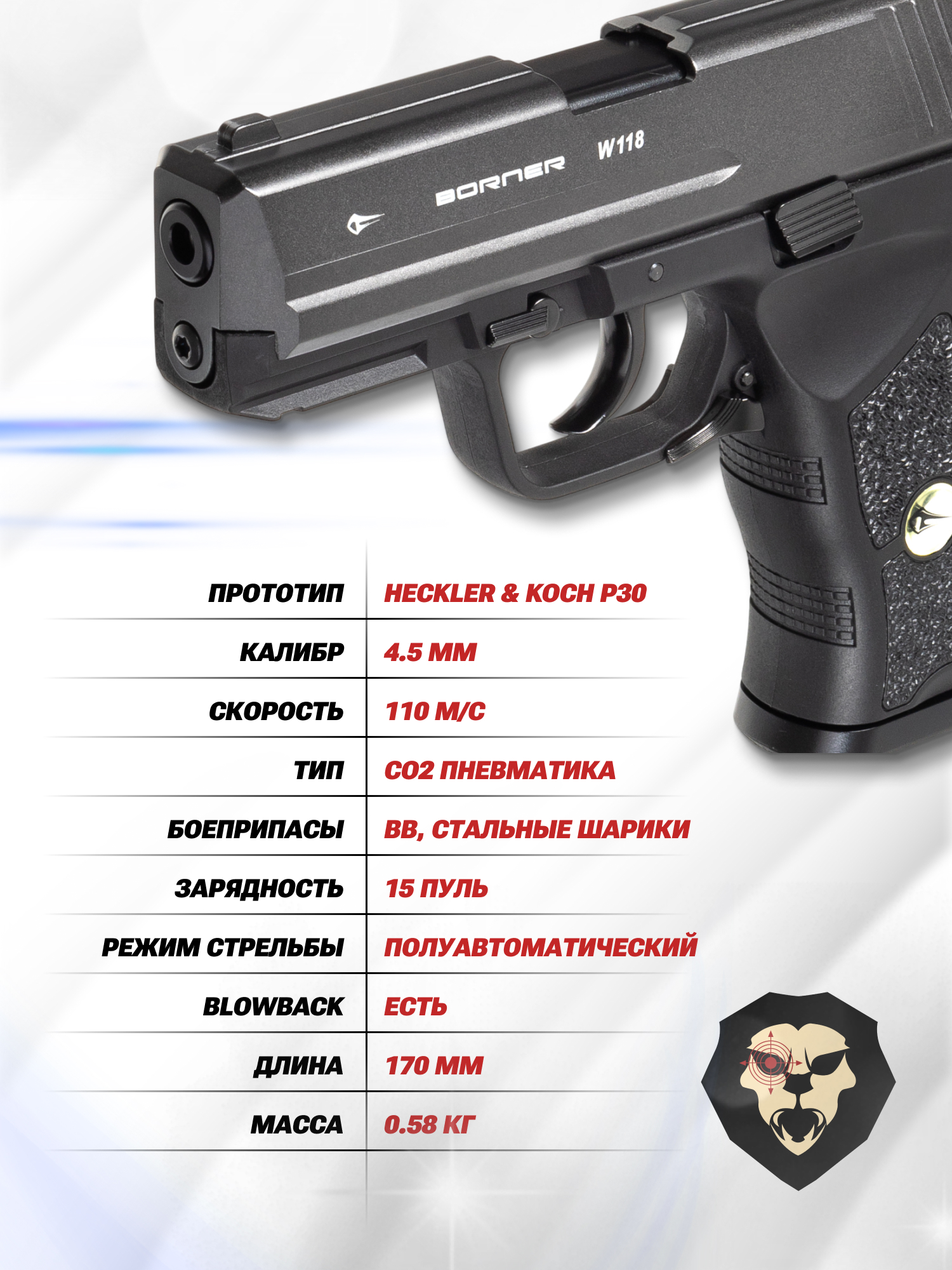 Пневматический пистолет Borner W118 HK 4.5 мм (P30, Heckler Koch, CO2) купить в интернет-магазине Popadiv10.