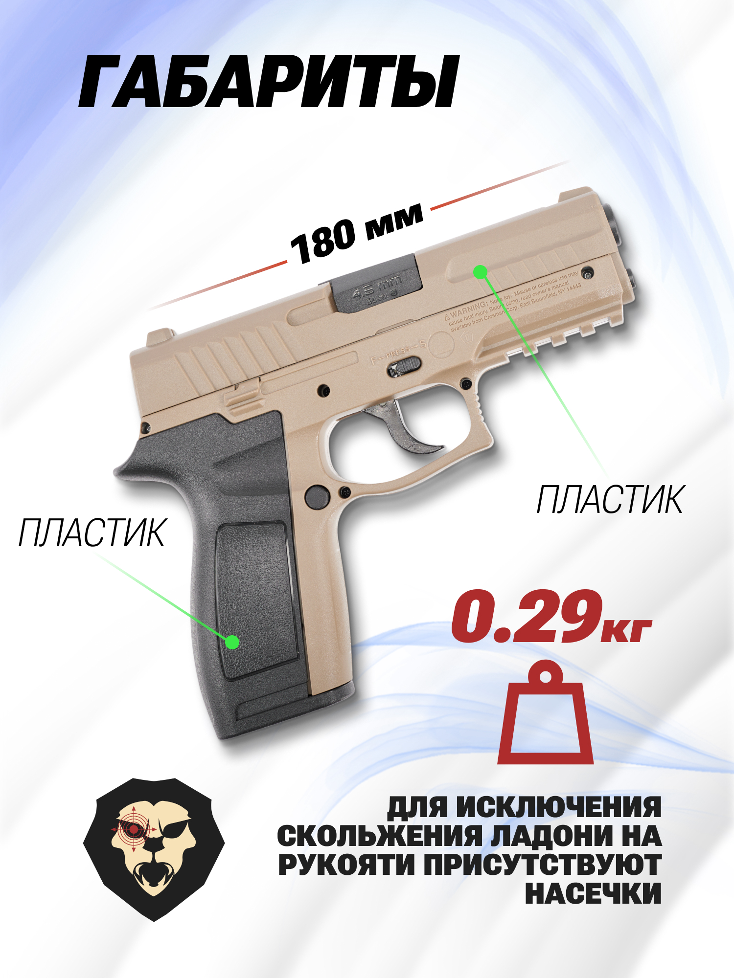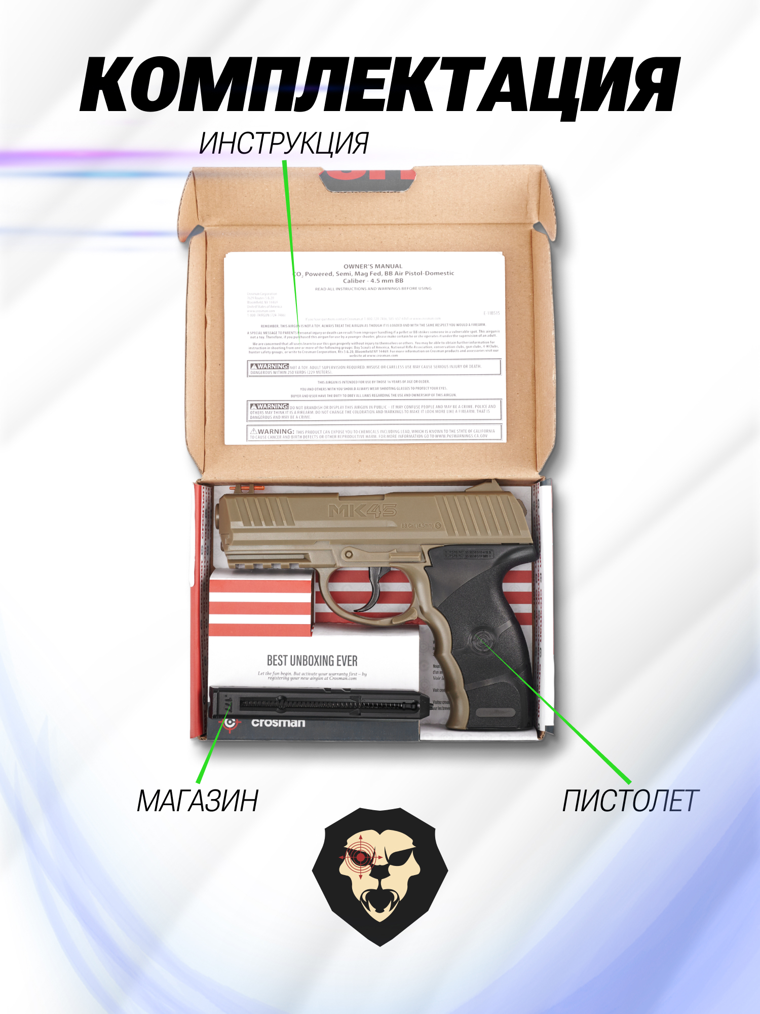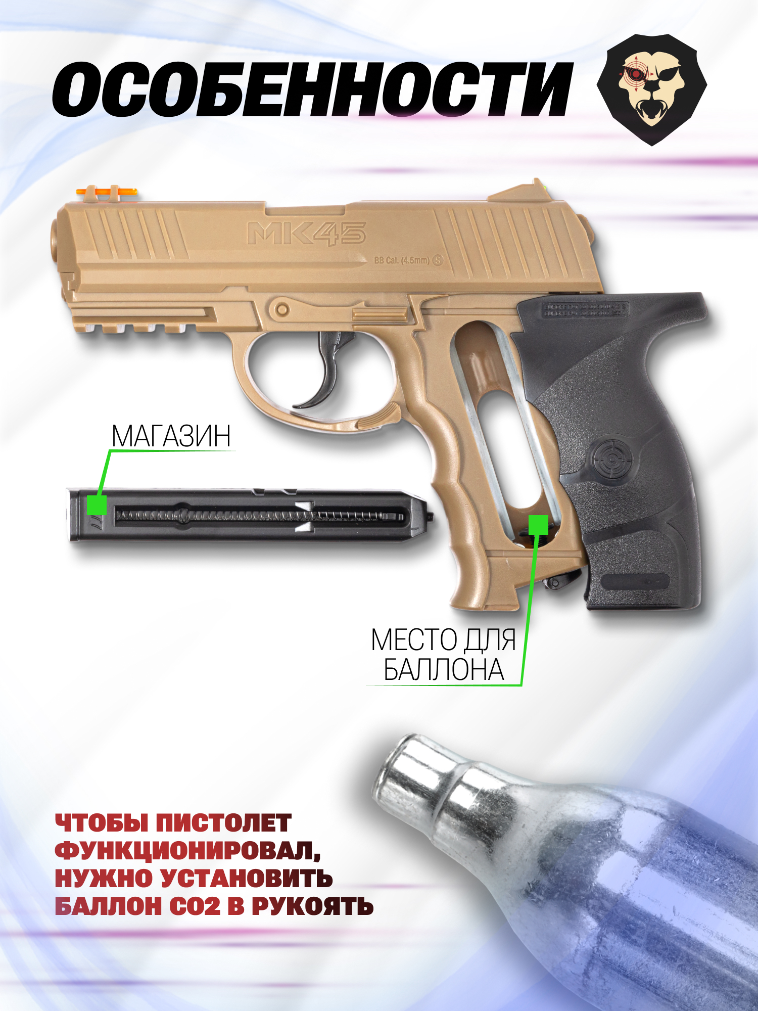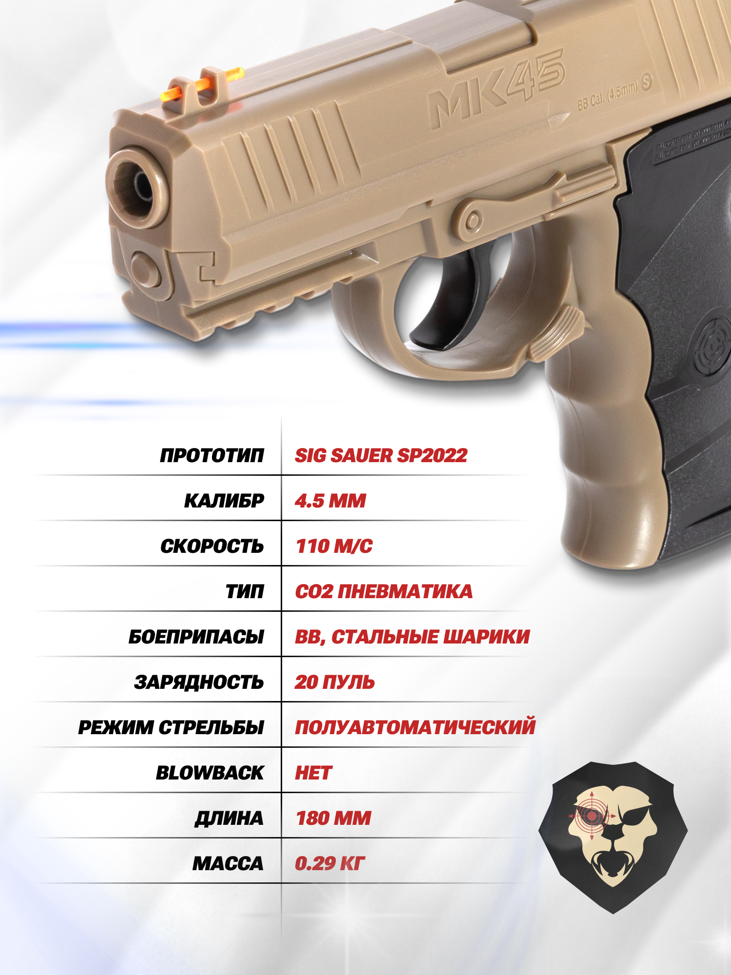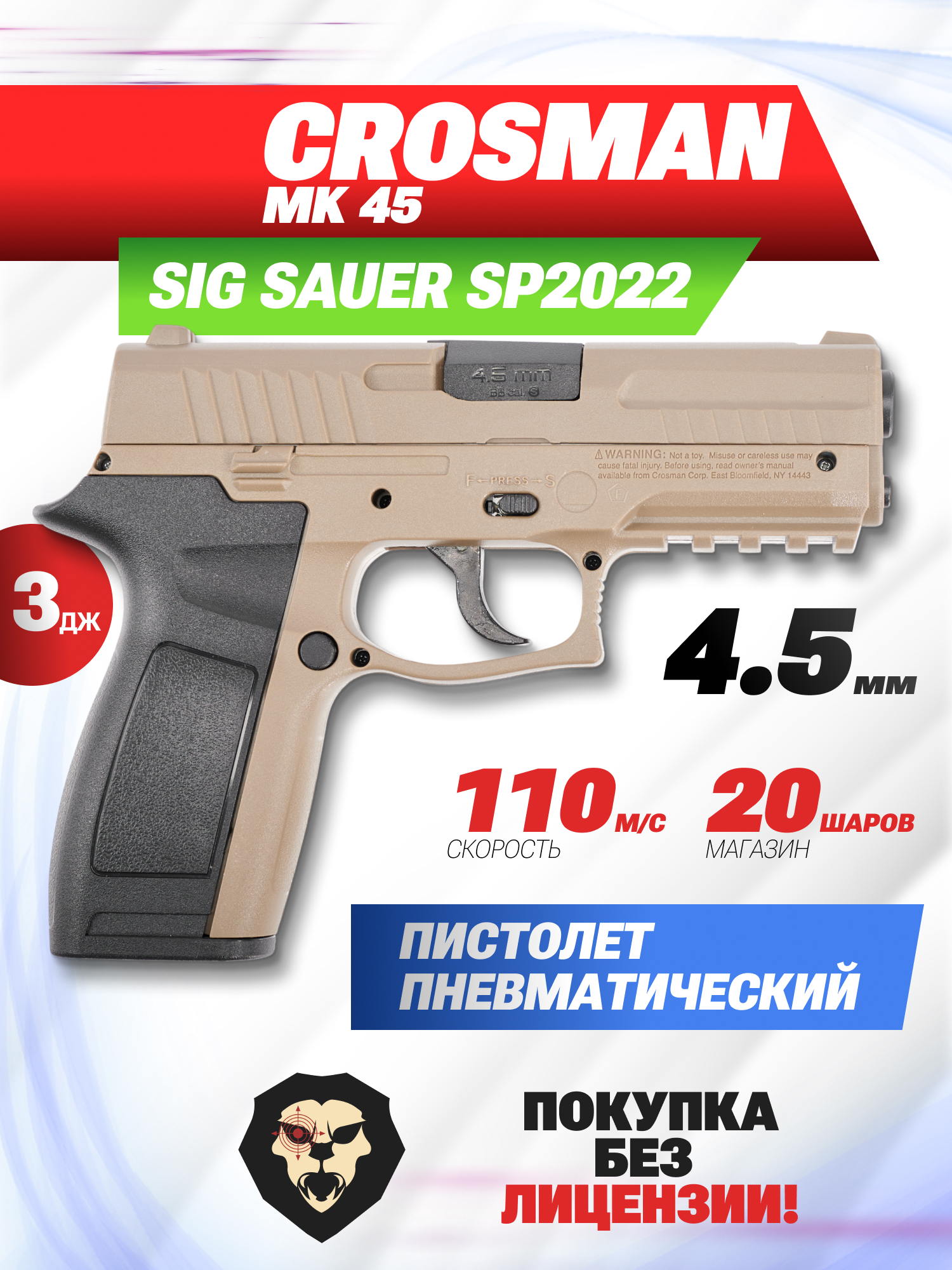 Информация о товаре "Пневматический пистолет Crosman MK 45 4.5 мм (песочный)" носит ознакомительный характер, и не является публичной офертой, определяемой положениями Статьи 437 Гражданского кодекса Российской Федерации, характеристики, внешний вид, цвет и комплектация могут быть изменены производителем без уведомления.