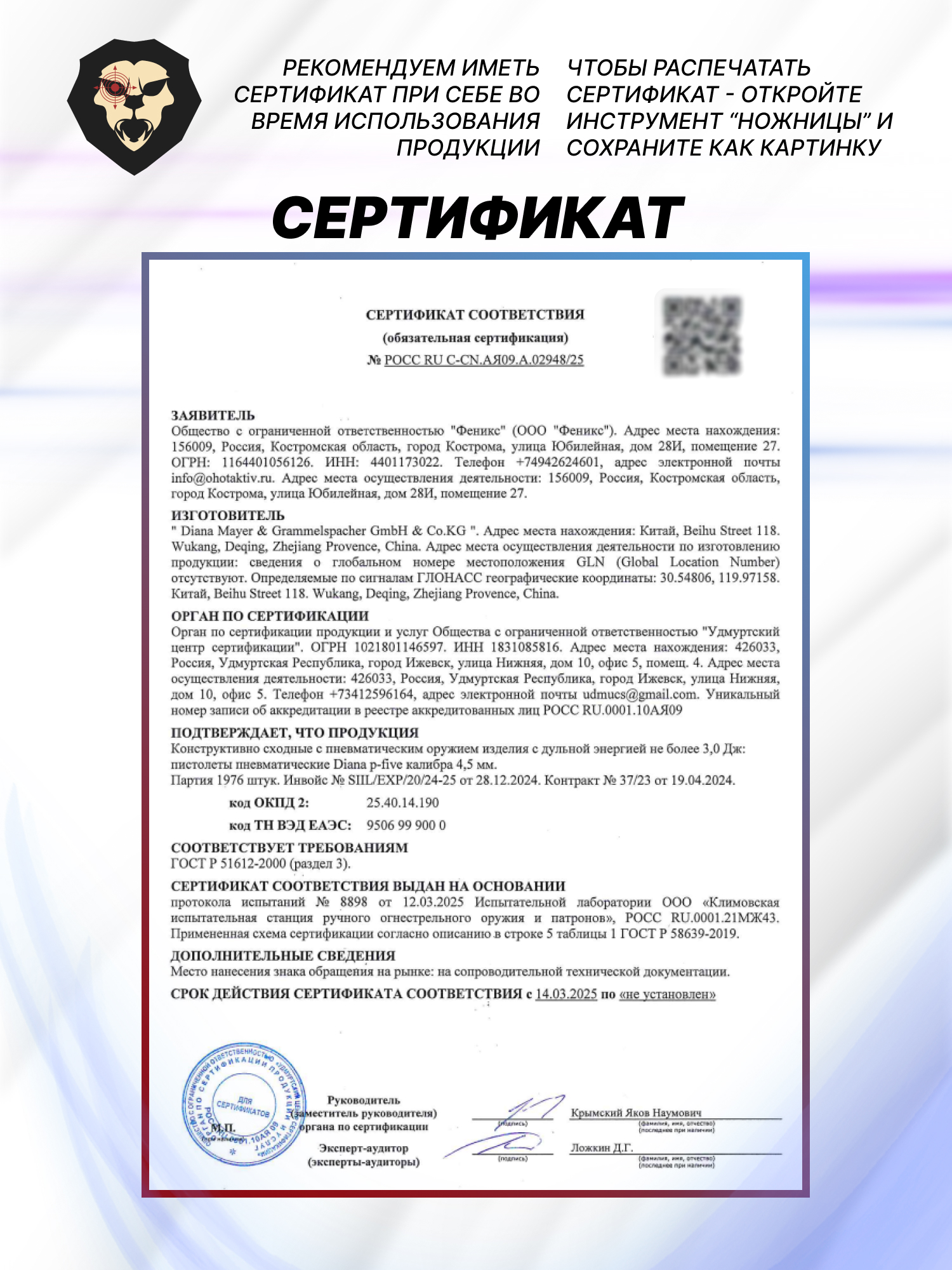 | Комплектация | Пистолет, упаковка, краткая документация, копия сертификата (по запросу покупателя) |