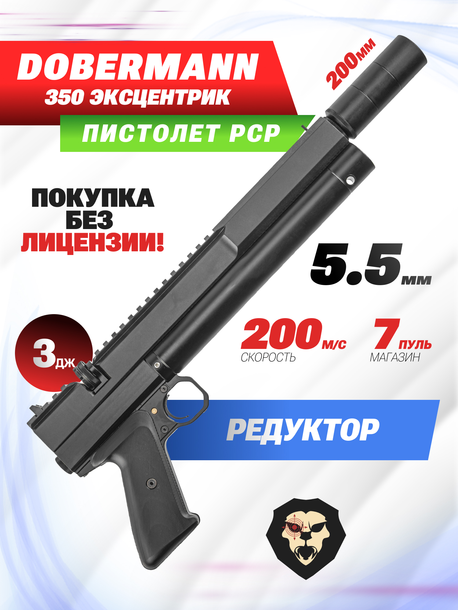 Пневматический пистолет Dobermann 350 Эксцентрик 5.5 мм (200 мм, редуктор) купить в интернет-магазине Popadiv10.
