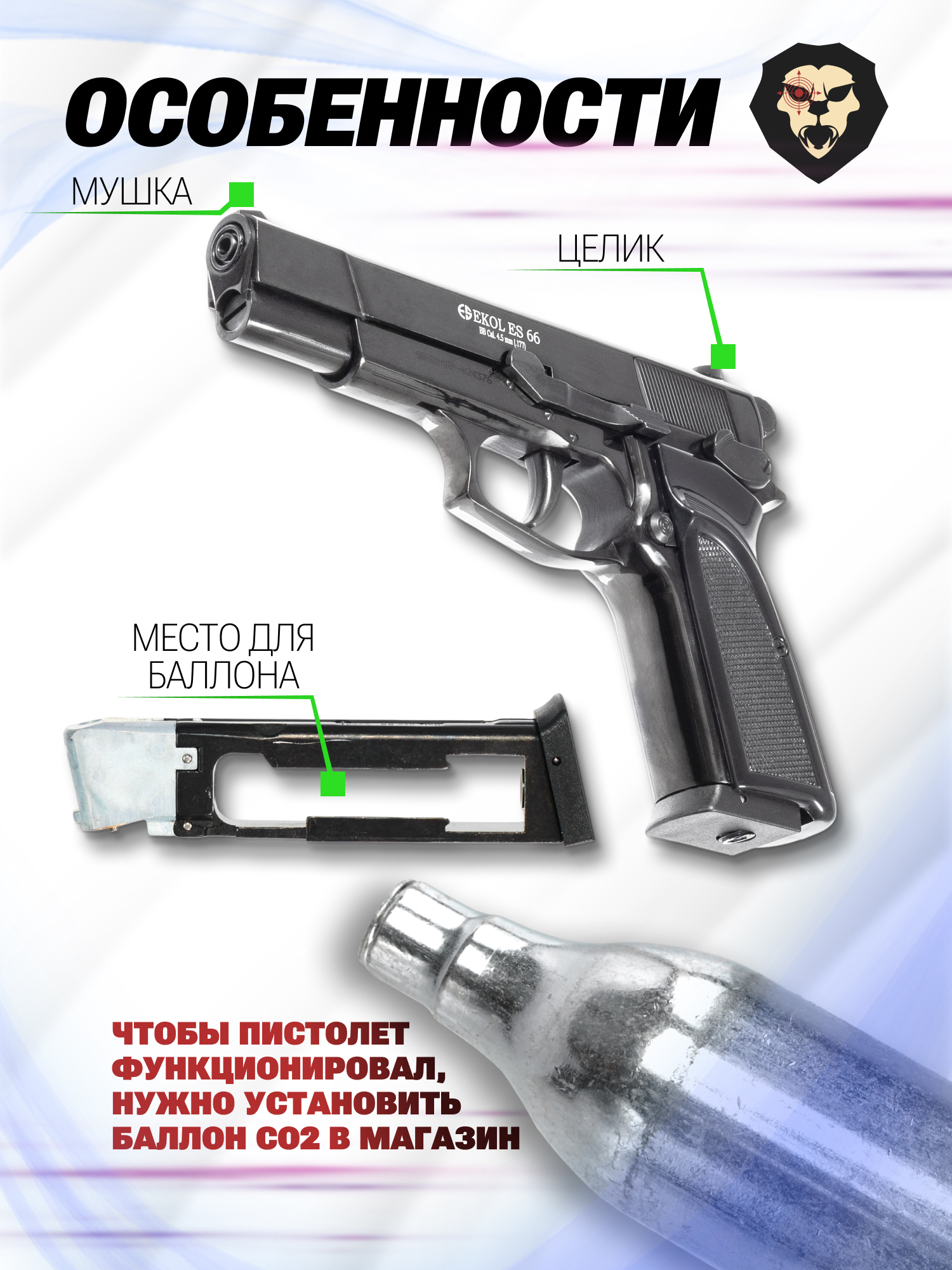Турецкая компания Экол специализируется на разработке и выпуске пневматического оружия различных типов для спортивной и развлекательной пулевой стрельбы и страйкбола. Пистолет Ekol ES 66 предназначен для тренировок, военно-спортивных игр и подобных мероприятий.