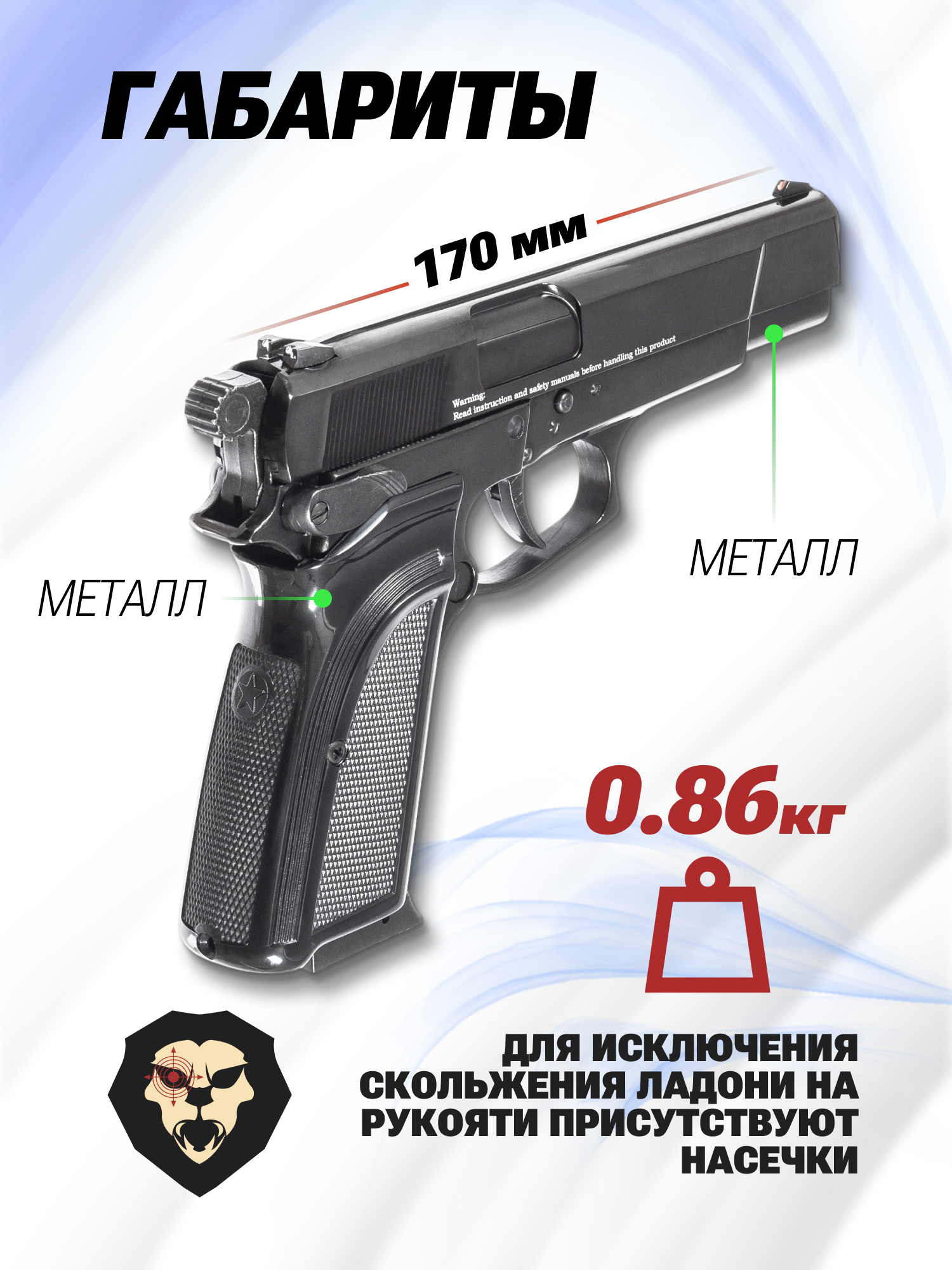 | Комплектация | Пистолет, упаковка, краткая документация, копия сертификата (по запросу покупателя) |