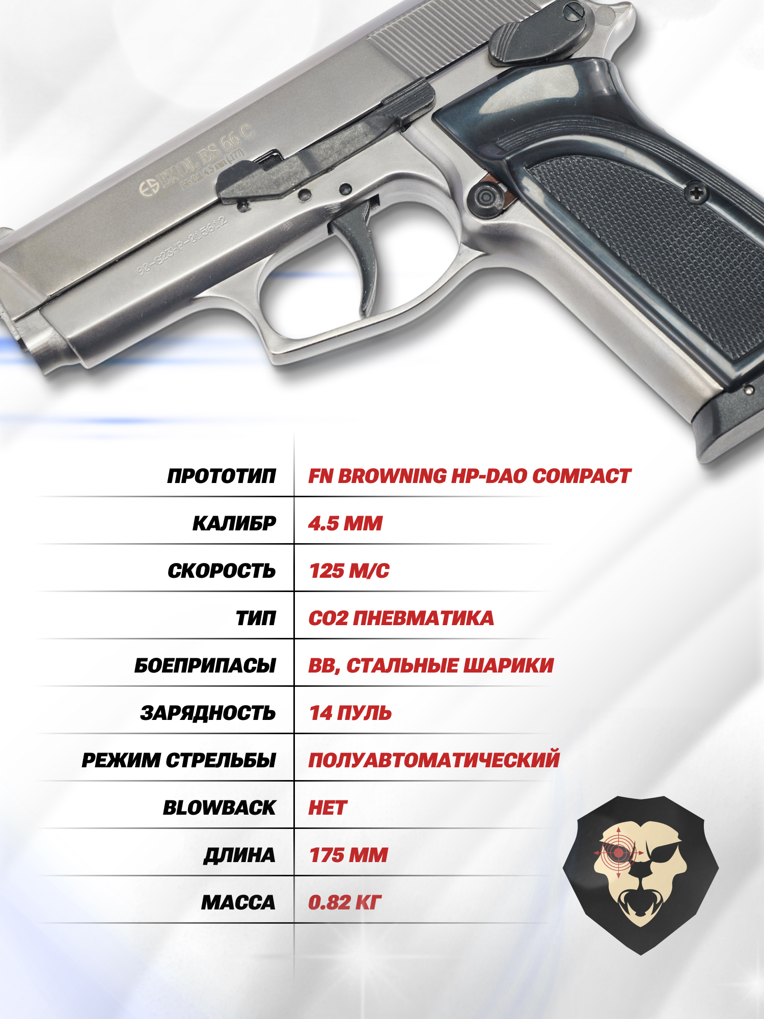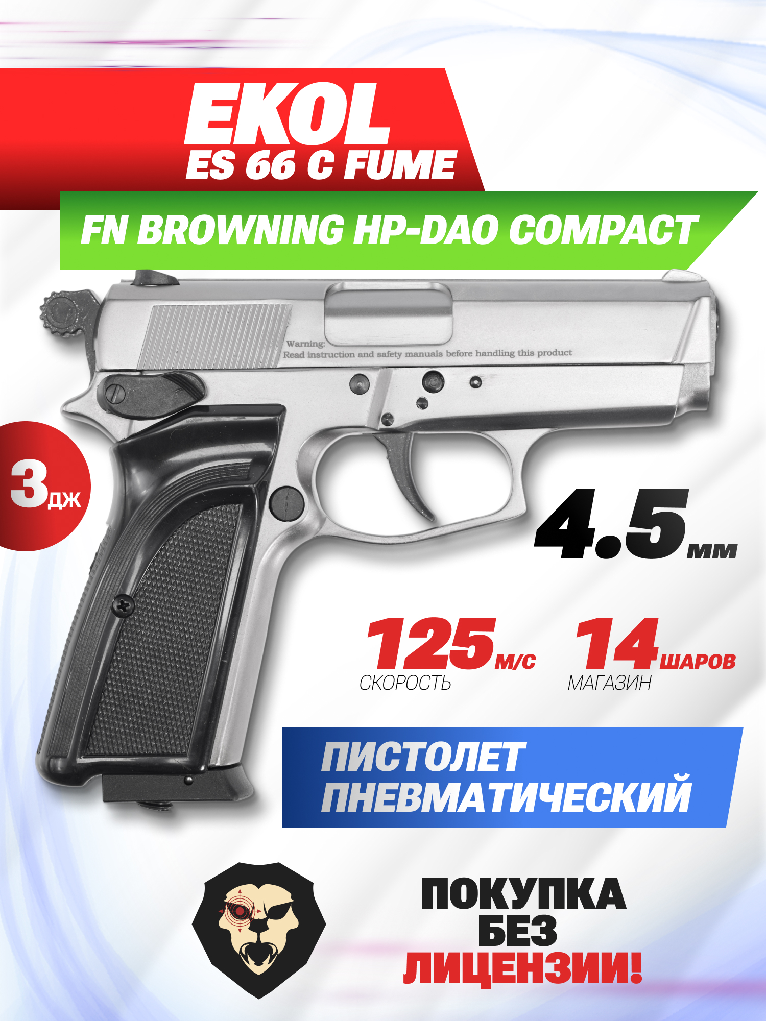 Пневматический пистолет Ekol ES 66 C Fume 4.5 мм (никель, ХП-ДАО Компакт) купить в интернет-магазине Popadiv10.