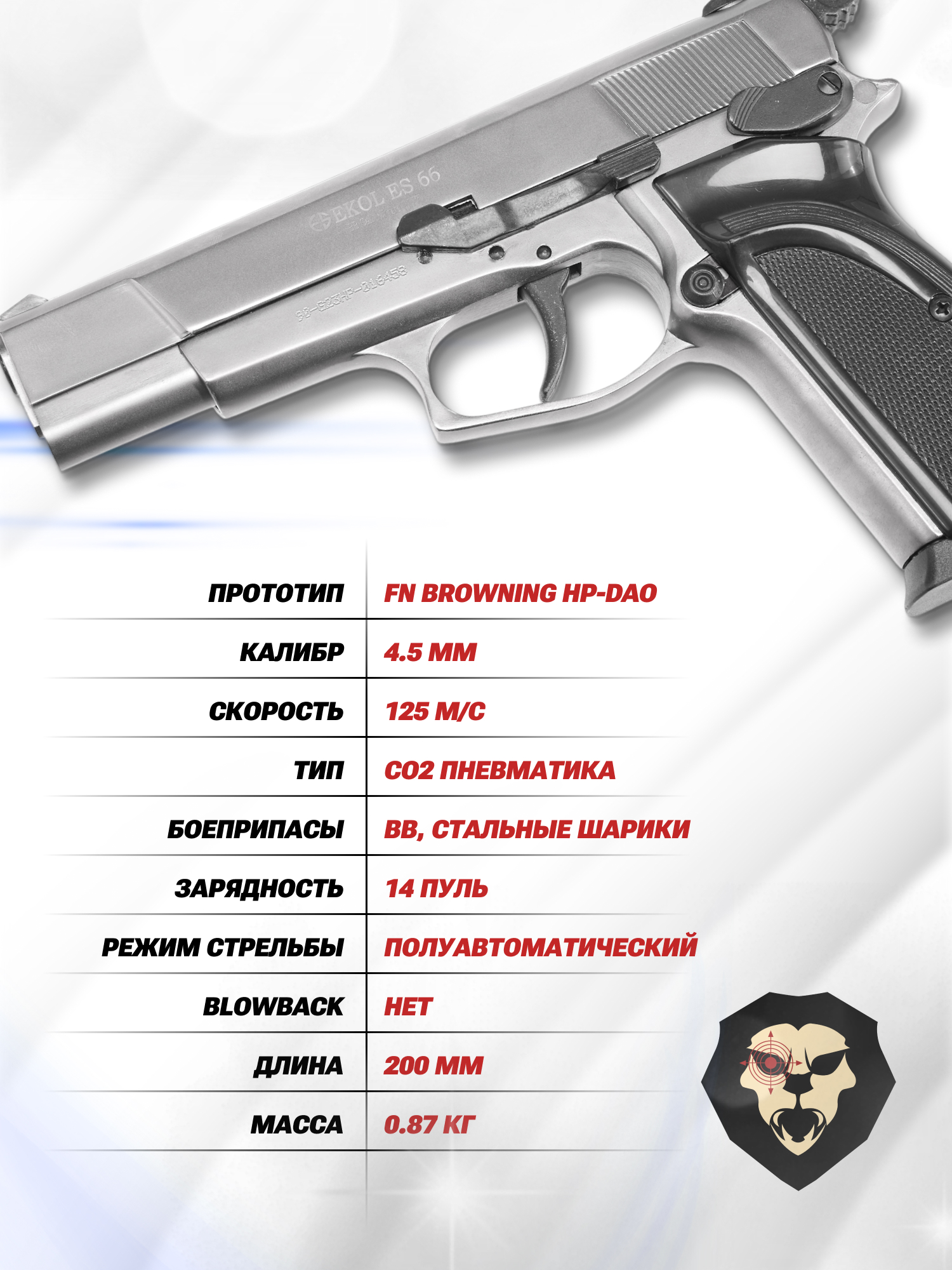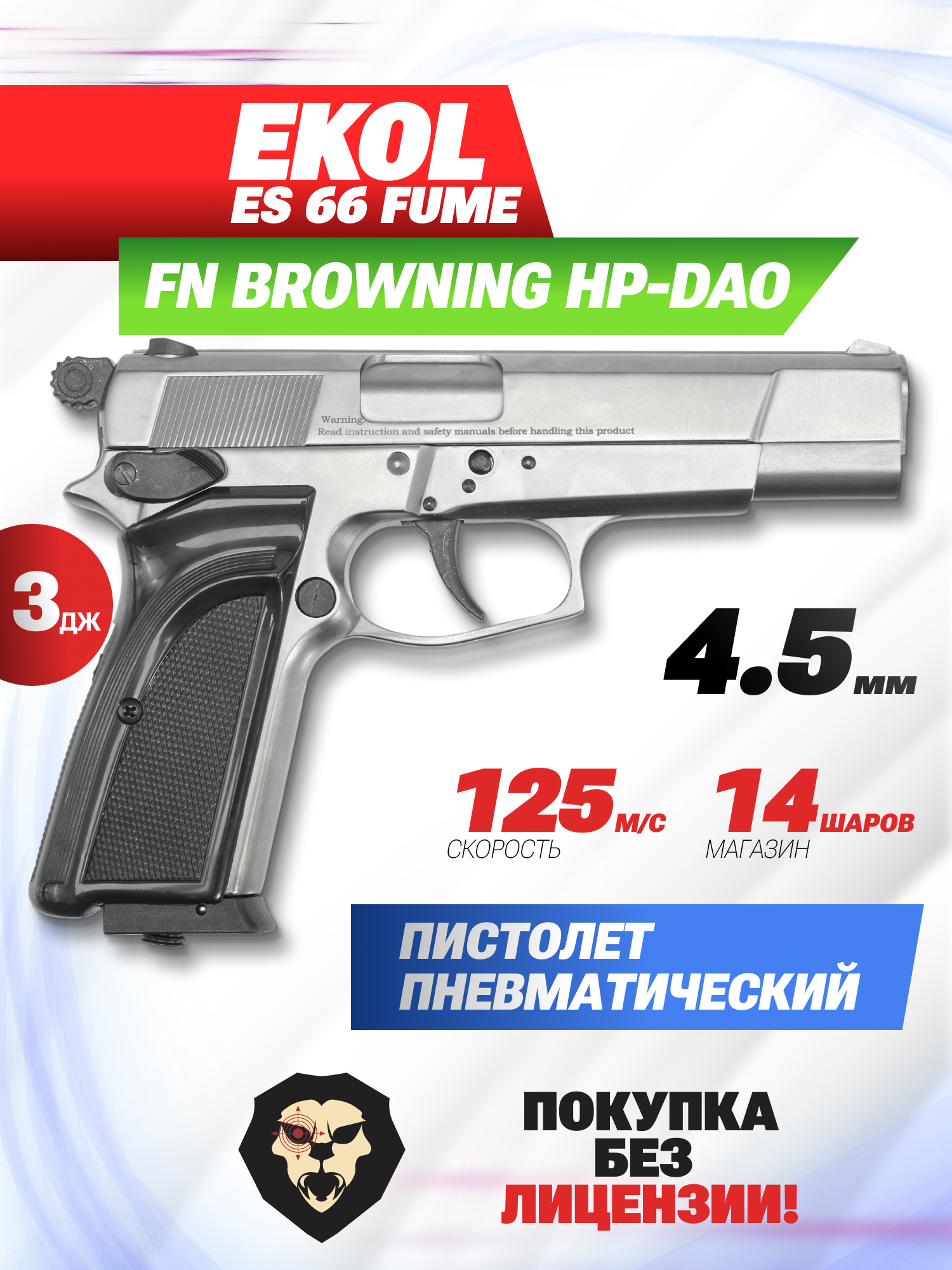 Пневматический пистолет Ekol ES 66 Fume 4.5 мм (FN HP-DAO, никель) купить в интернет-магазине Popadiv10.