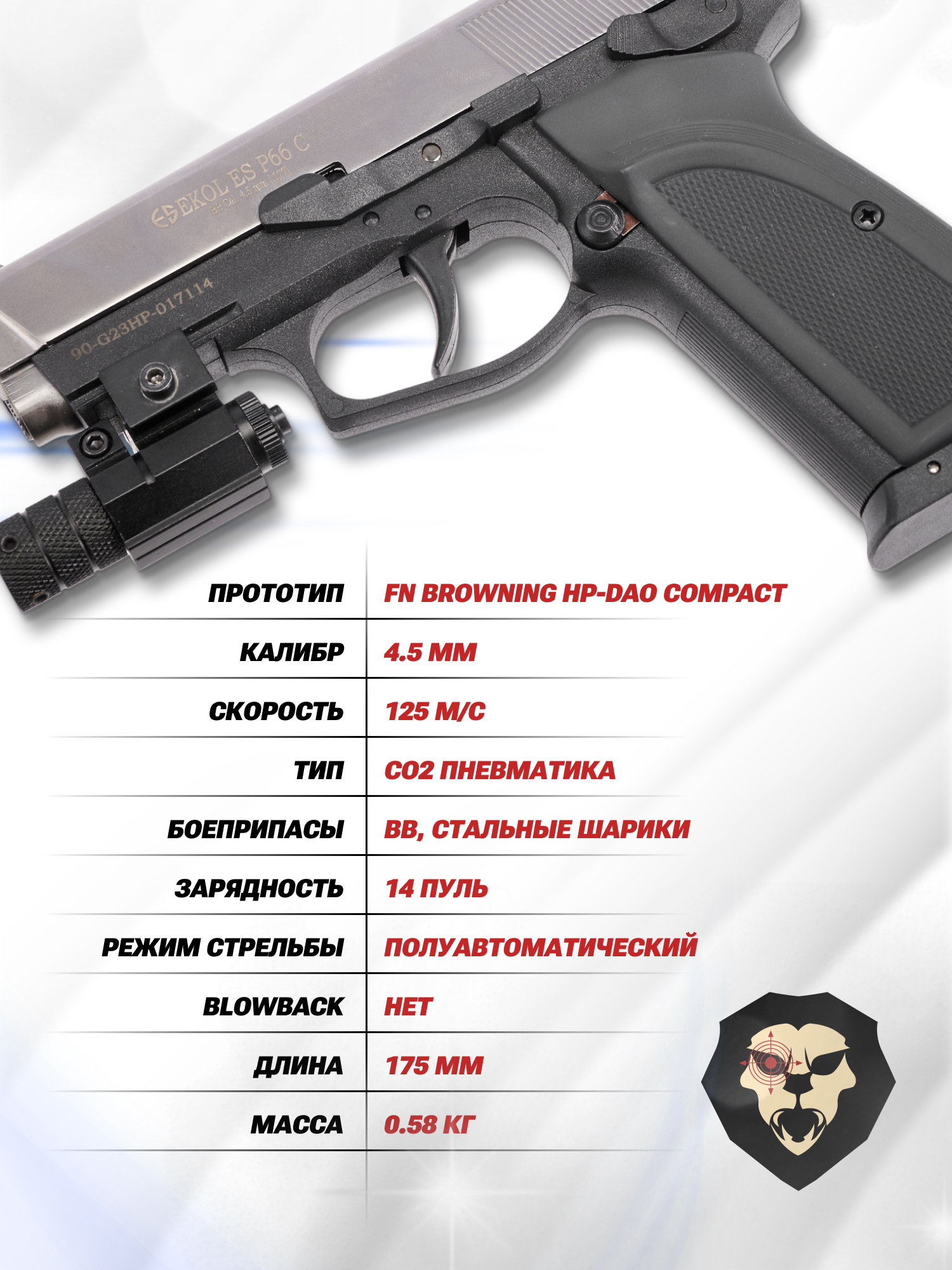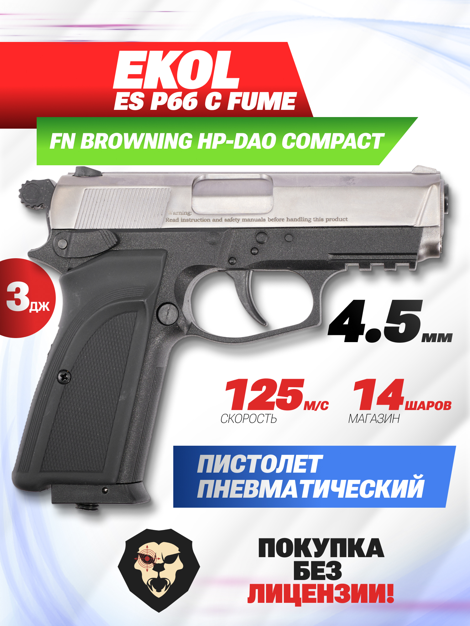 Пневматический пистолет Ekol ES P66 С Fume 4.5 мм (HP-DA Compact, никель) купить в интернет-магазине Popadiv10.