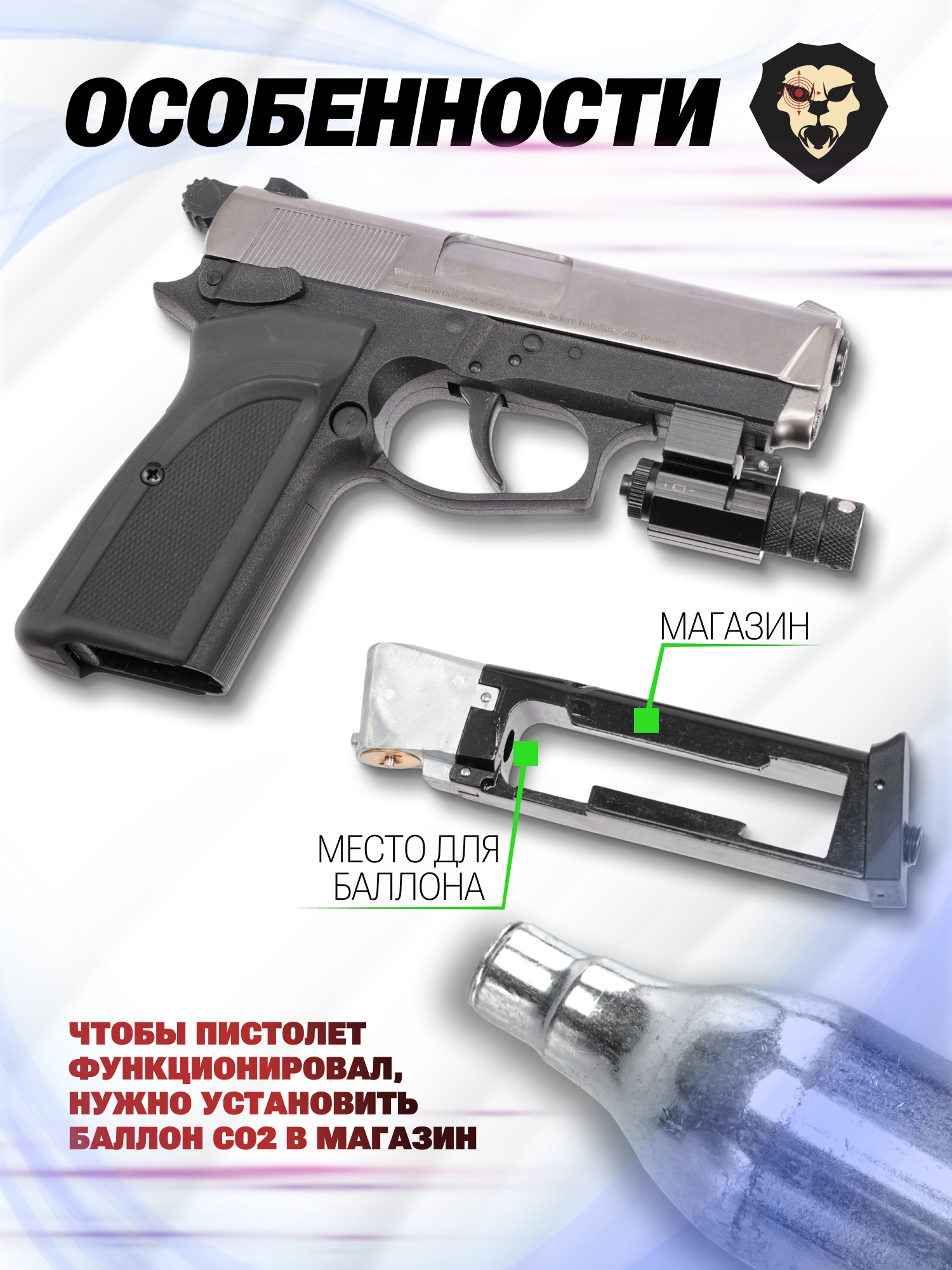 Изготовитель предостерегает от длительного хранения использованного баллончика с газом внутри пневматики, так как это может привести к деформации уплотнителей. Для наведения на мишень предусмотрены открытые нерегулируемые приспособления в виде мушки и целика. Кроме прочего, пользователь способен оснастить пистолет лазерным или осветительным тактическим оборудованием, совместимым с планкой Weaver 22 мм.