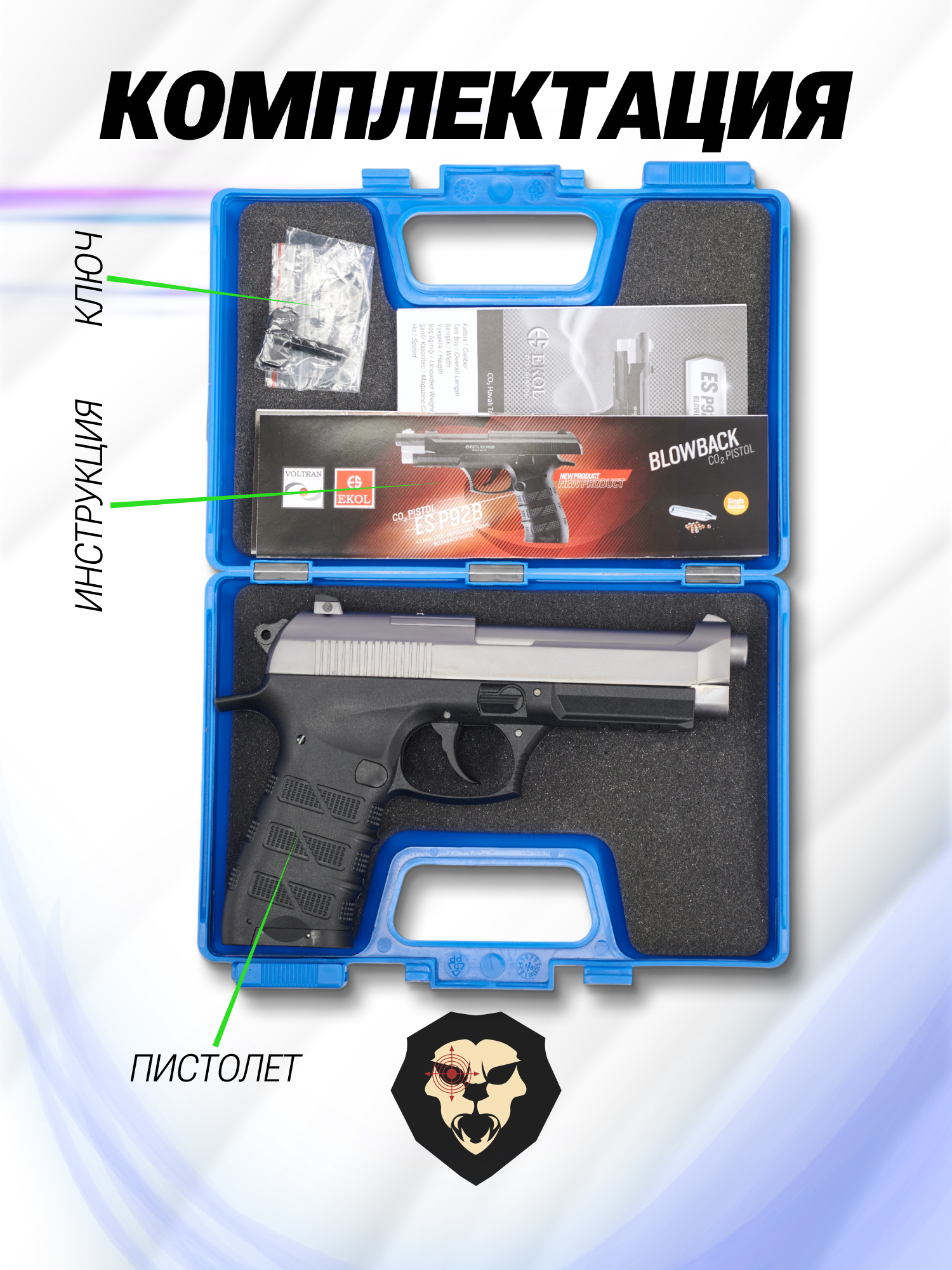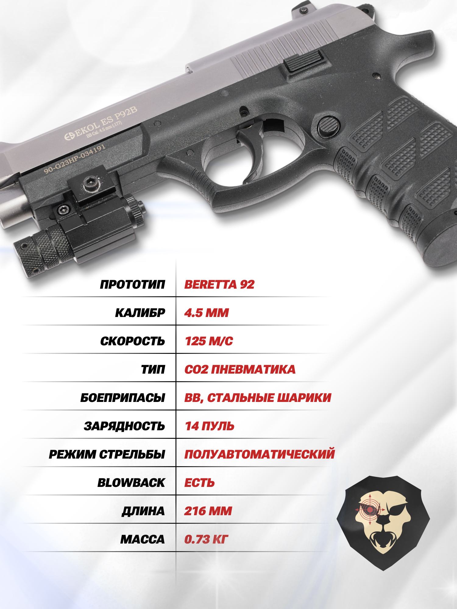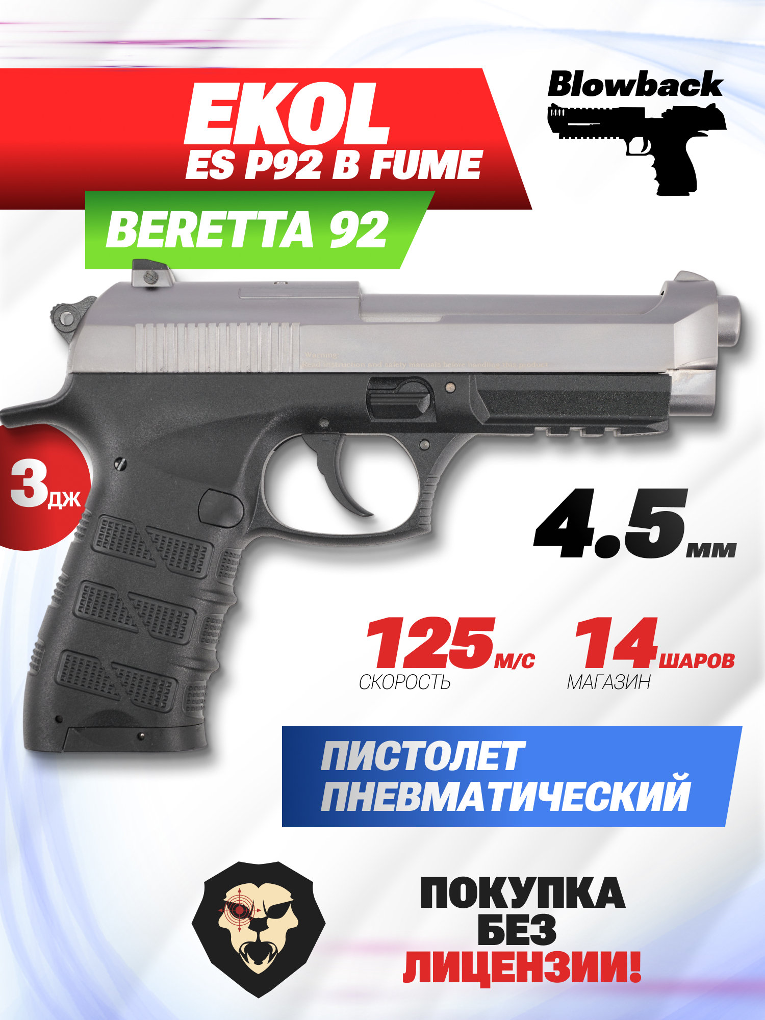 Пневматический пистолет Ekol ES P92 B Fume 4.5 мм (никель, Blowback, Беретта) купить в интернет-магазине Popadiv10.