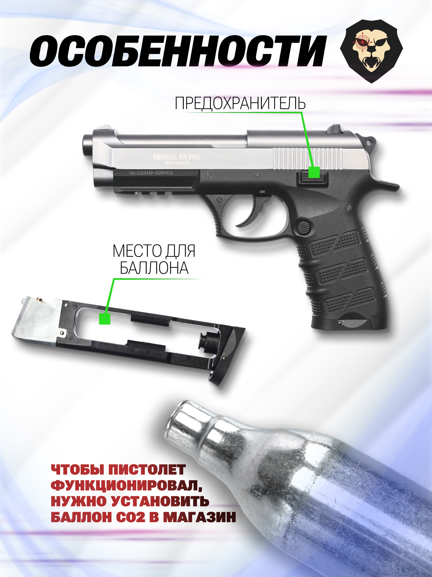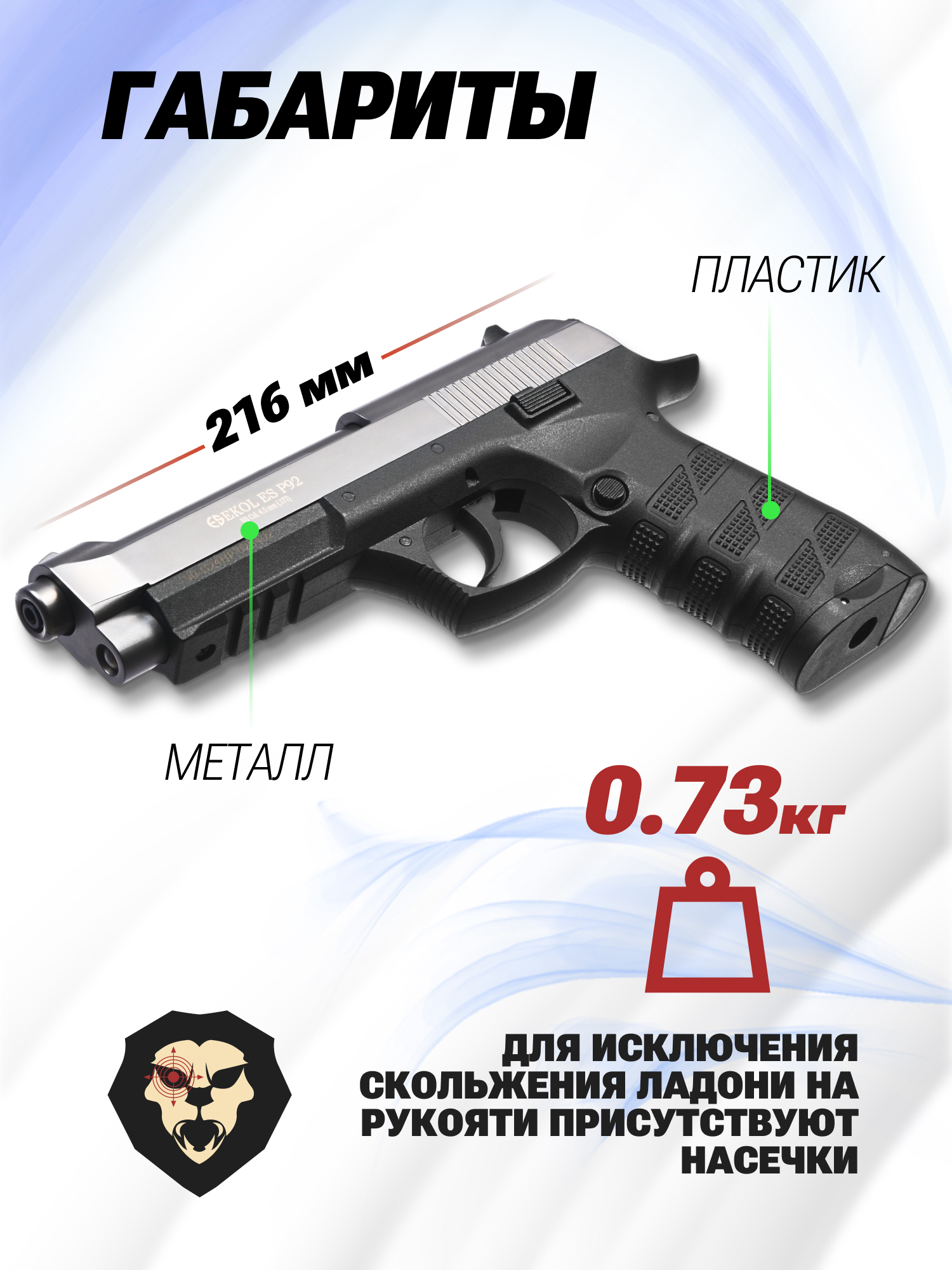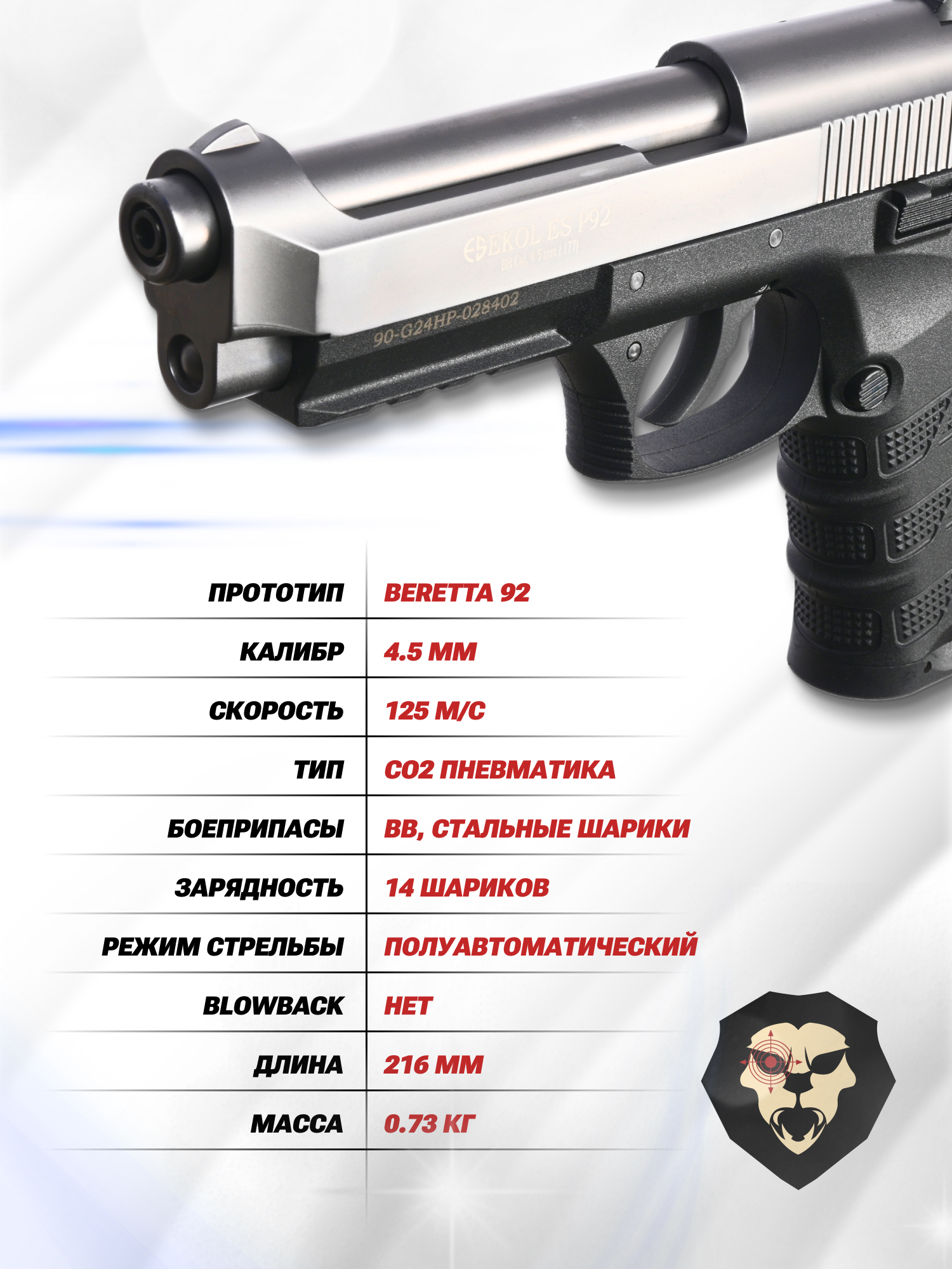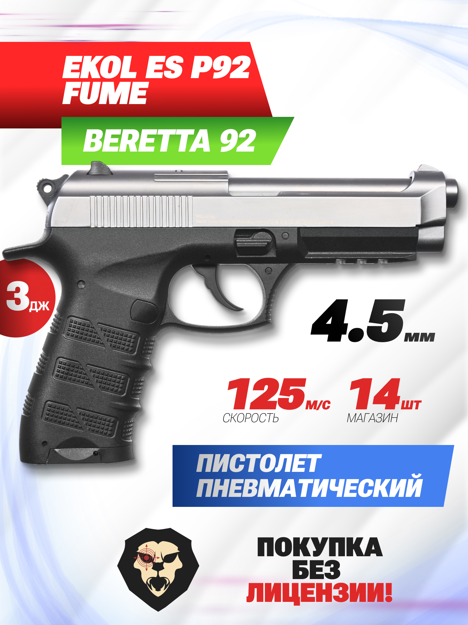 Пневматический пистолет Ekol ES P92 Fume 4.5 мм (никель, Beretta 92) купить в интернет-магазине Popadiv10.