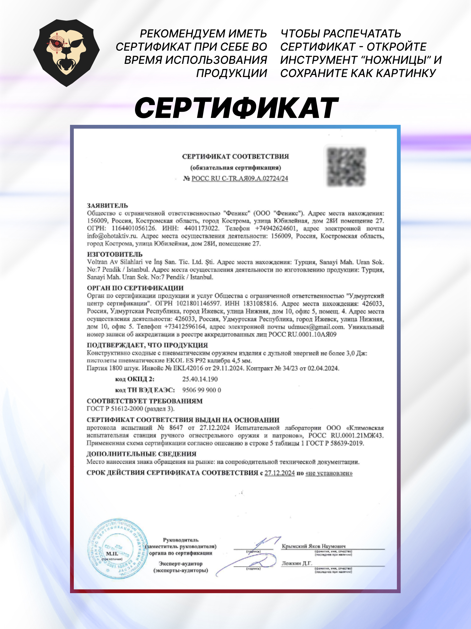 Развлекательная стрельба по мишеням или плинкинг с использованием пневматики - популярное хобби, для занятия которым не обязательно оформлять какие-либо разрешительные документы. Многие модели пистолетов и винтовок, использующих энергию воздуха для метания снаряда, попадают в категорию КСОИ и не требуют наличия лицензии для покупки. К подобным экземплярам относится турецкая модель Ekol ES P92 Fume.