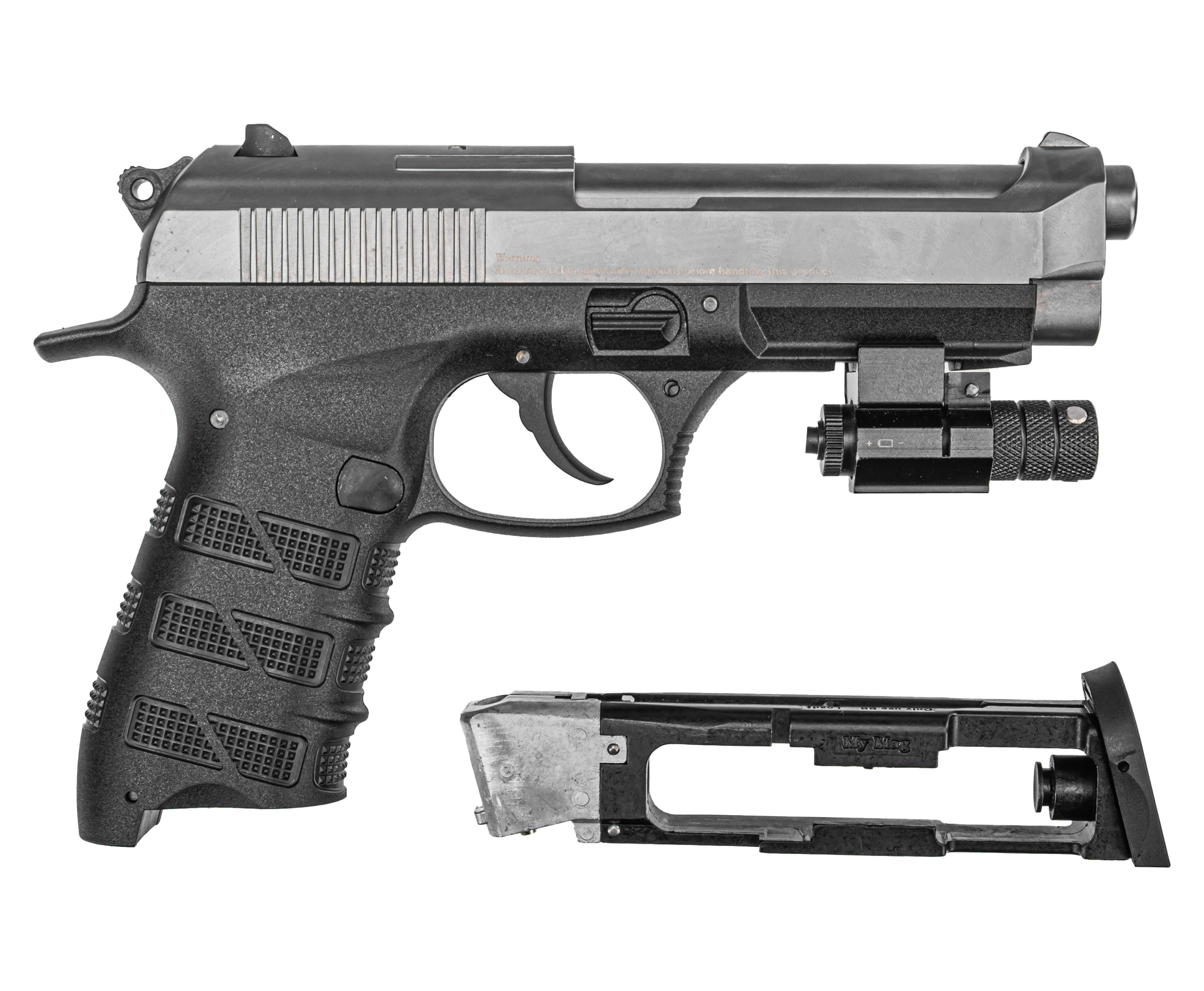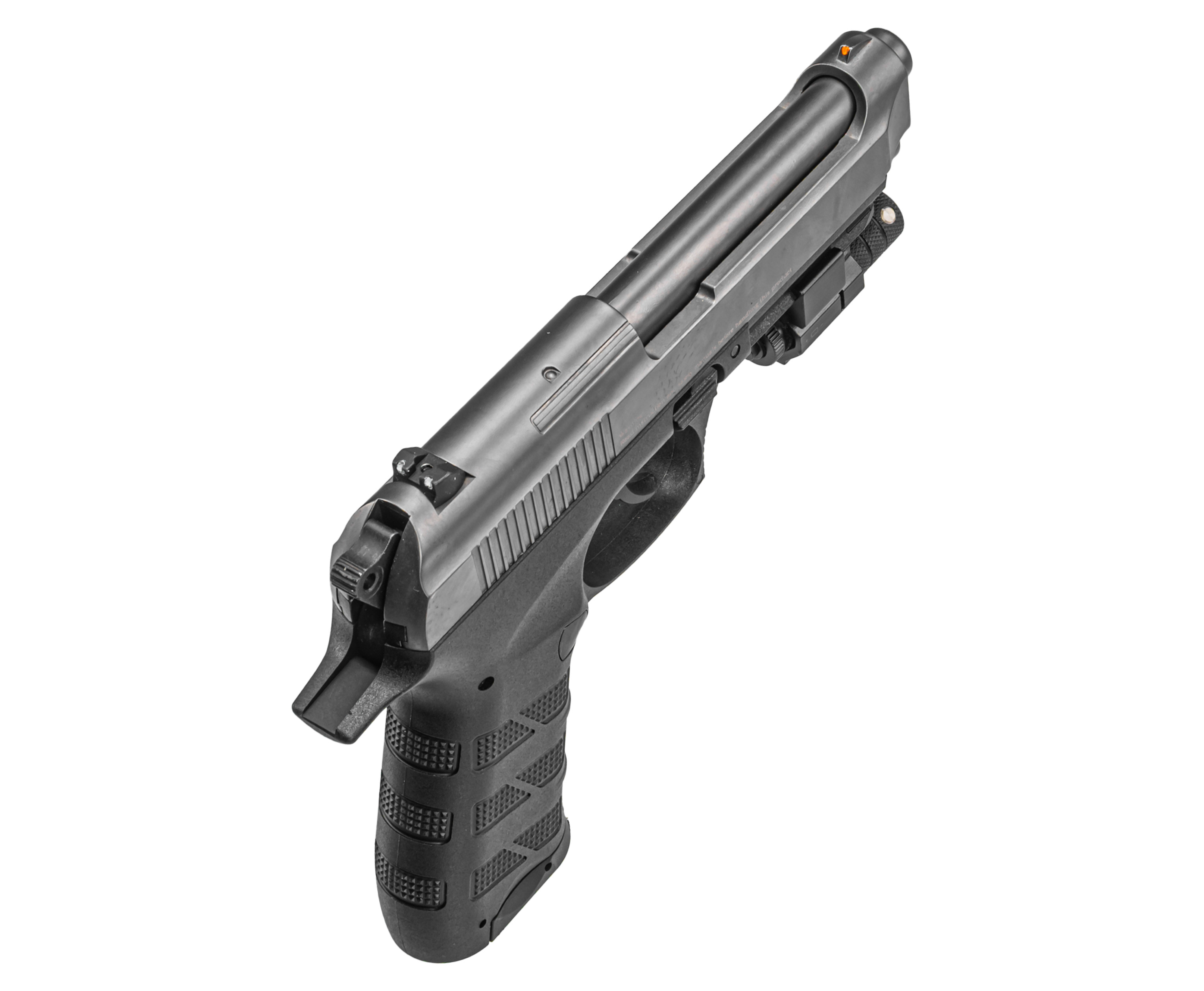 Турецкая пневматическая версия этого пистолета в точности передает габариты оригинала - длина изделия составляет 21.6 см. Изготавливается модель полностью из металлического сплава, при этом рама окрашивается в черный цвет, а затвор имеет никелированное серебристое покрытие. Помимо эстетической функции, обработка деталей позволяет защитить поверхность от проявления коррозии при эксплуатации во влажных полевых условиях.