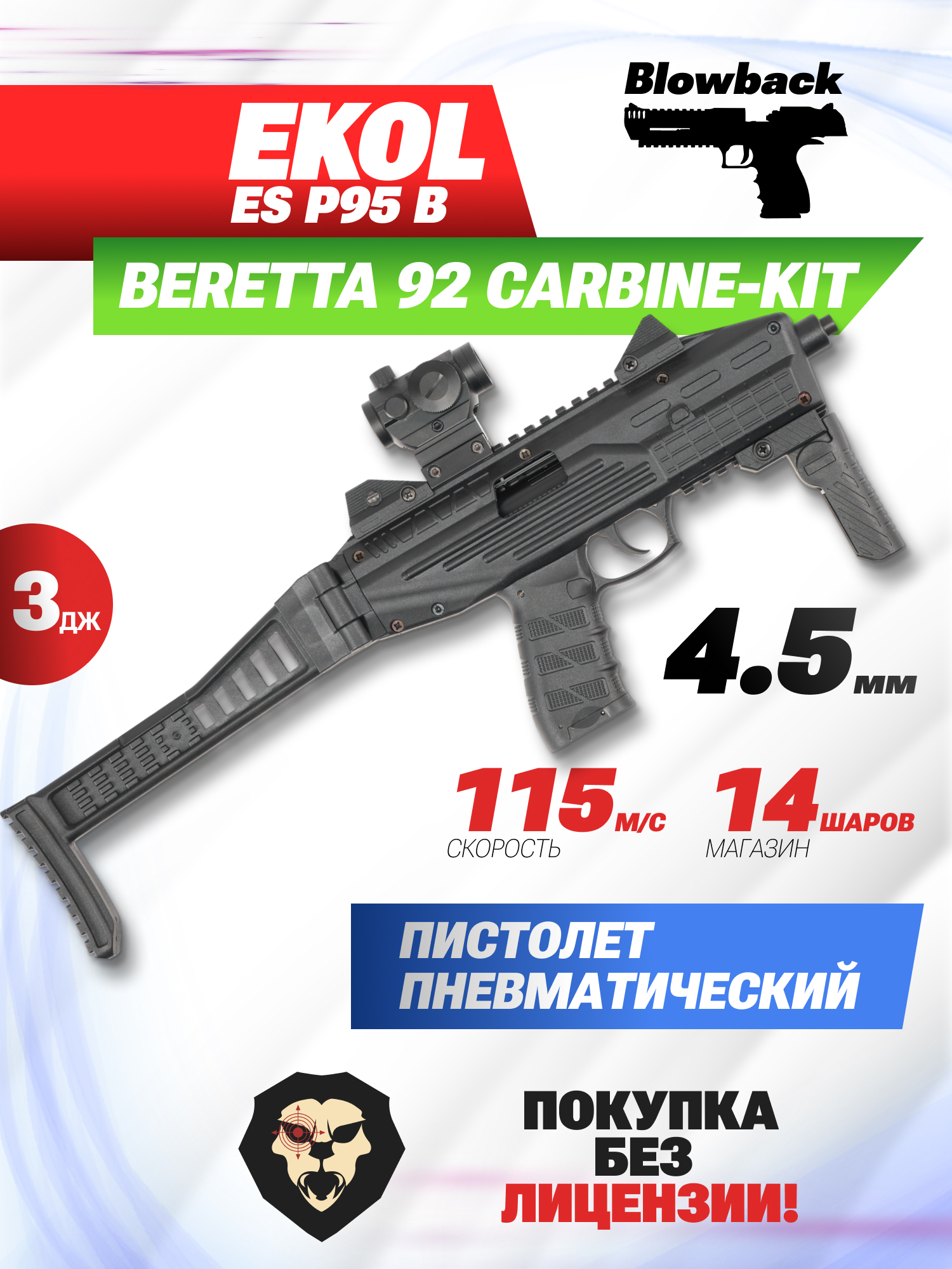 Пневматический пистолет Ekol ES P95 B 4.5 мм (карабин Беретта, черный) купить в интернет-магазине Popadiv10.
