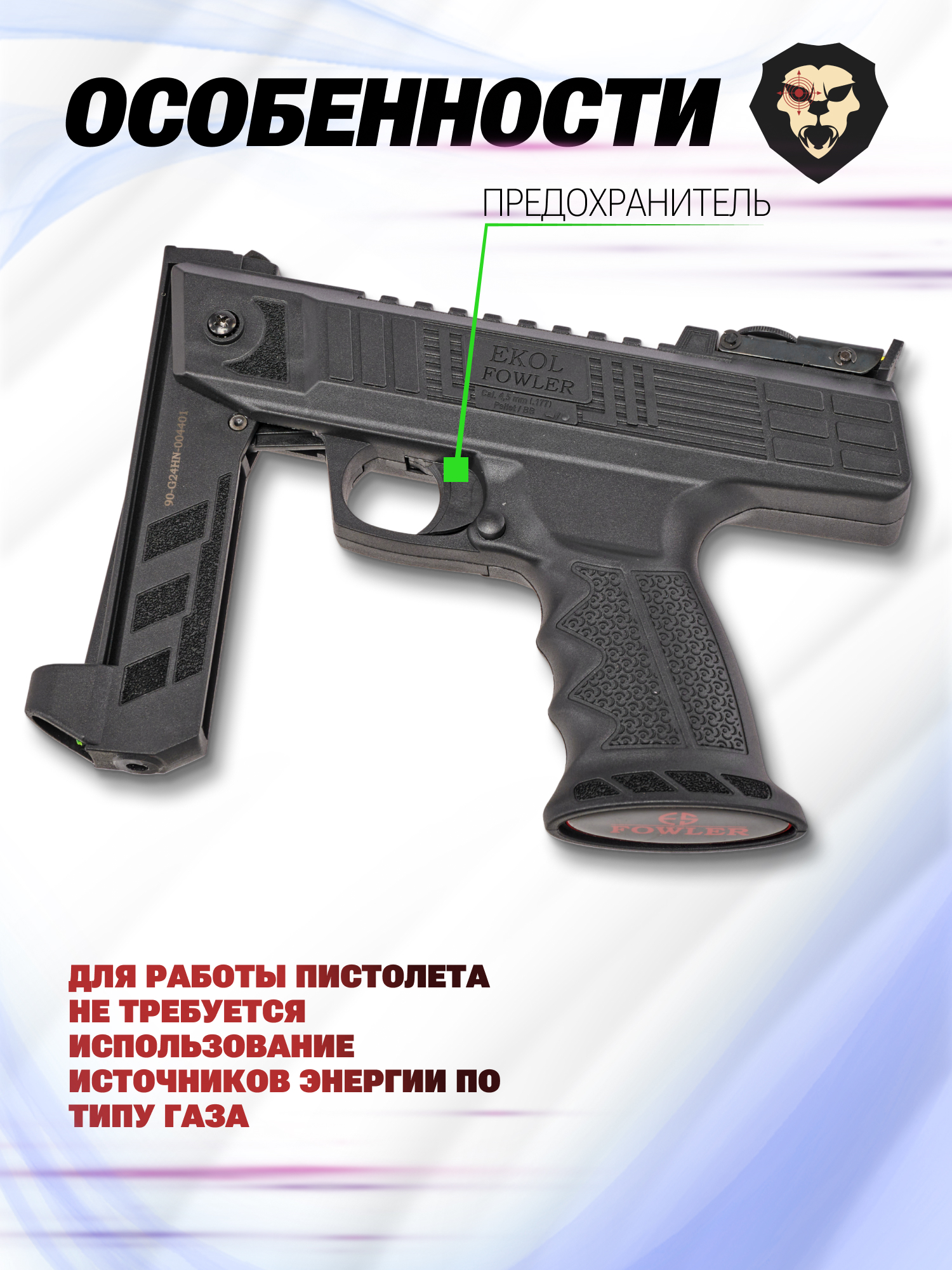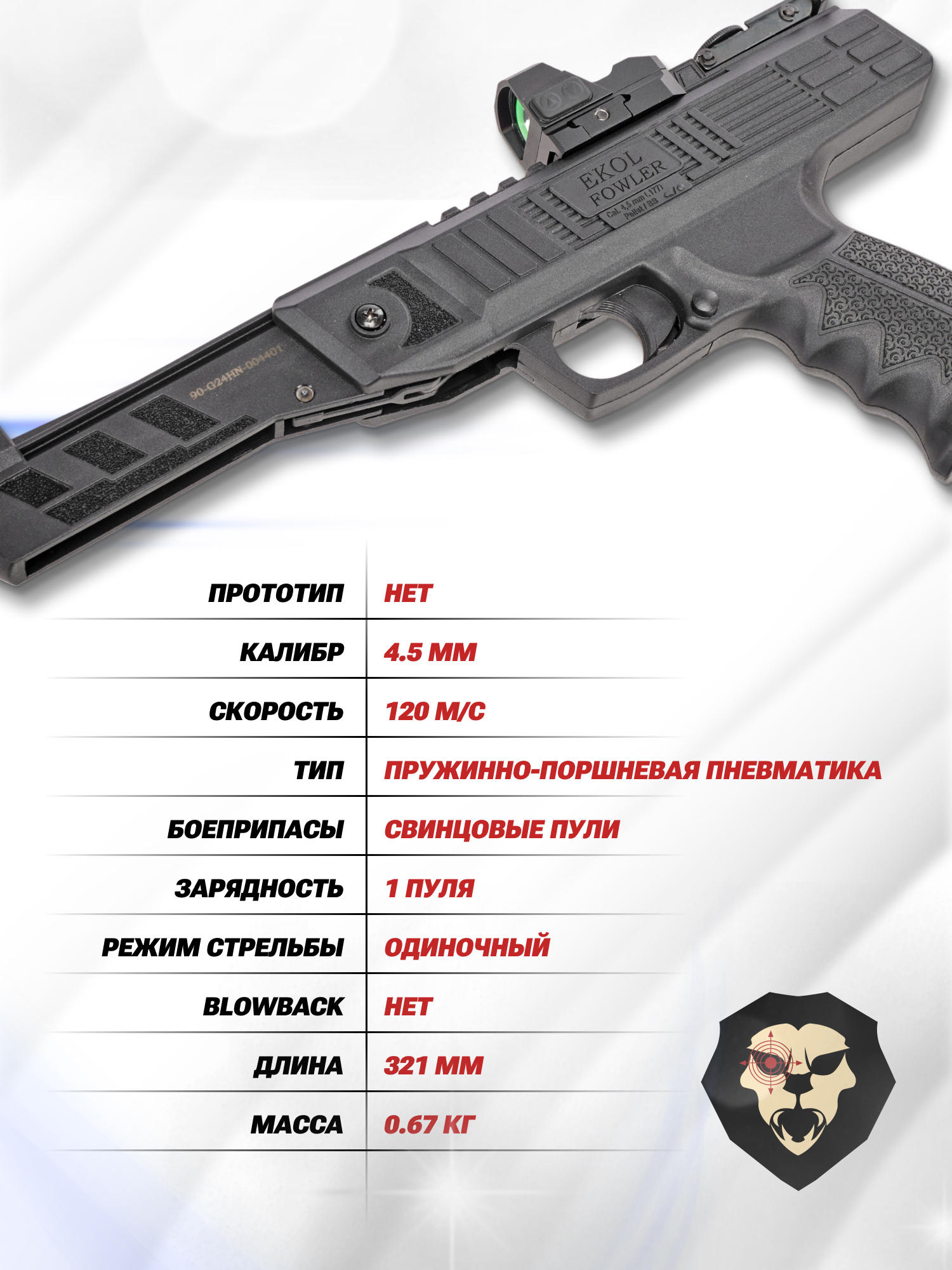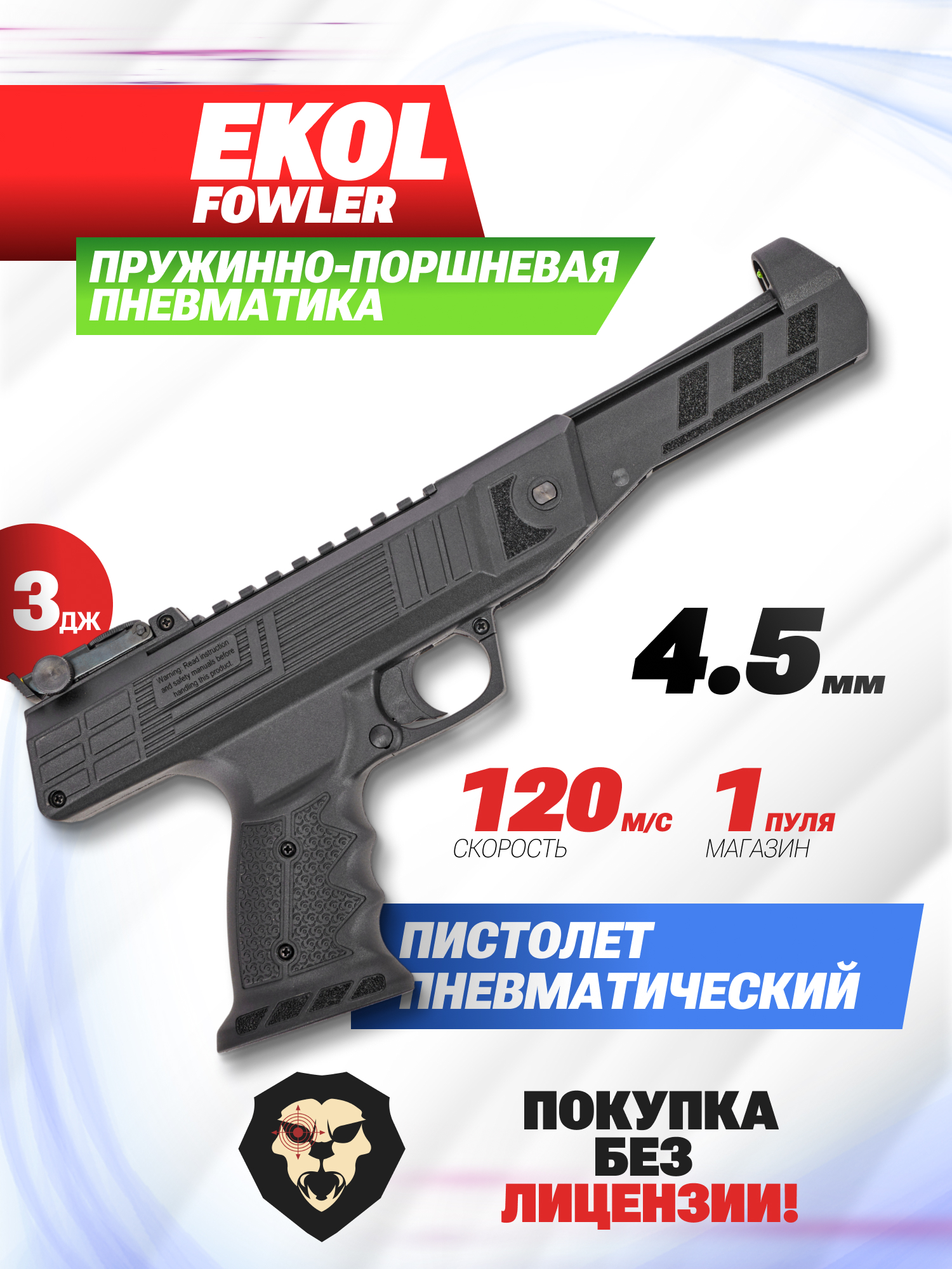 Информация о товаре "Пневматический пистолет Ekol Fowler 4.5 мм (3 дж)" носит ознакомительный характер, и не является публичной офертой, определяемой положениями Статьи 437 Гражданского кодекса Российской Федерации, характеристики, внешний вид, цвет и комплектация могут быть изменены производителем без уведомления.