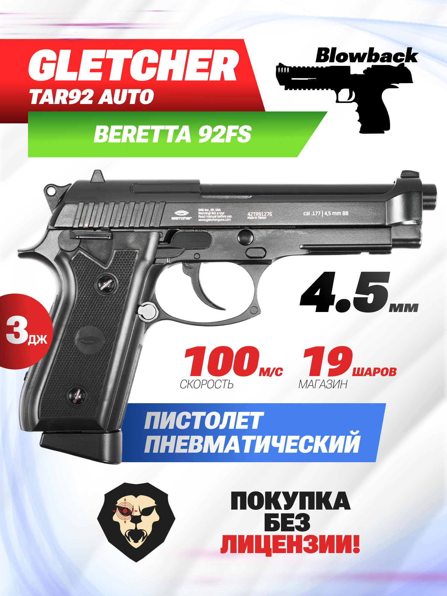 Артикул производителя Пневматический пистолет Gletcher TAR 92 Auto 4.5 мм (Beretta 92FS) по низкой цене 24990 руб. Модель со штрихкодом производителя Вы можете оплатить наложенным платежем с доставкой или в отделении транспортной компании (ПЭК, СДЭК, Boxberry). Ваш заказ со штрихкодом 2000000033174 забрать на почте с оплатой при получении в любой части Российской Федерации.