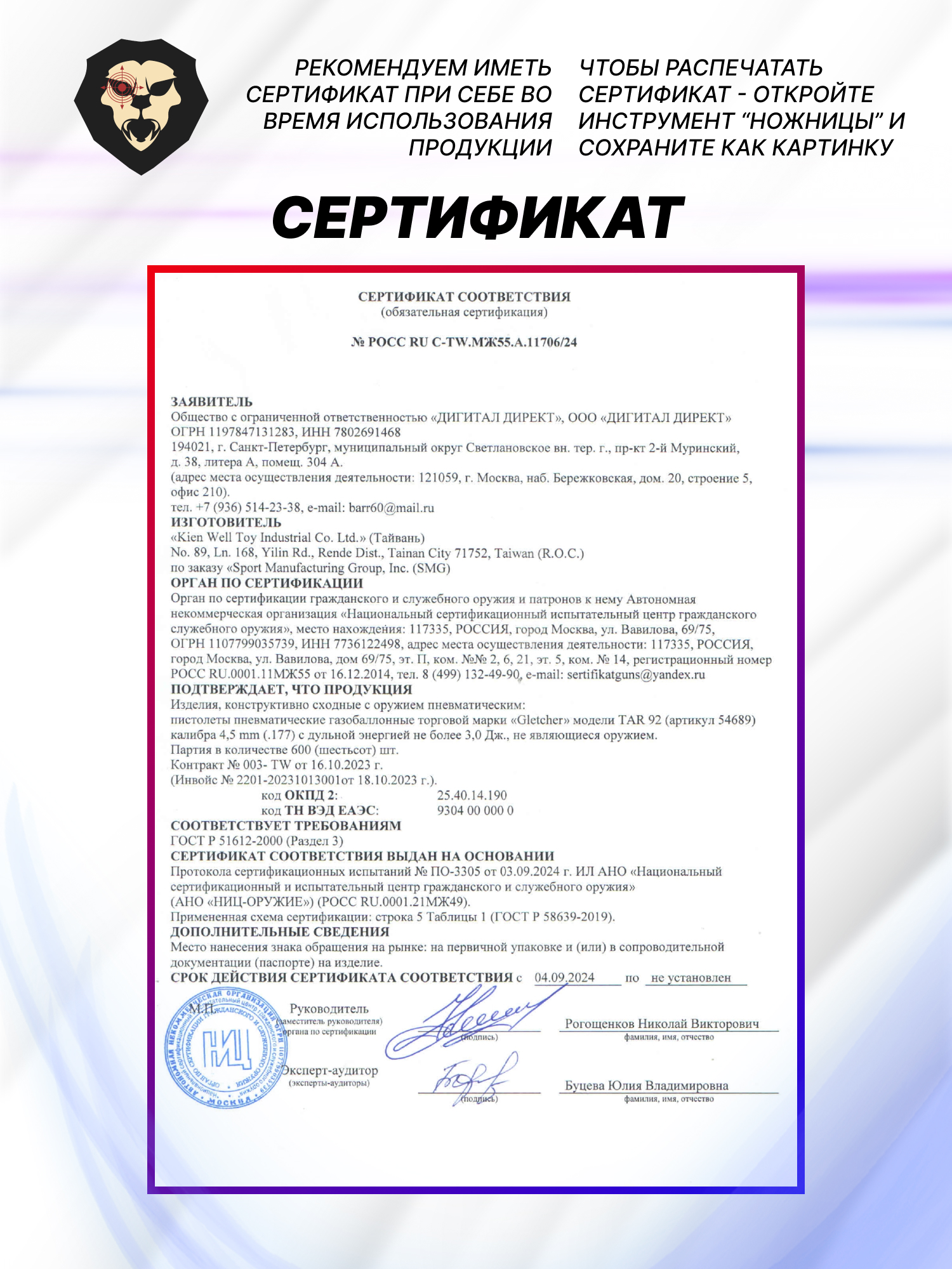 | Комплектация | Пистолет, магазин, шестигранник, упаковка, краткая документация, копия сертификата (по запросу покупателя) |