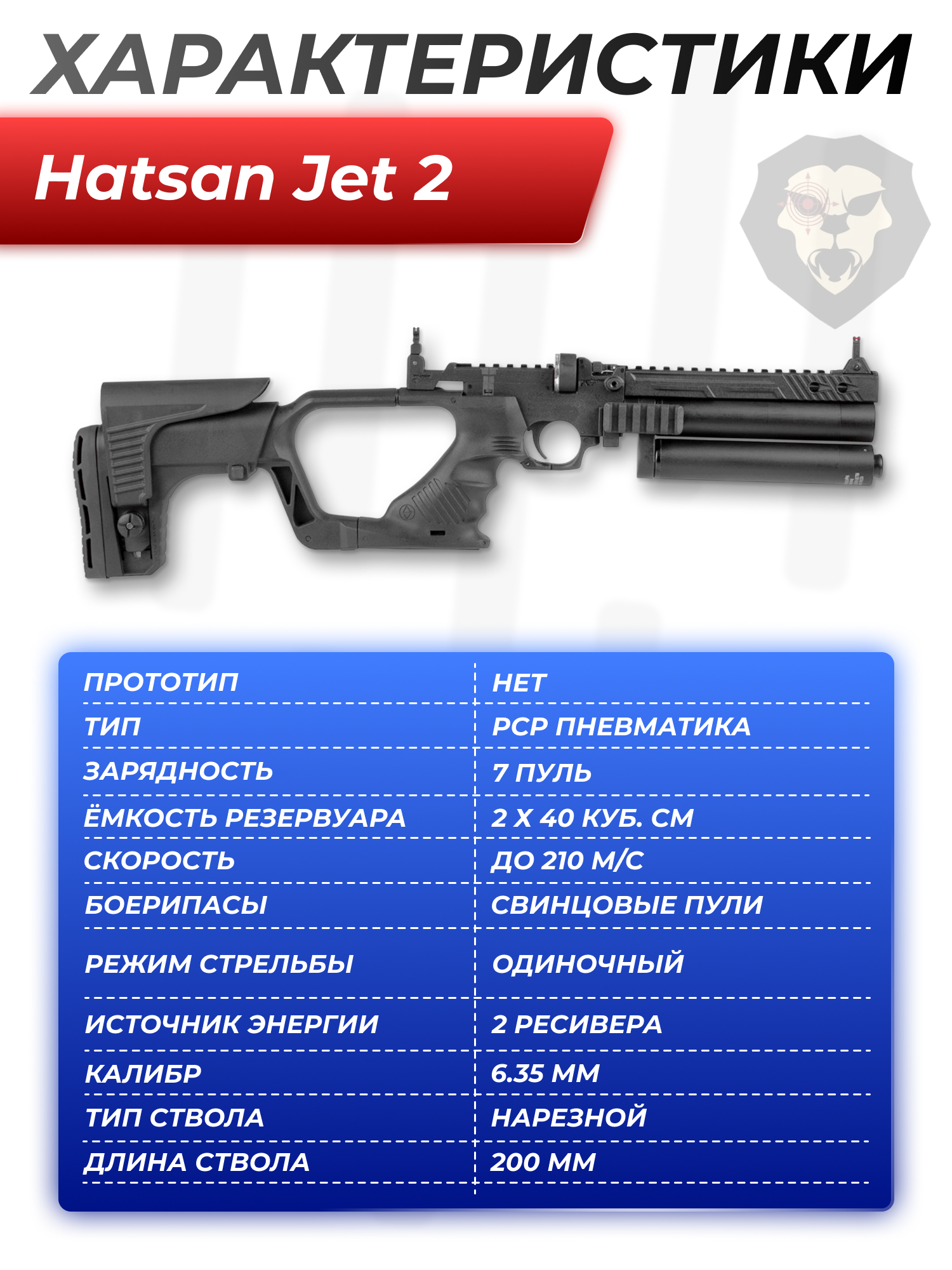 Компания Hatsan - турецкий производитель пневматического оружия, заслужившая большую популярность среди гражданских стрелков в России за счет хорошего качества исполнения продукции при приемлемых ценах. Новая модель Jet 2 предлагает допустимую по закону энергию выстрела, использование крепких материалов и функциональные особенности, которые делают его отличным выбором как для начинающих пользователей, так и профессионалов.
