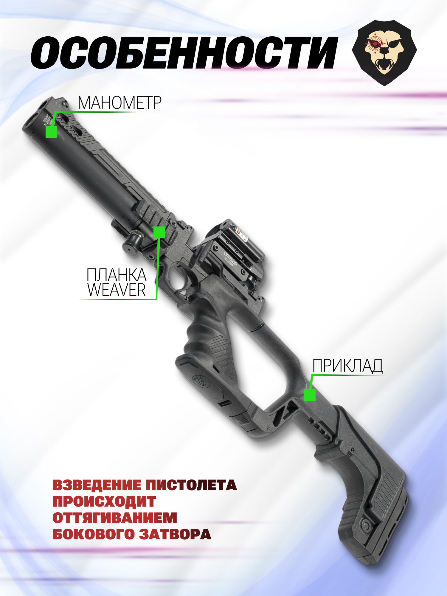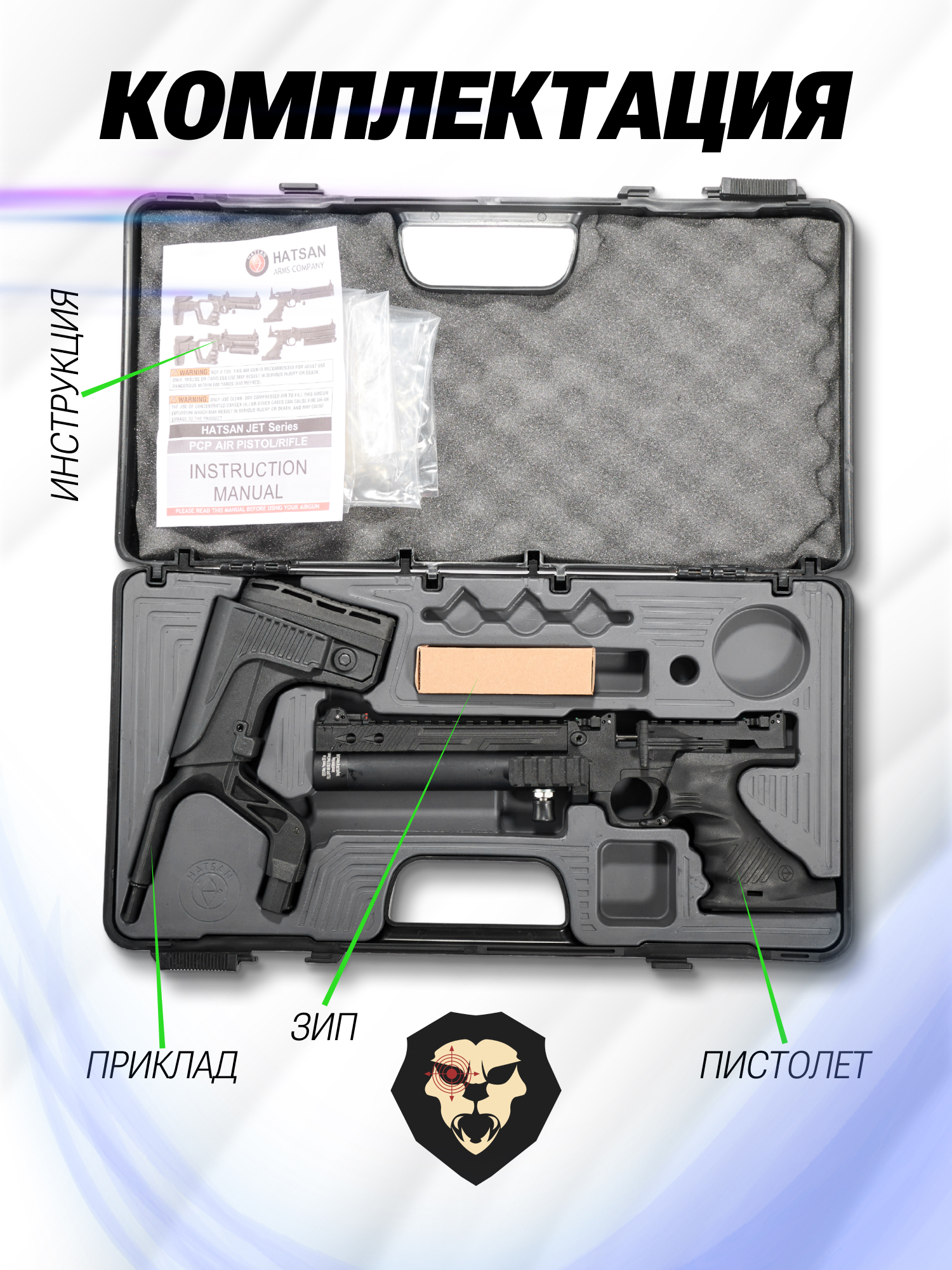 | Комплектация | Пистолет, пулевой лоток, приклад, упаковка, кейс, заправочный штуцер, краткая документация, копия сертификата (по запросу покупателя) |