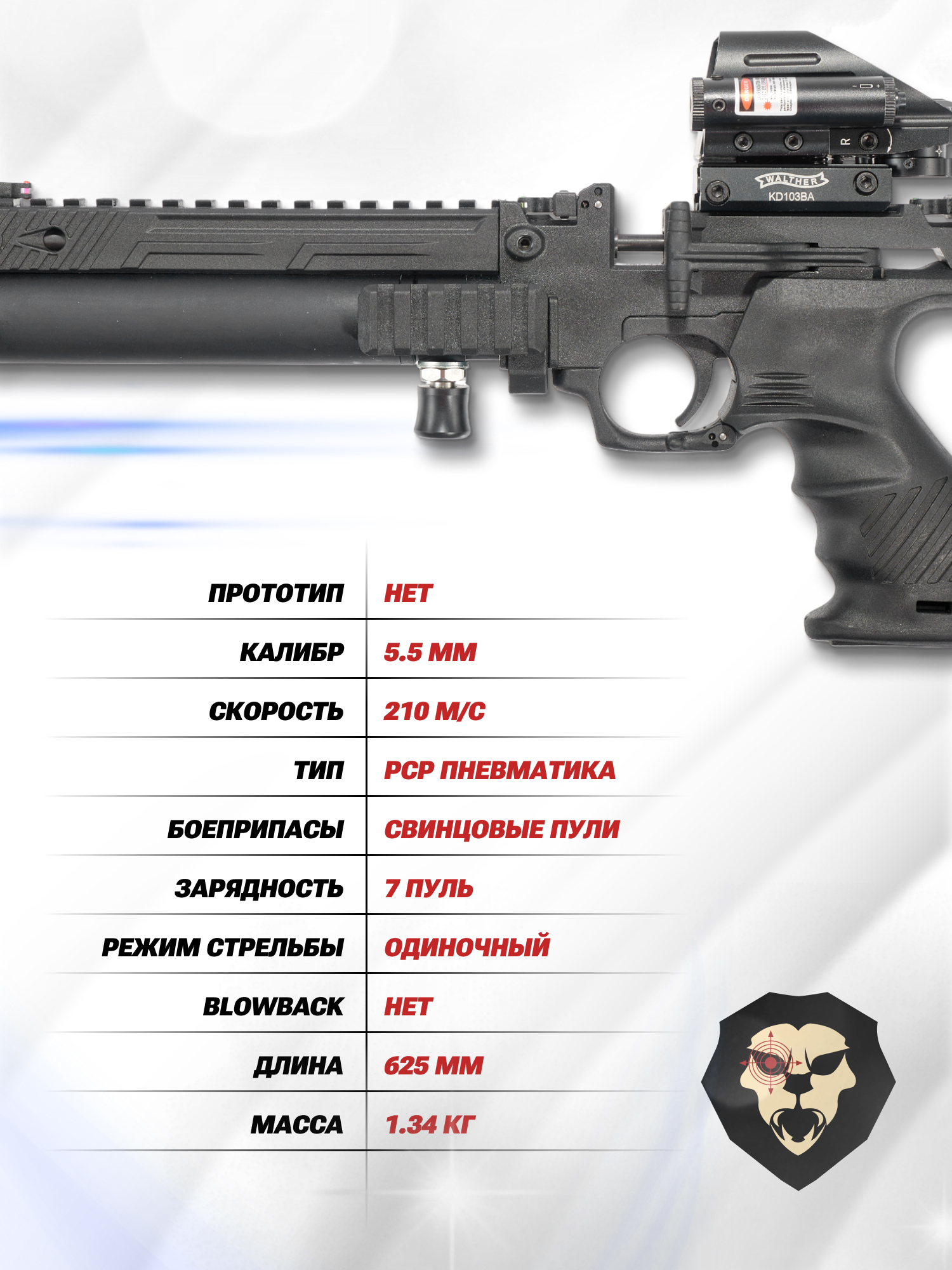 | Тип | PCP пневматика |